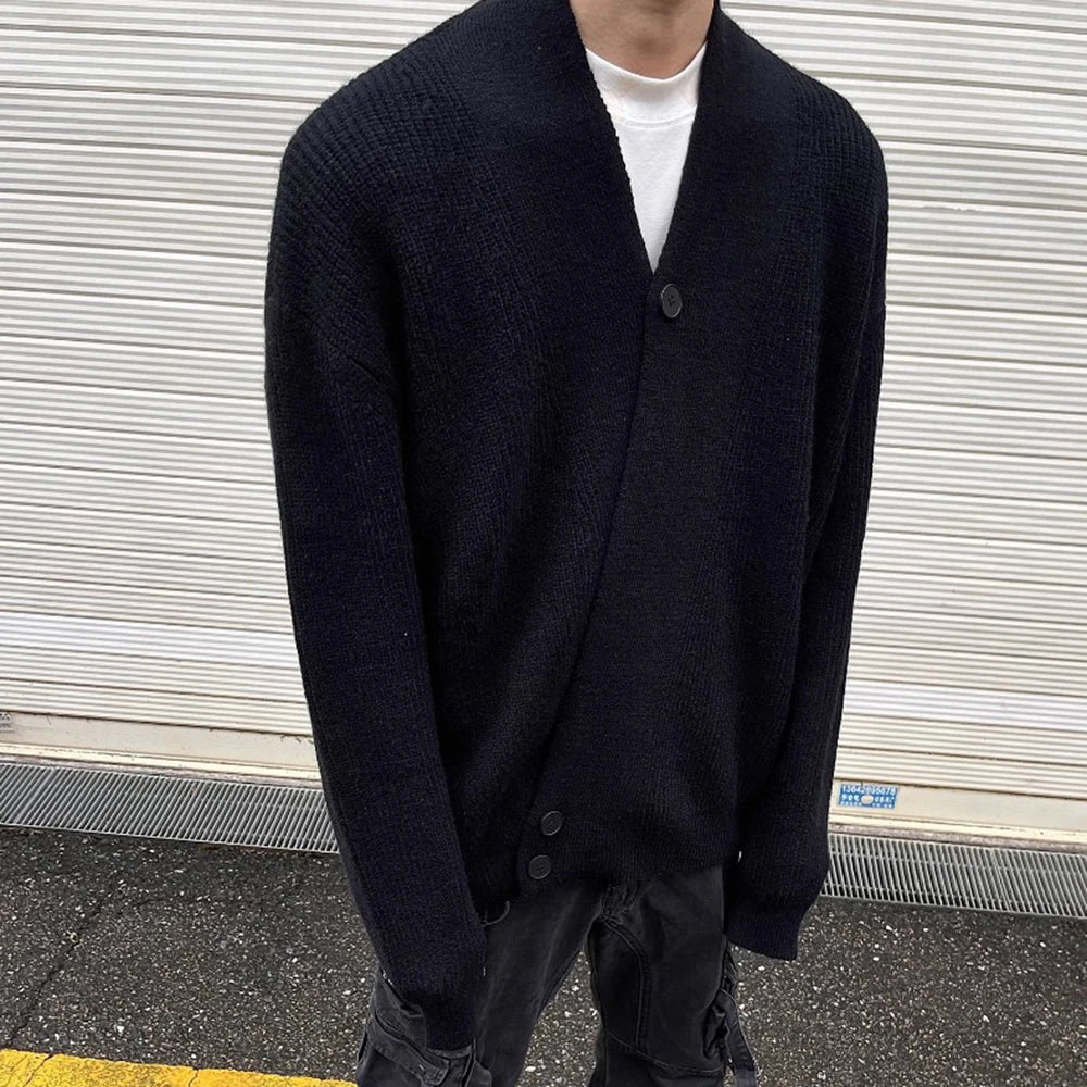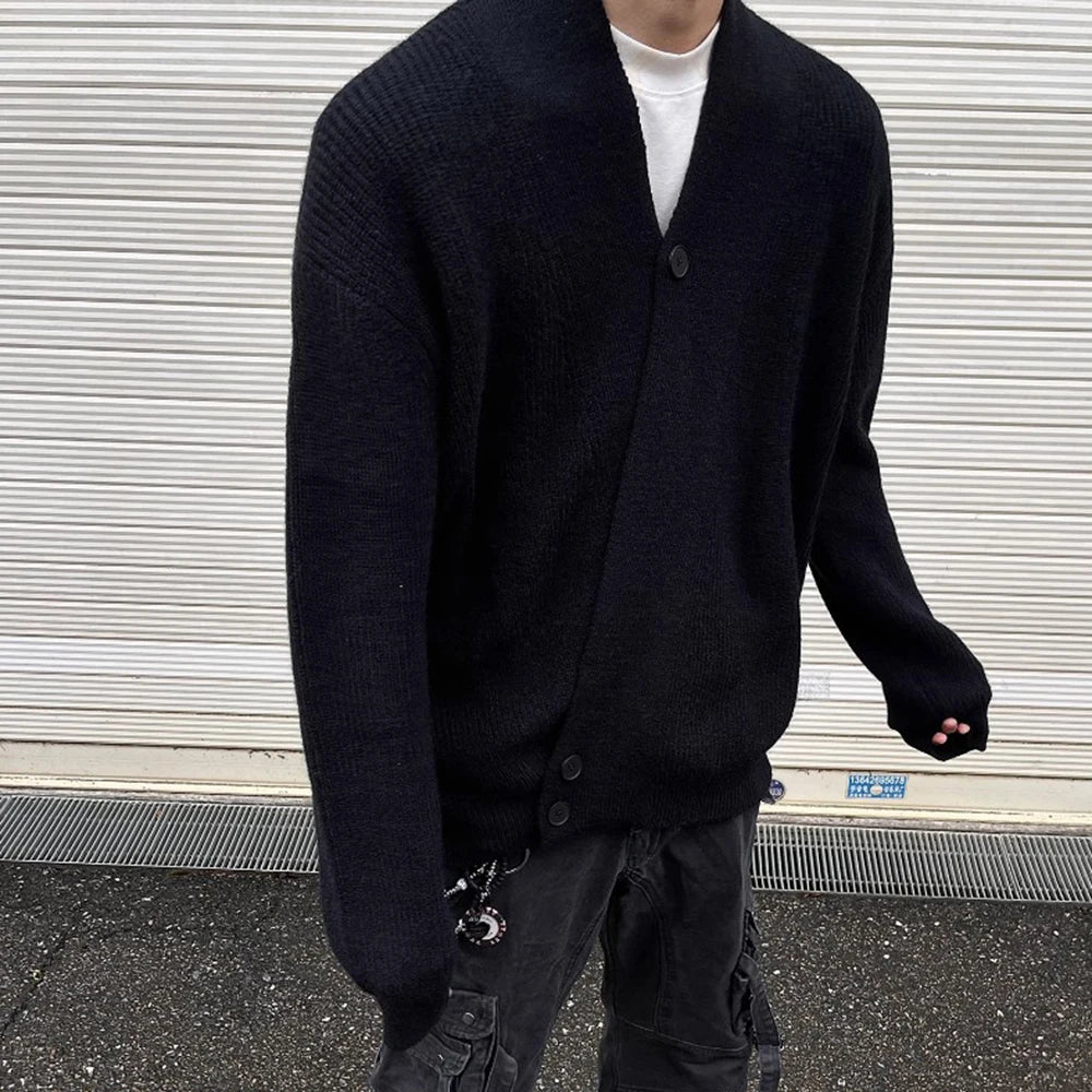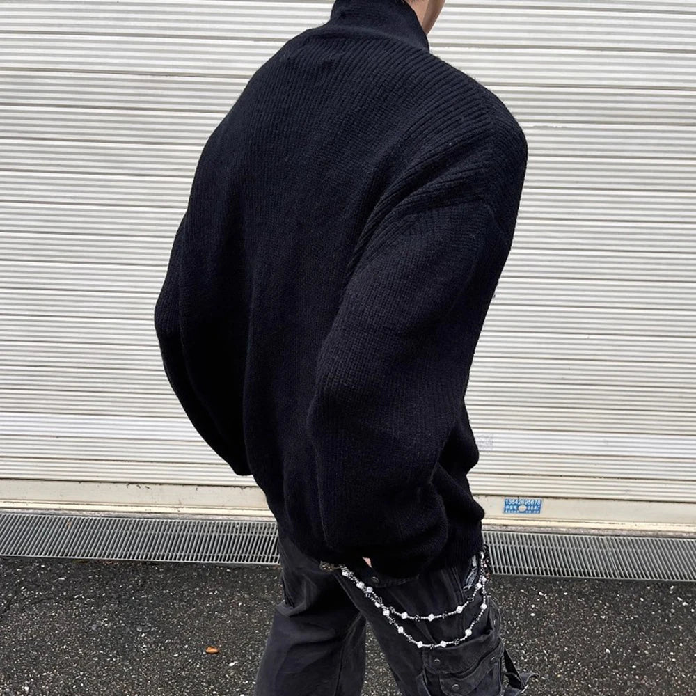 Bonsir Mens Sweater Irregular Knitted Sweater Genderless Dark Style Streetwear Campus Performance Simple Long-Sleeve Top Unisex