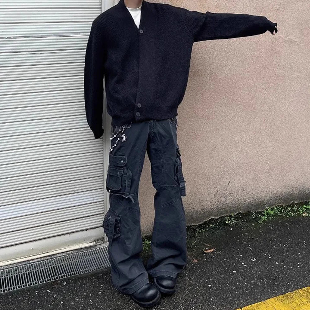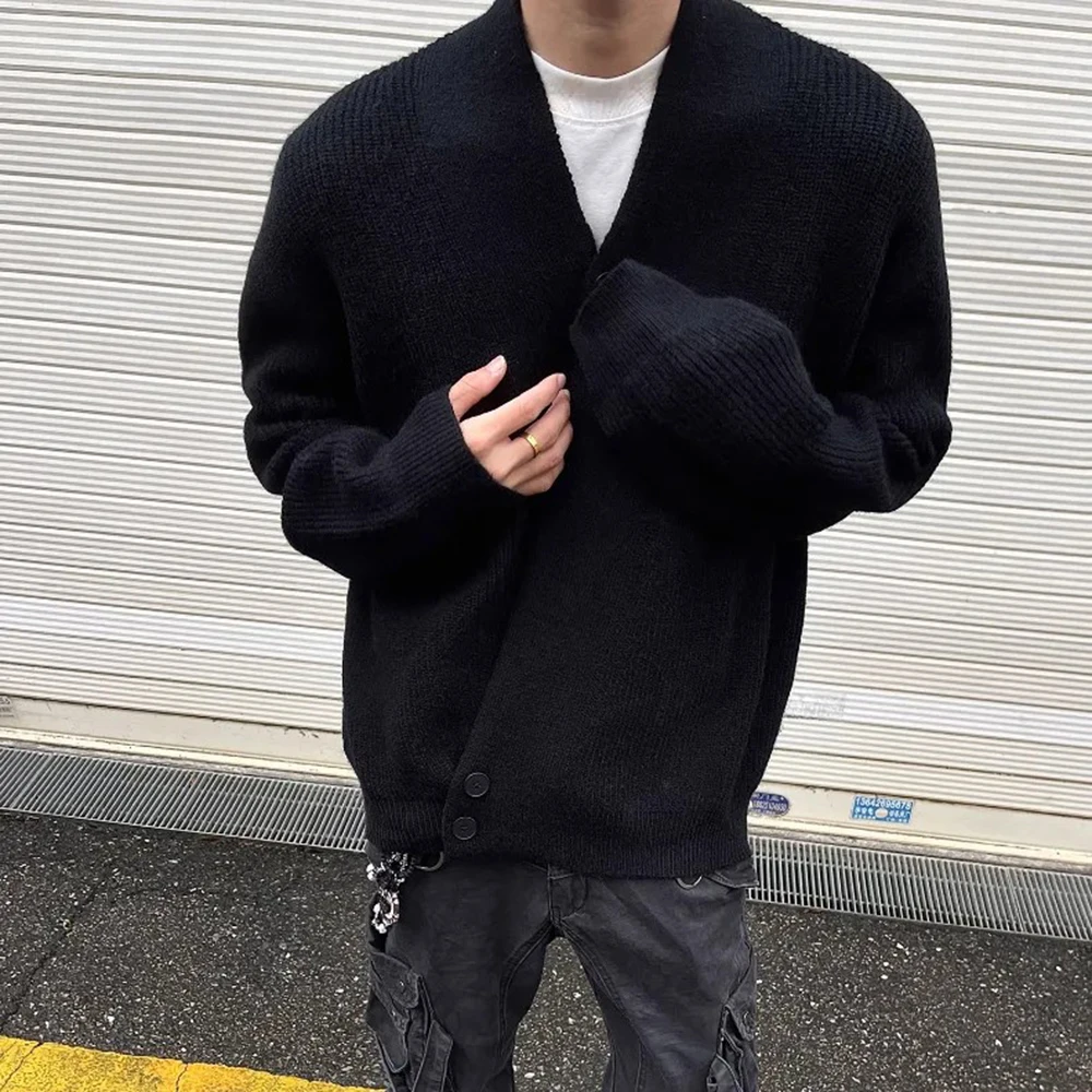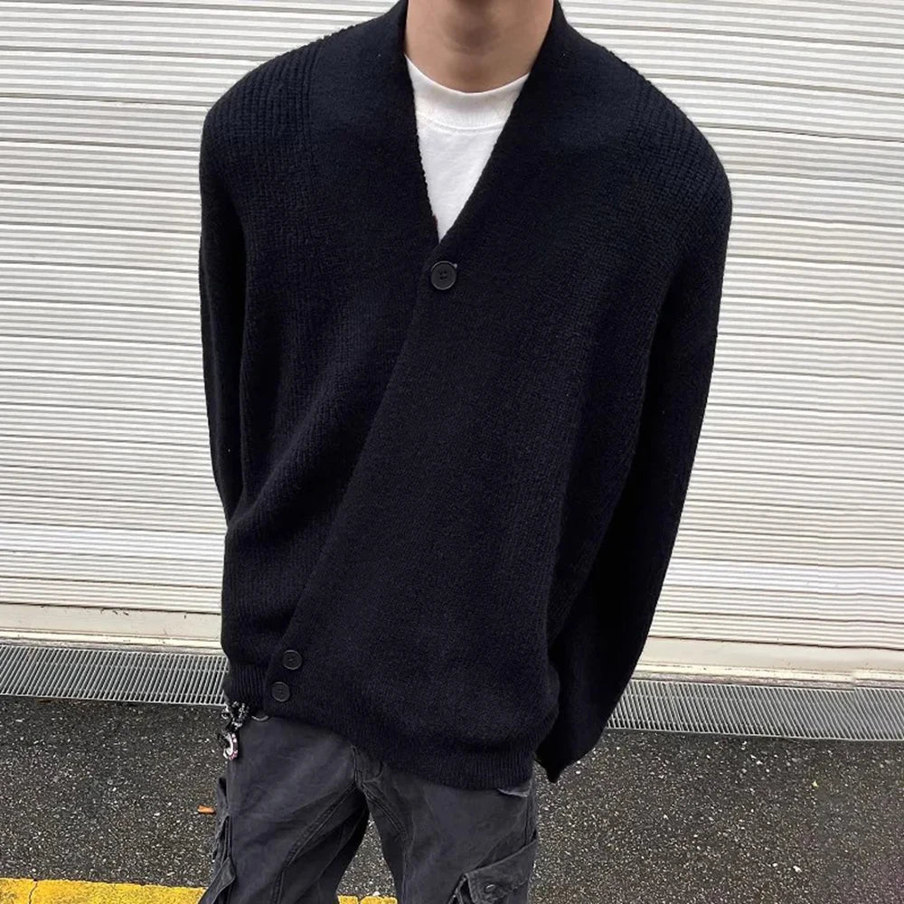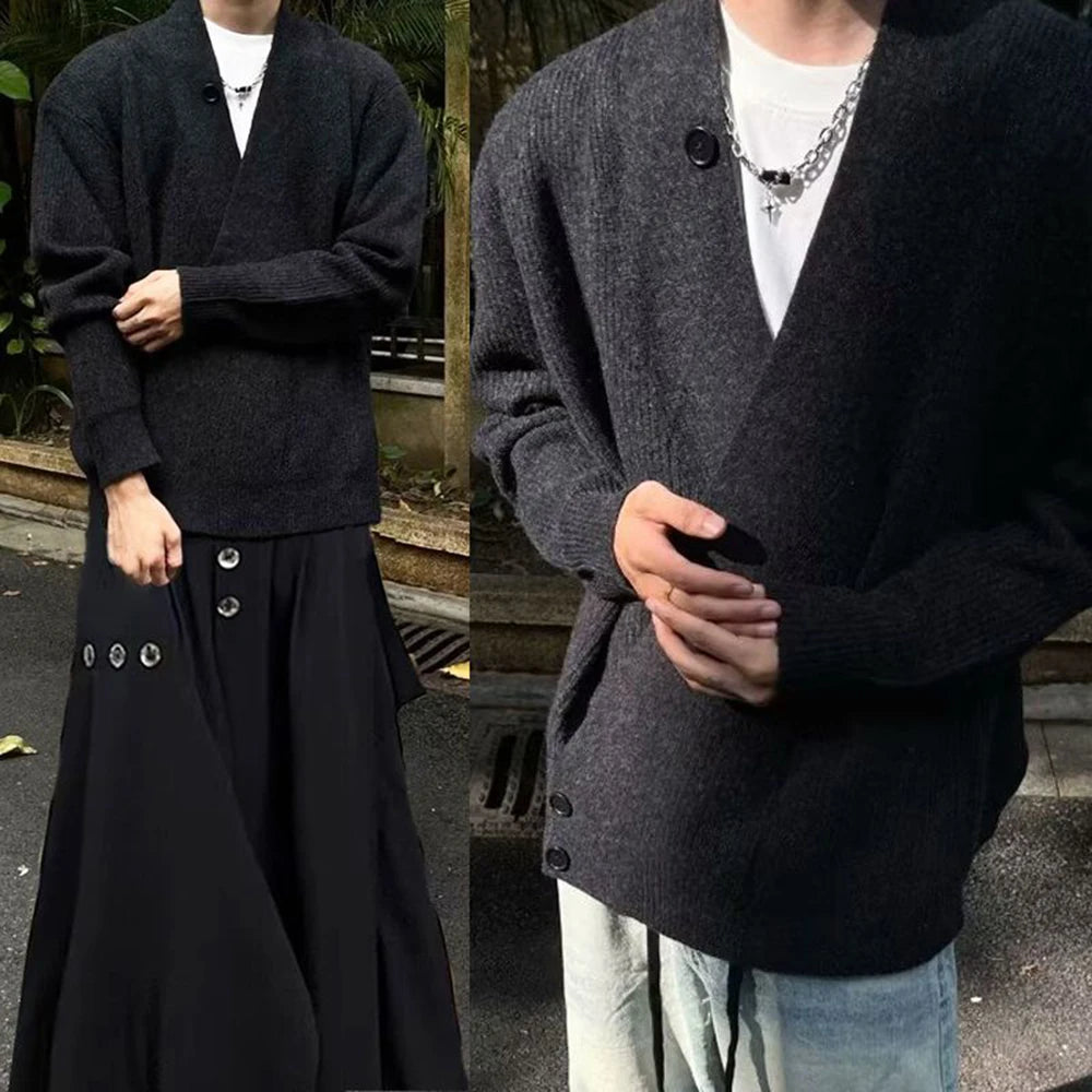Bonsir Mens Sweater Irregular Knitted Sweater Genderless Dark Style Streetwear Campus Performance Simple Long-Sleeve Top Unisex