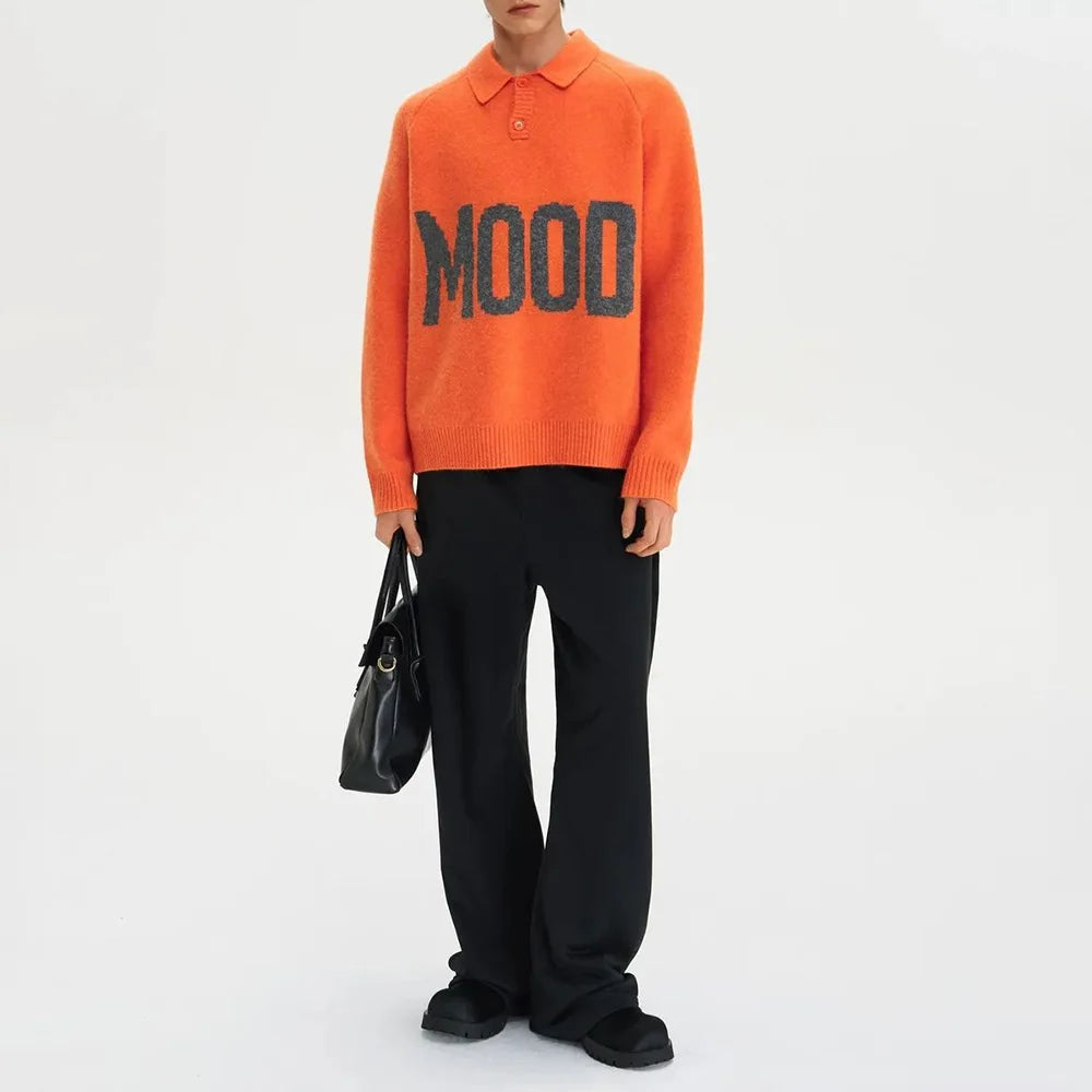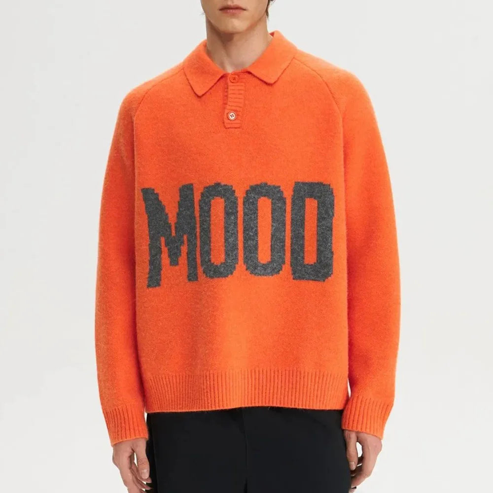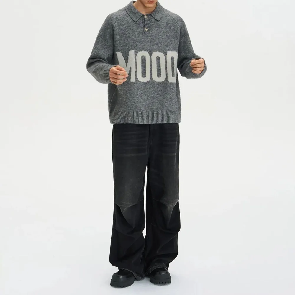 Bonsir Mens Sweater Letter Jacquard Sweater Autumn Streetwear Youth Comfortable Casual Personality All-Match Tops Men'S Clothing 2024