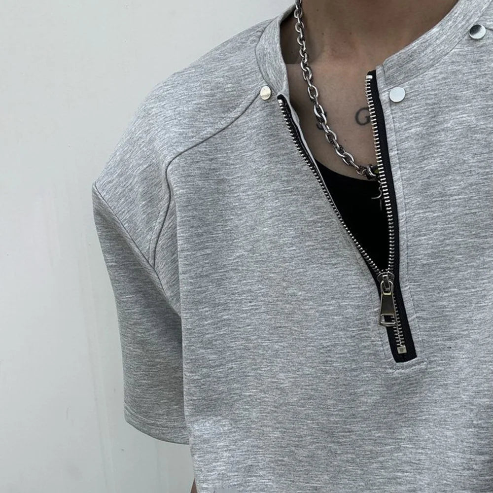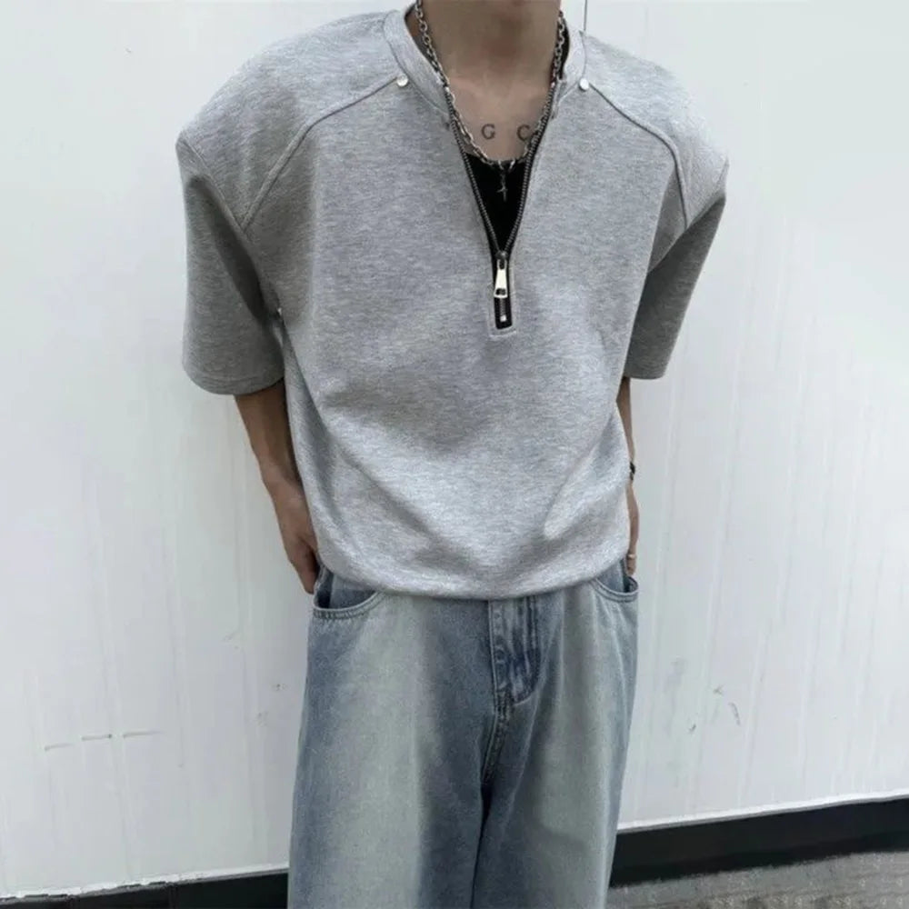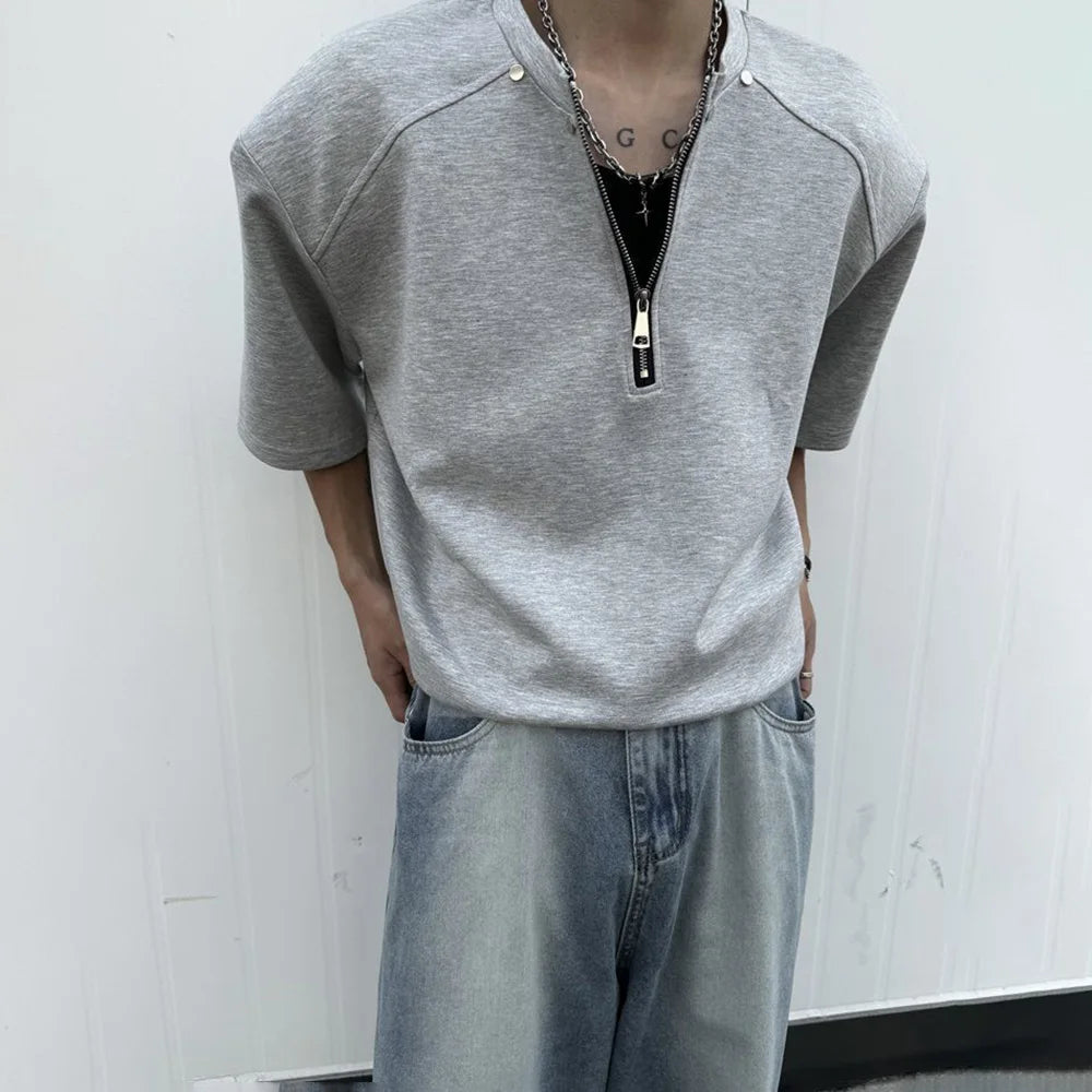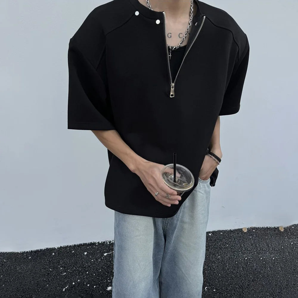 Bonsir Mens T-Shirt Half Zip Casual T-Shirt Fashion American Streetwear Solid Color Simple Leisure Short Sleeve Top Men'S Clothing