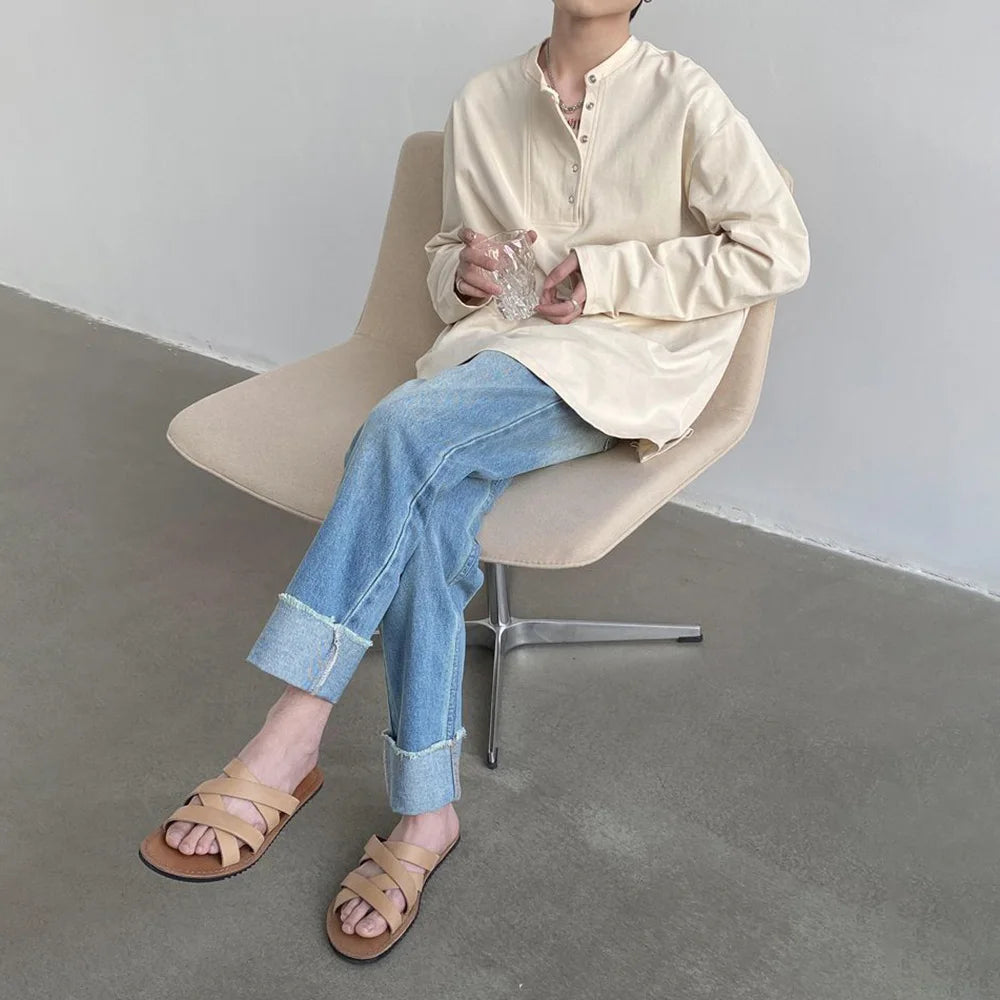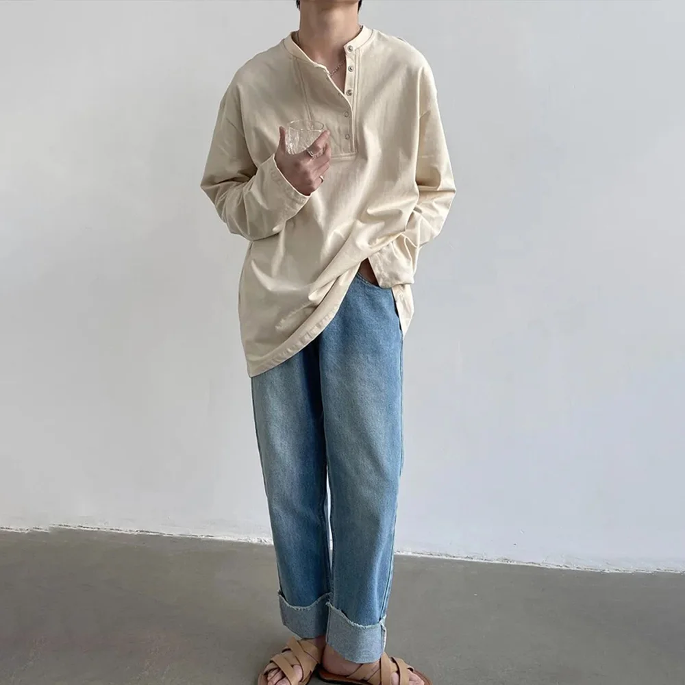 Bonsir Mens T-Shirt Side Placket Casual T-Shirt Autumn Streetwear Personality Niche Versatile Long-Sleeved Top Men'S Clothing 2024