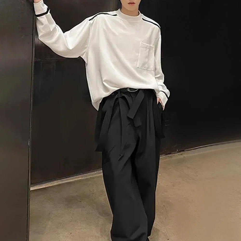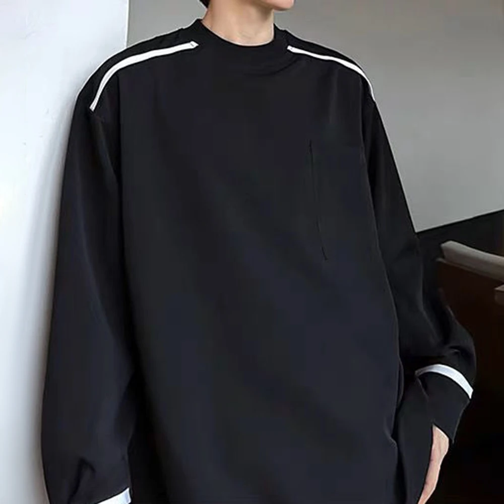 BONSIR - Mens T-Shirts Contrast Striped Casual T-Shirts Spring Streetwear Versatile Long-Sleeved Tops Old Money Men'S Clothing 2025 New