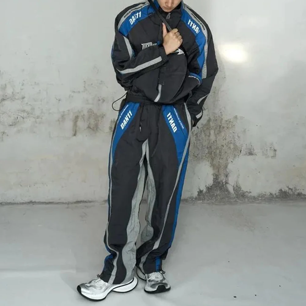 Bonsir Mens Trousers Racer Biker Drawstring Leggings Autumn Fashion Streetwear Versatile Trend Embroidered Pants Men'S Clothing