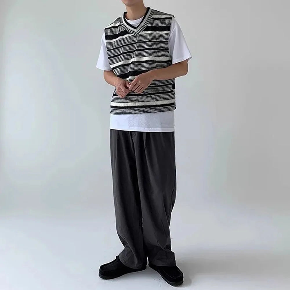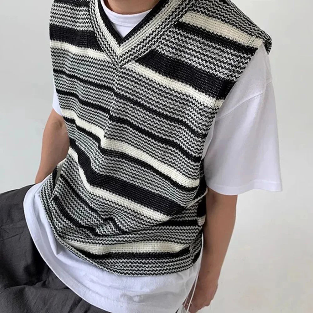 Bonsir Mens Vest Contrast Stripes Casual Knitted Tank Top Summer Streetwear Versatile Beach British Elegant Vest Men'S Clothing