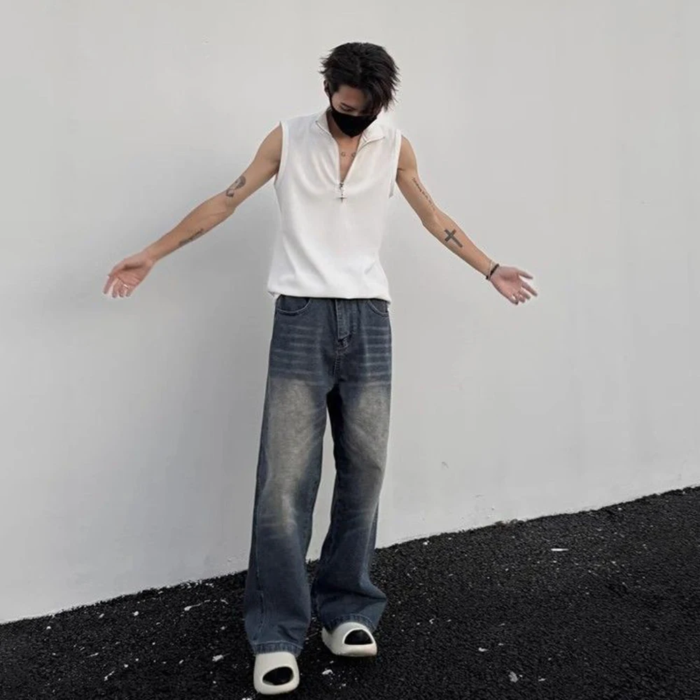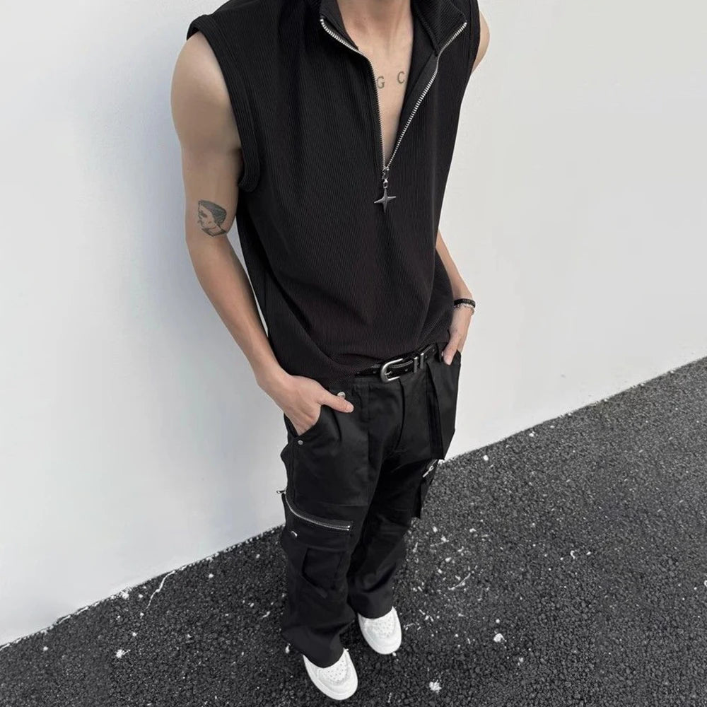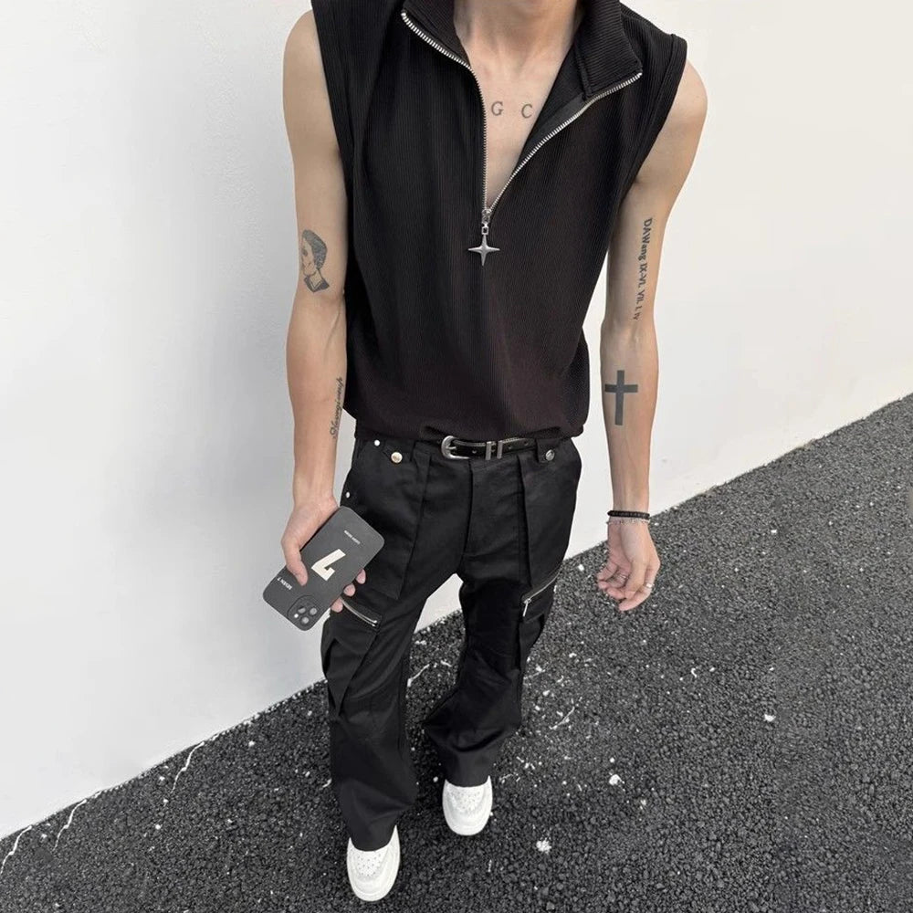 Bonsir Mens Vest Five-Pointed Star Shoulder Pad Vest Spring/Summer Streetwear Fashion Sleeveless T-Shirt Old Money Men'S Clothing
