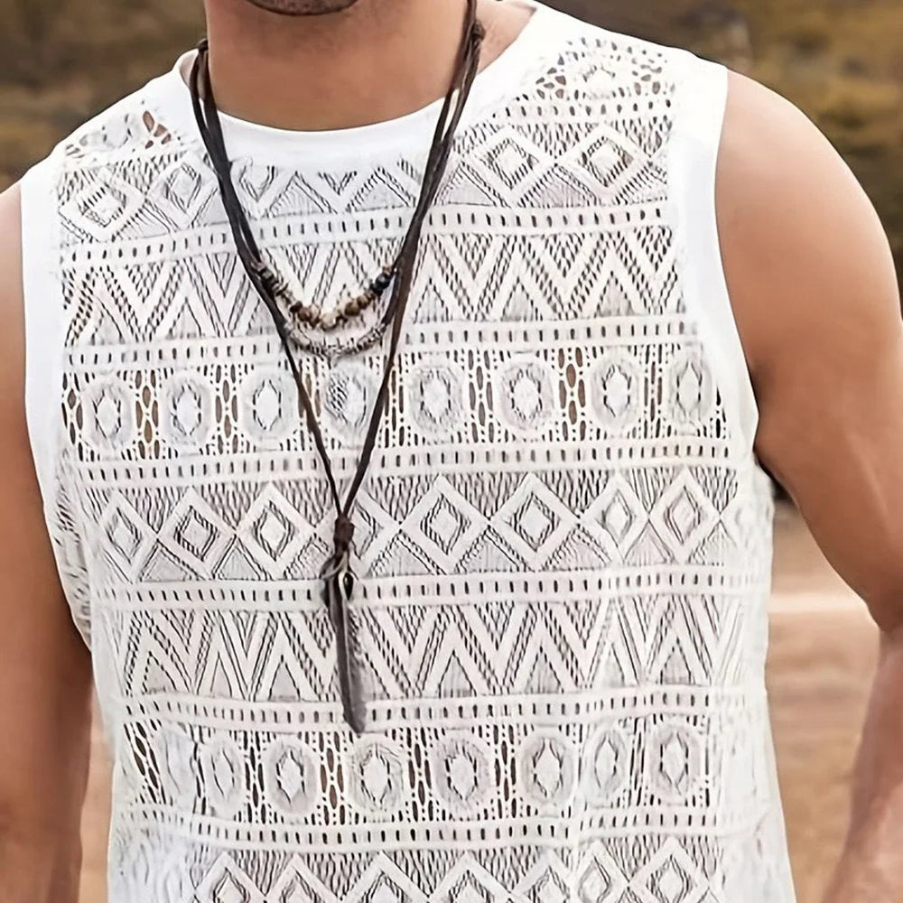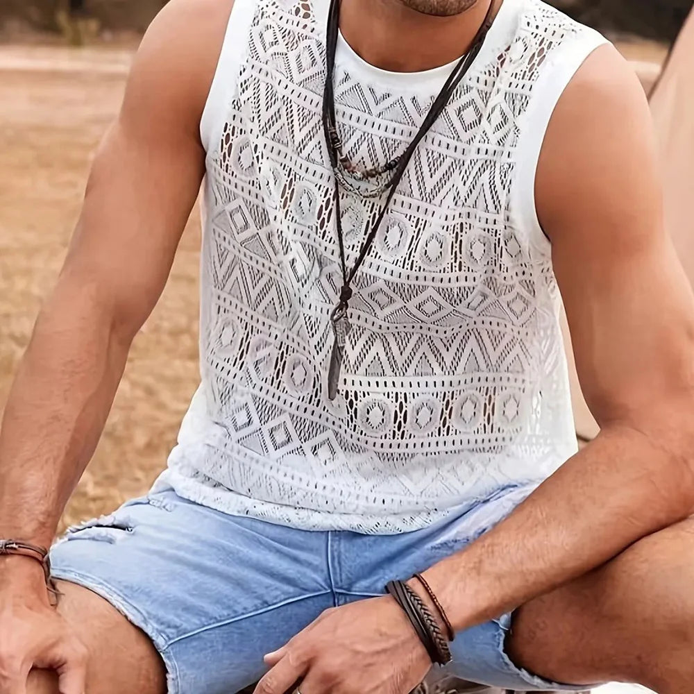 Bonsir Mens Vest Geometric Hollow Perspective Tank Top Summer Beach Streetwear Casual Jogging Gym Personality Tops Men'S Clothing