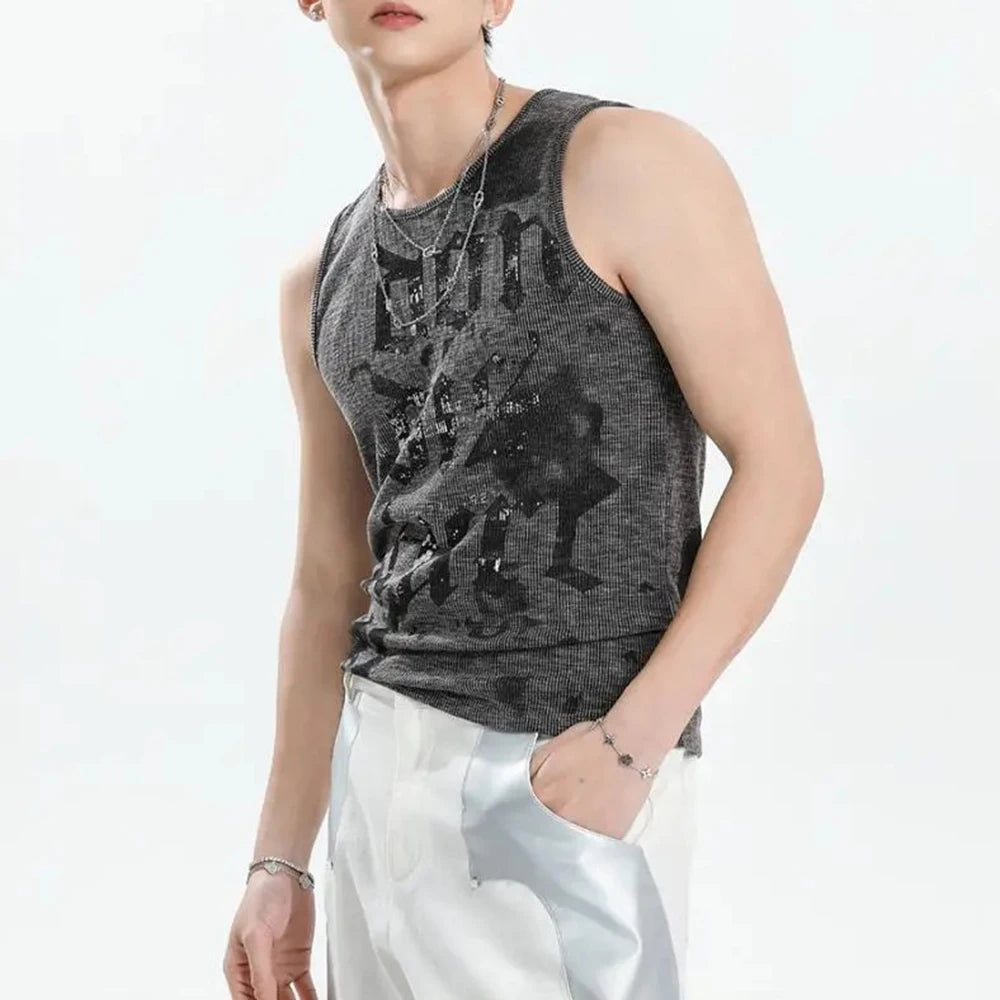 Bonsir Mens Vest Letter Print Stretch Slim Casual T-Shirt Spring/Summer Streetwear Fashion Tank Top Old Money Men'S Clothing New