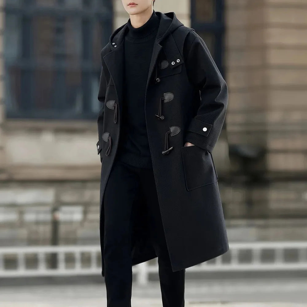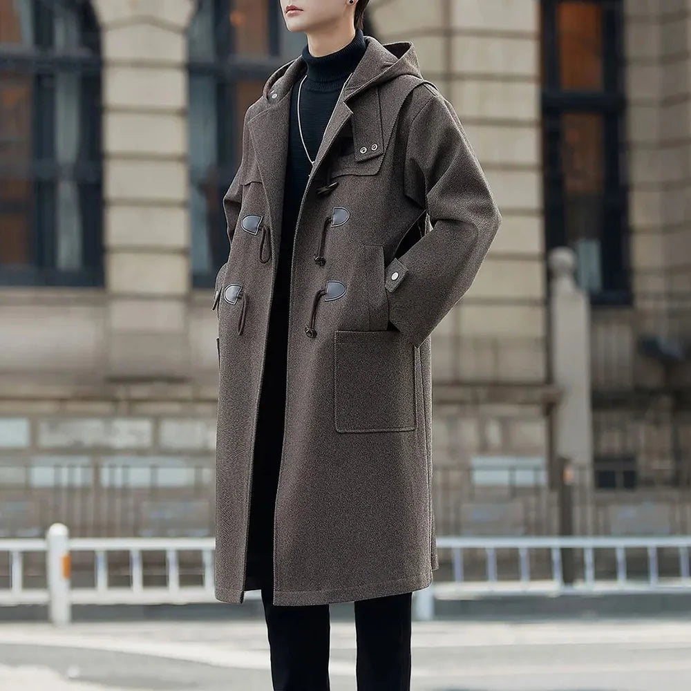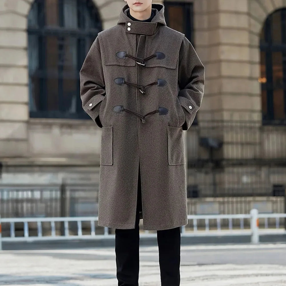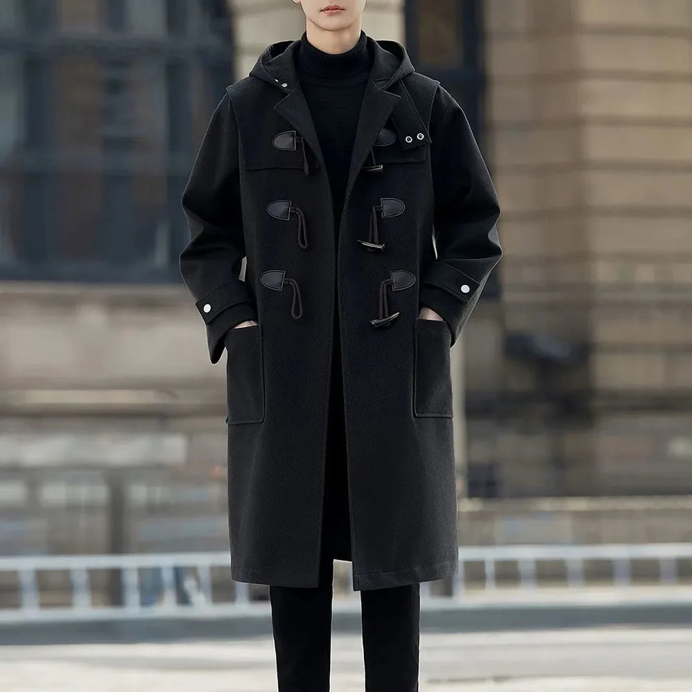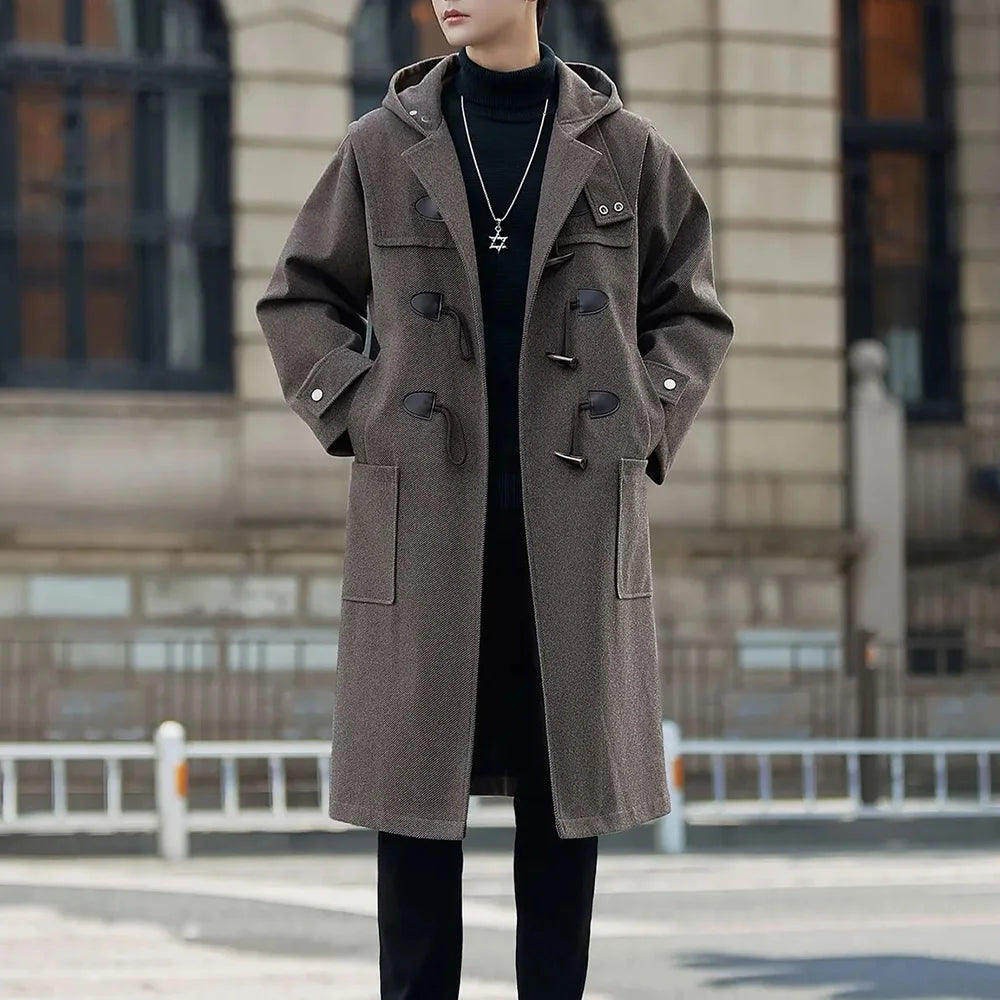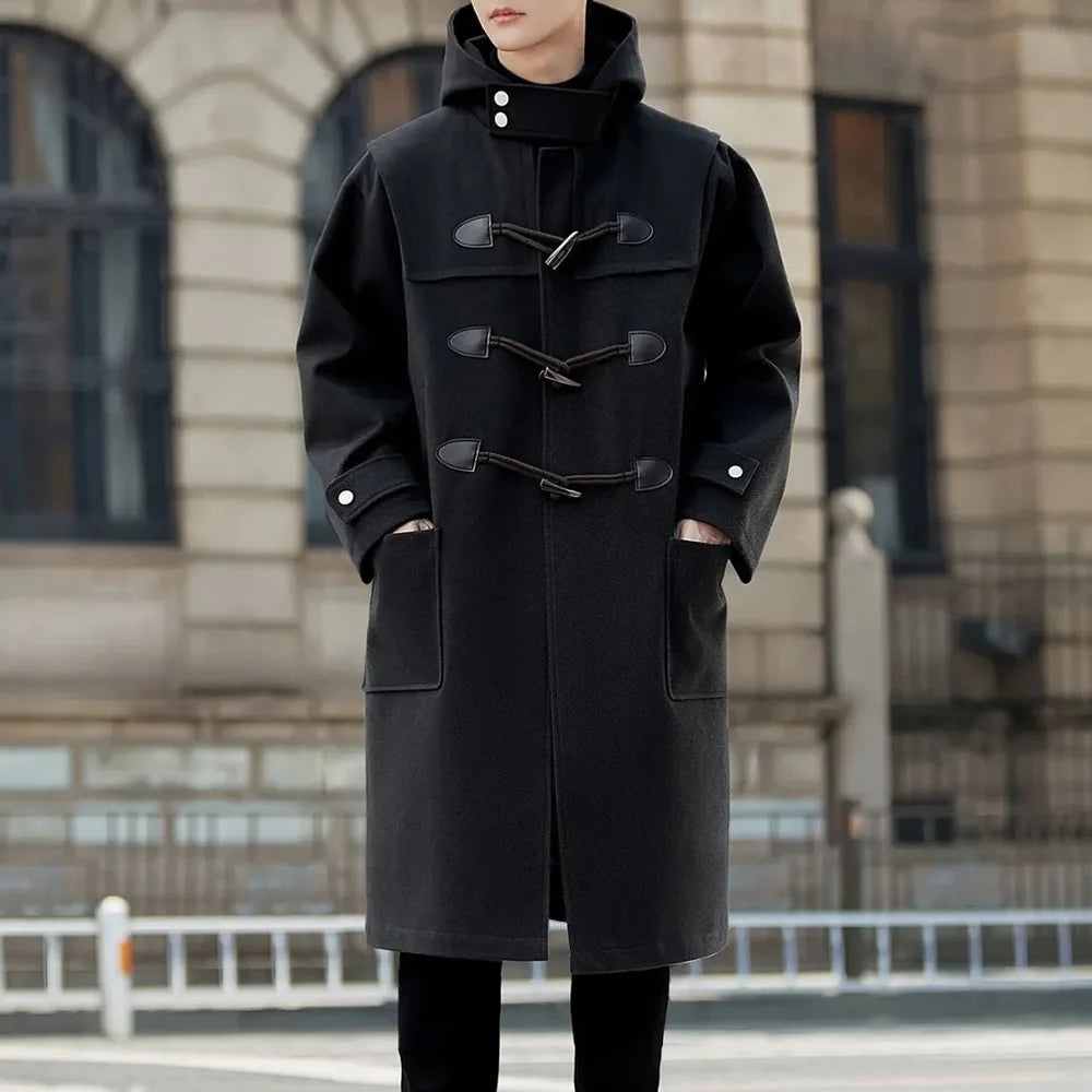 Bonsir Mens Windbreaker Horn Button Casual Cape Coat Autumn Streetwear Fashion All-Match Commuting Long Hooded Jacket Men'S Clothing