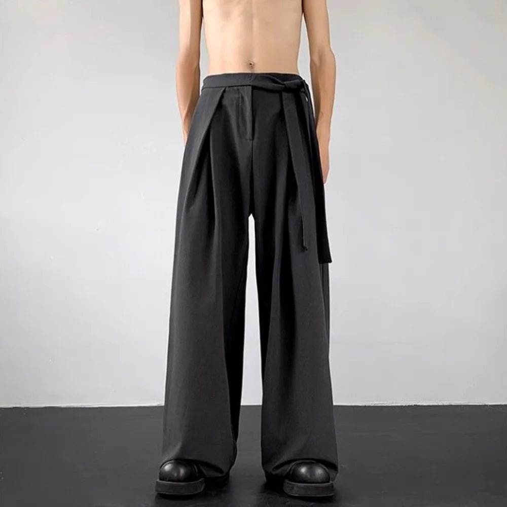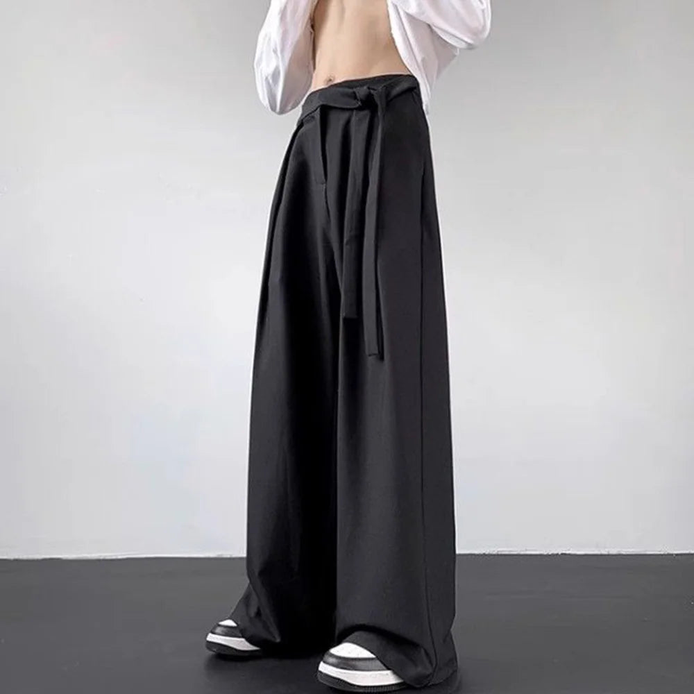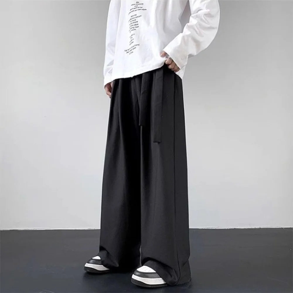 Bonsir Mens Y2k Japanese Belt Casual Trousers Streetwear Daily Niche Personality Versatile Comfortable Straight Pants Men 2024 New