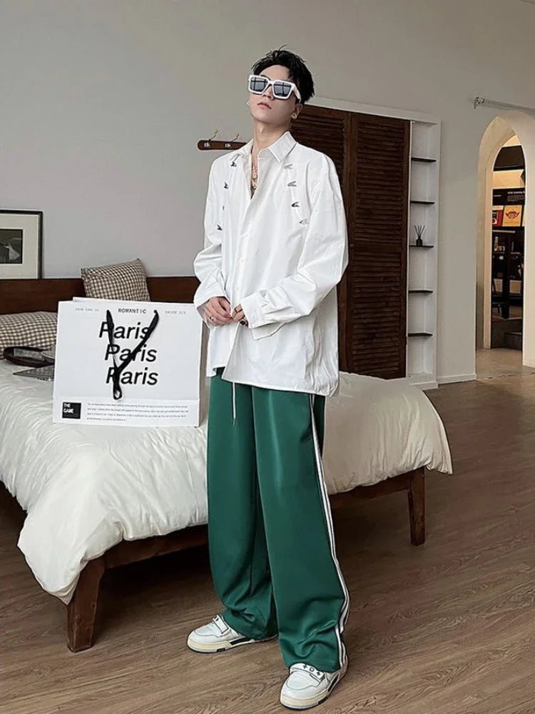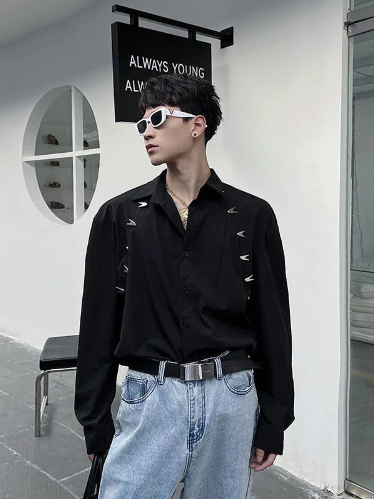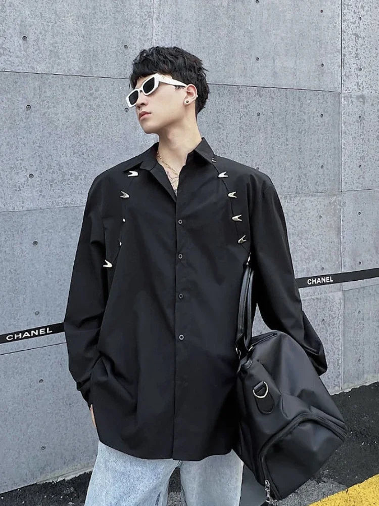 Bonsir Metal Decorated Shirt Men Korean Fashion Spring and Fall New Loose Button Cardigan Long-sleeved Shirts Streetwear Men Clothing