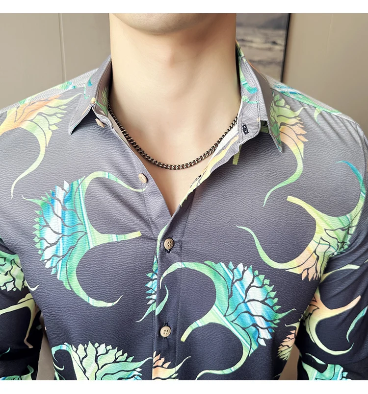 BONSIR  -  ​​Neon Floral Slim-Fit Men's Nightclub Shirt | Bold Tropical Print Streetwear Top Reactive Youth Fashion Essentials​ M-4XL