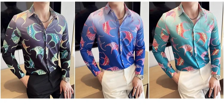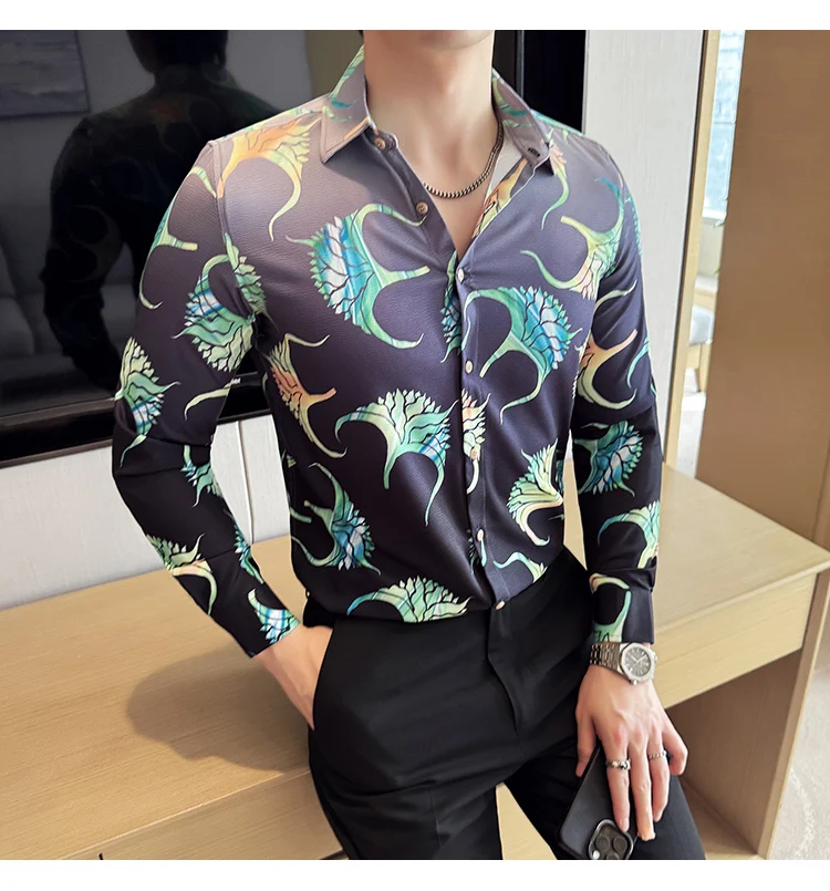BONSIR - Neon Floral Slim-Fit Men's Nightclub Shirt
