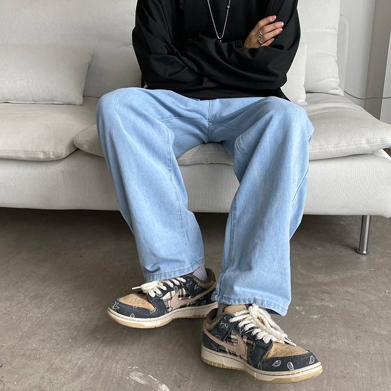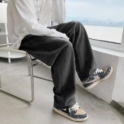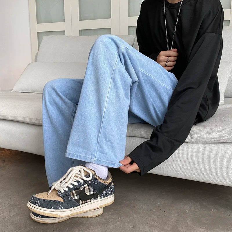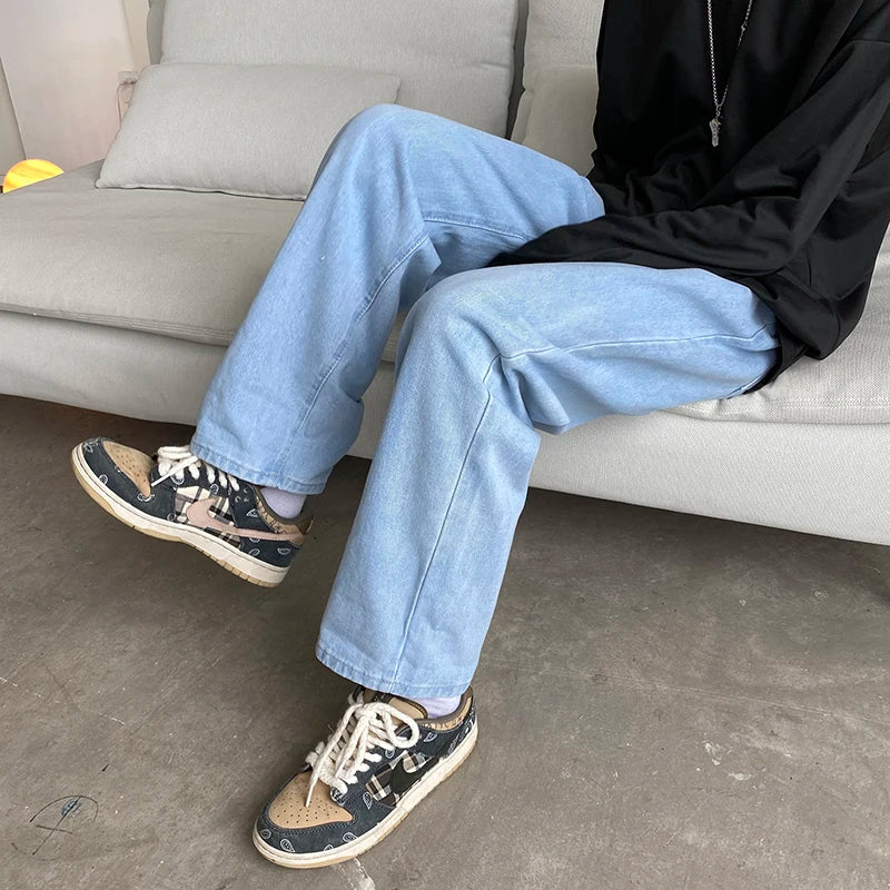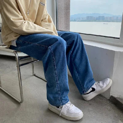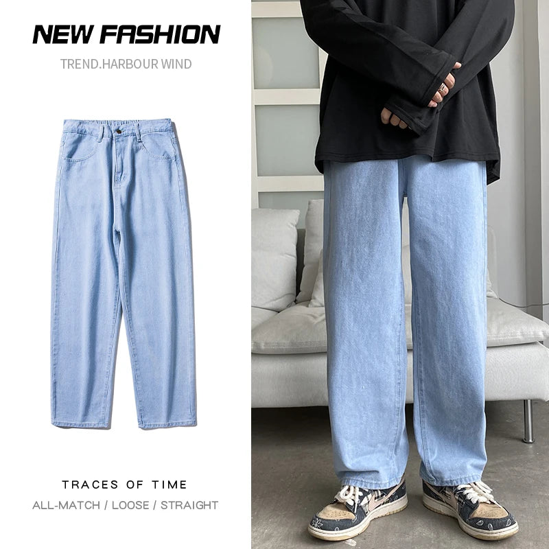 Bonsir New Men's Classic Loose Casual Jeans Student High Street Straight Stretch Blue Light Blue Black Jeans Men's Clothing