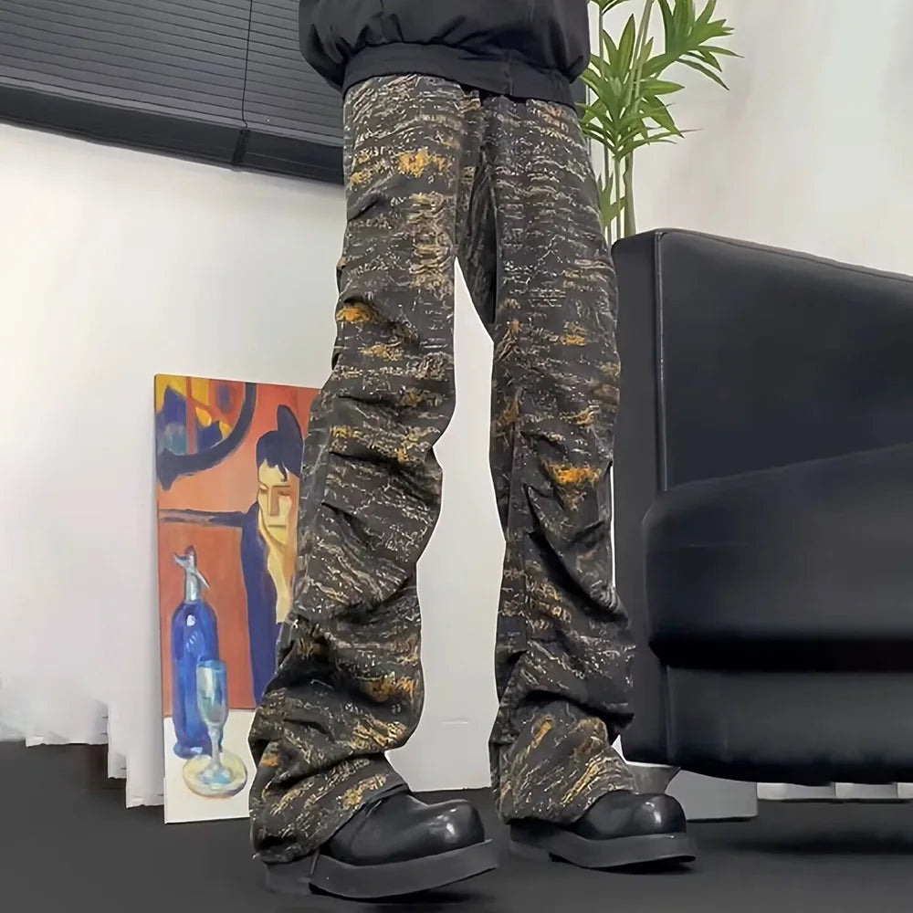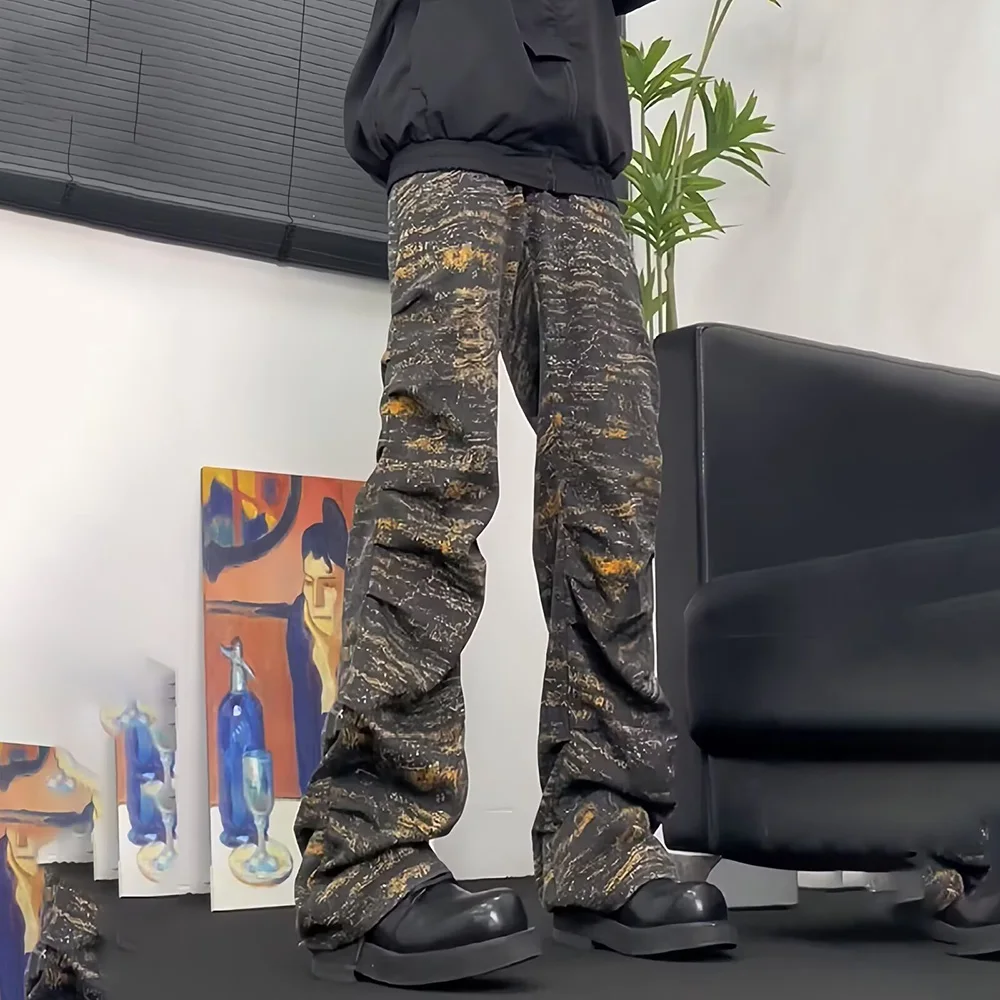 BONSIR  -  New Men's Vintage Camouflage Jeans Overalls Y2k American Fashion Trend High Street Hip-Hop Casual Loose Straight Men's Bottoms