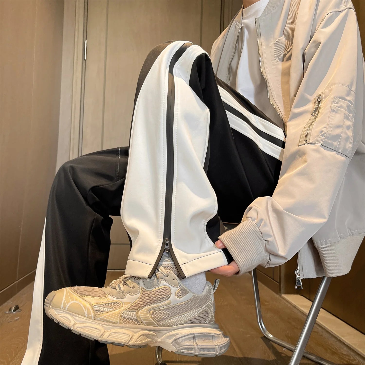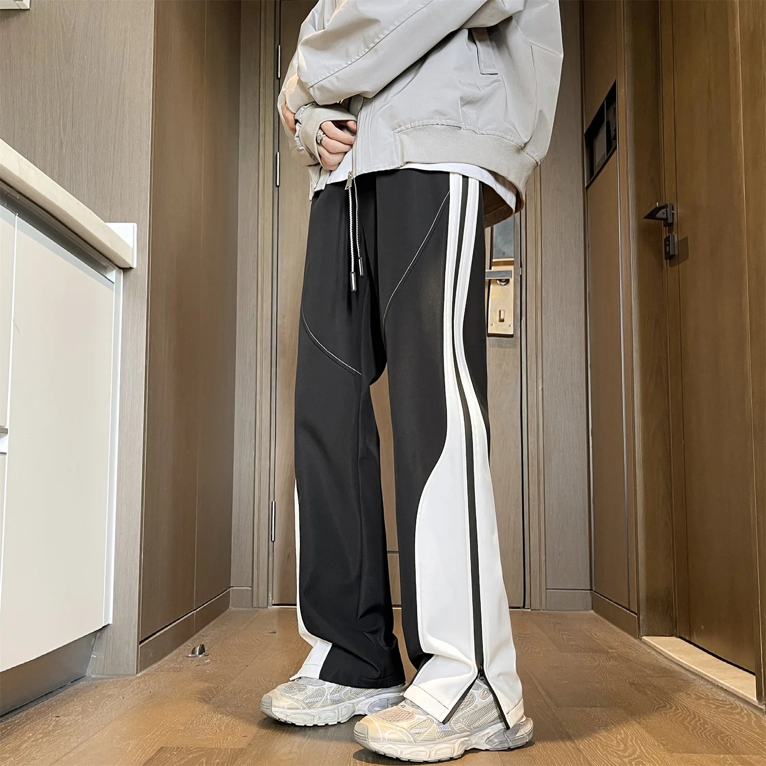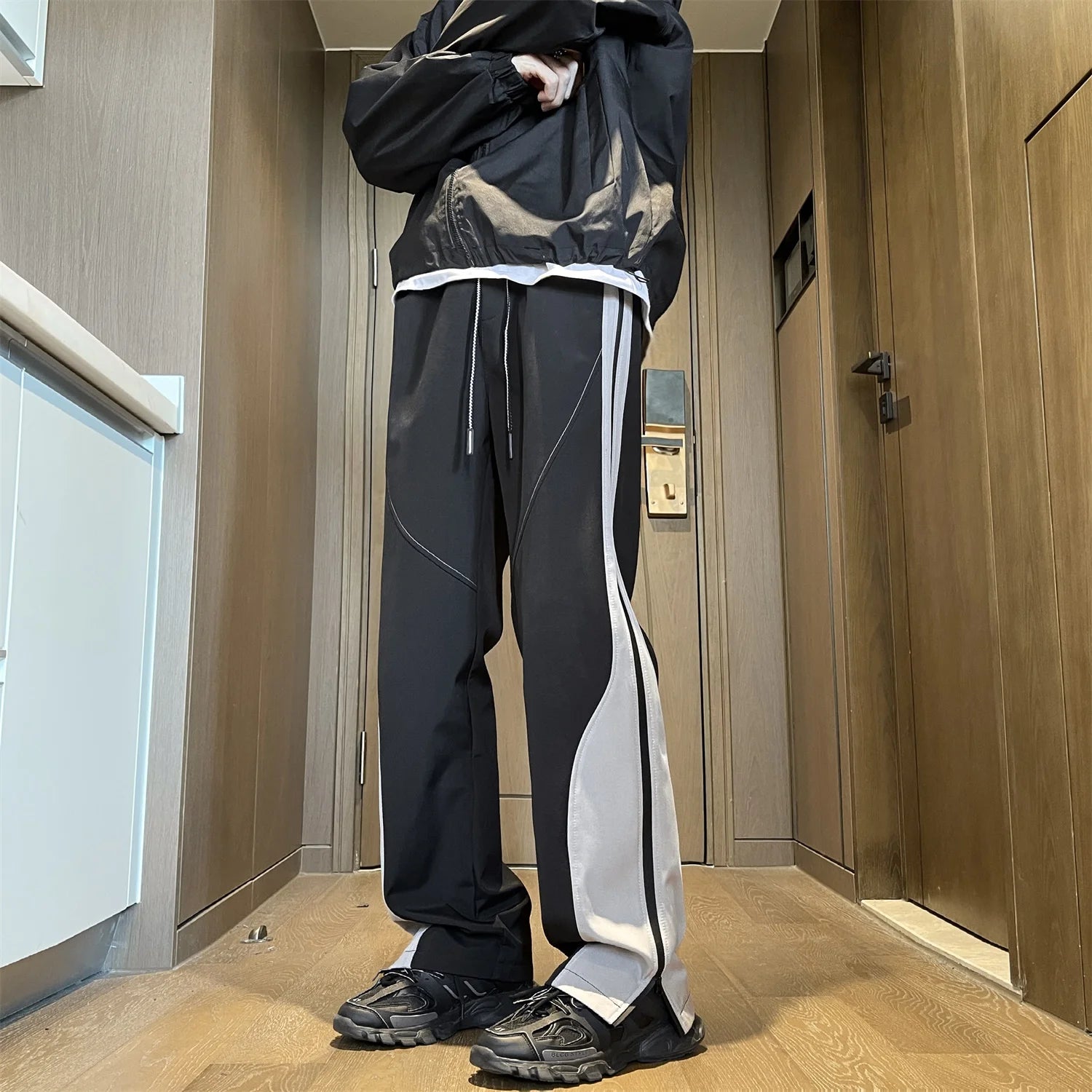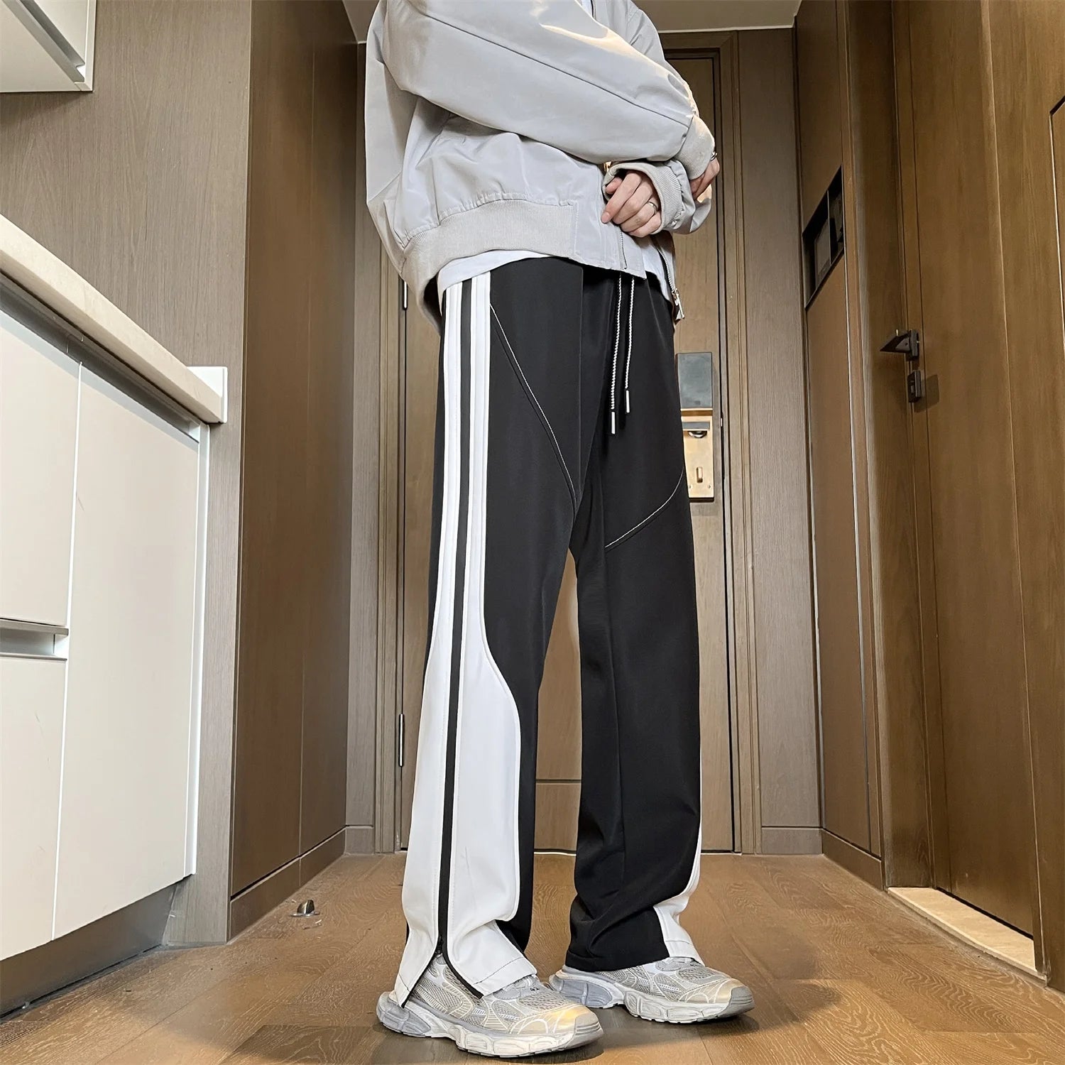 Bonsir New Men's Wide Slim Fit Casual Pants Mens Patchwork Sports Elastic Trousers Harajuku Streetwear Sweatpants