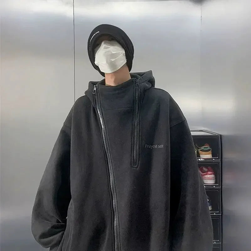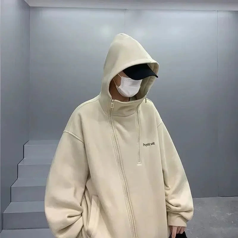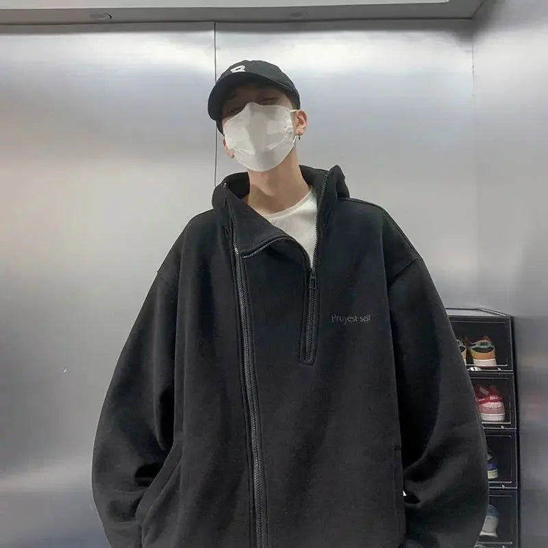 Bonsir Oversize heavy cardigan sweatshirt men spring and autumn high end trendy brand handsome street American retro hooded jacket Y2K