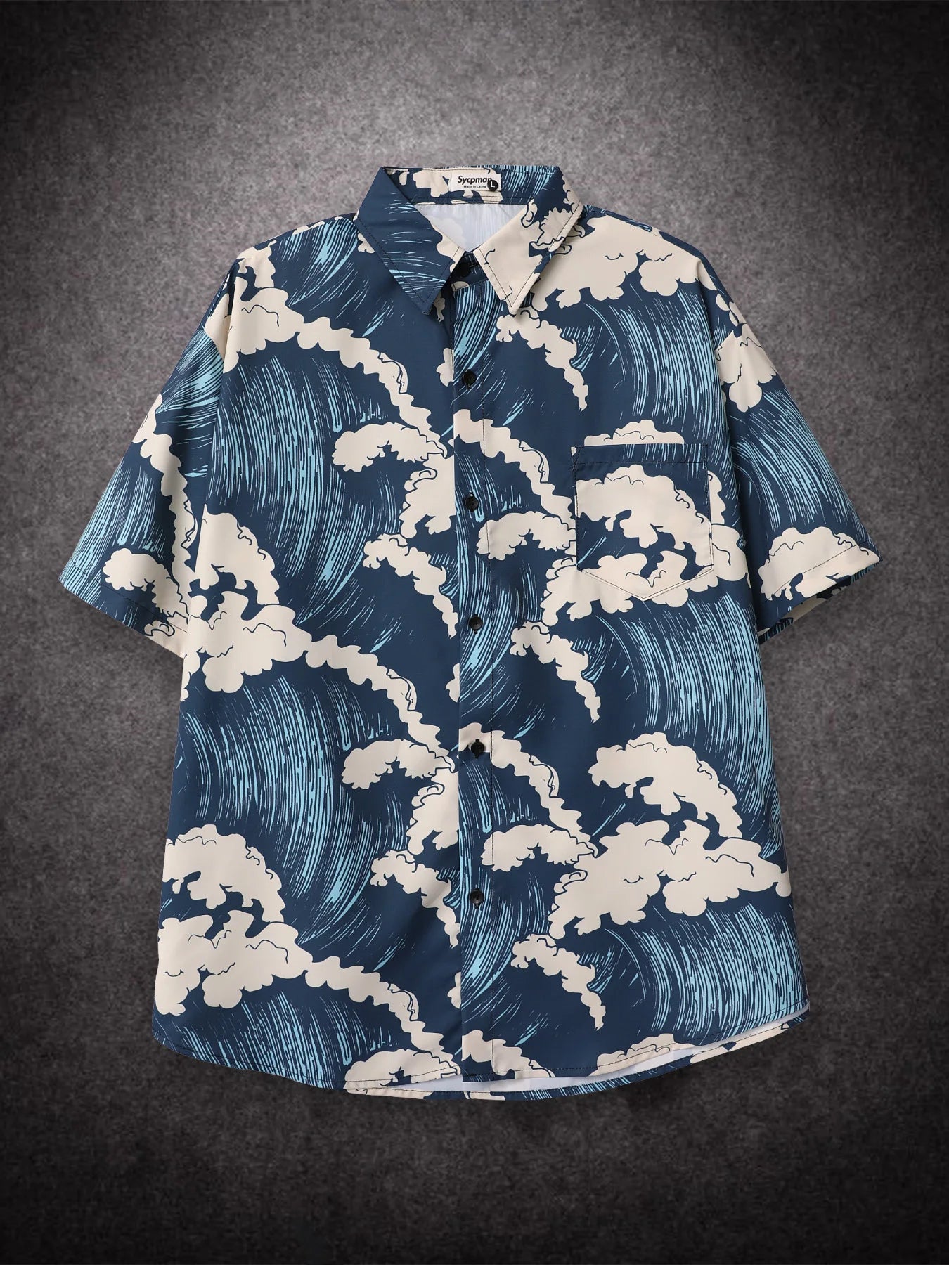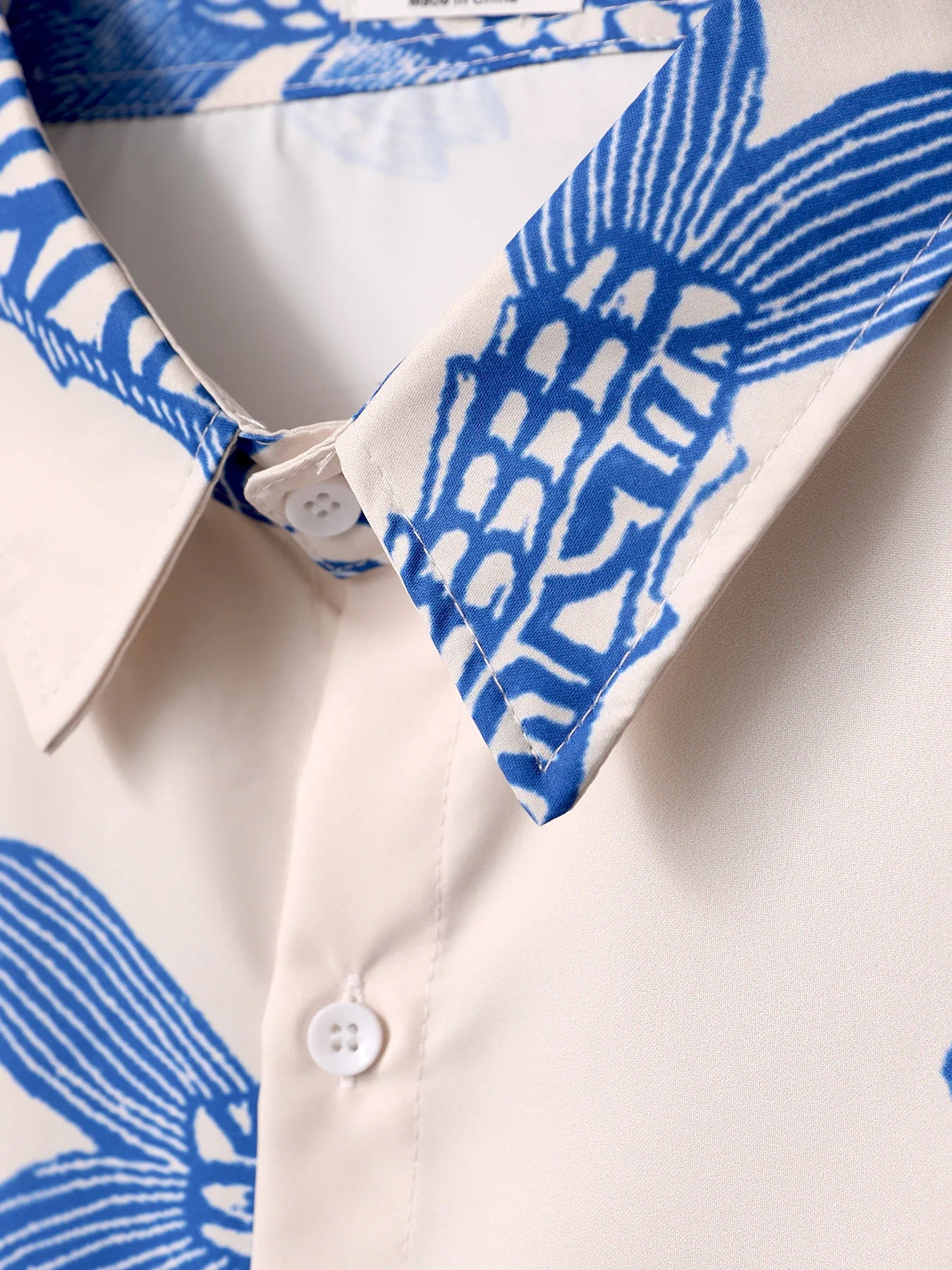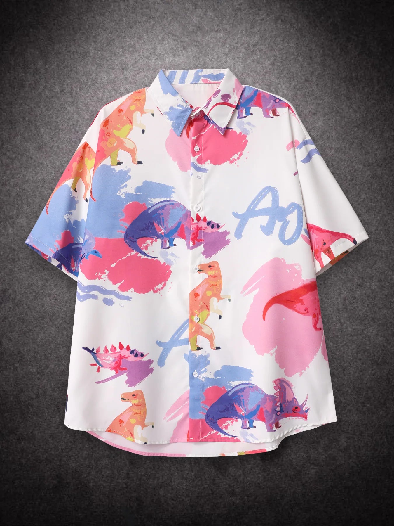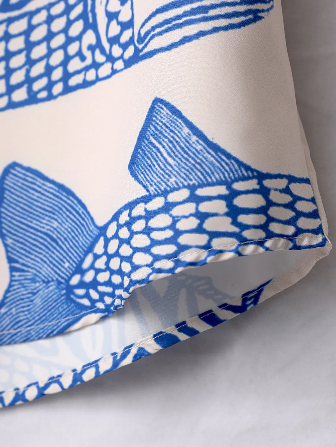 Bonsir Oversized Loose Men Shirt American Style Summer Fried Street Fashion Small Fish Print New Personalized Mens Casual Shirts