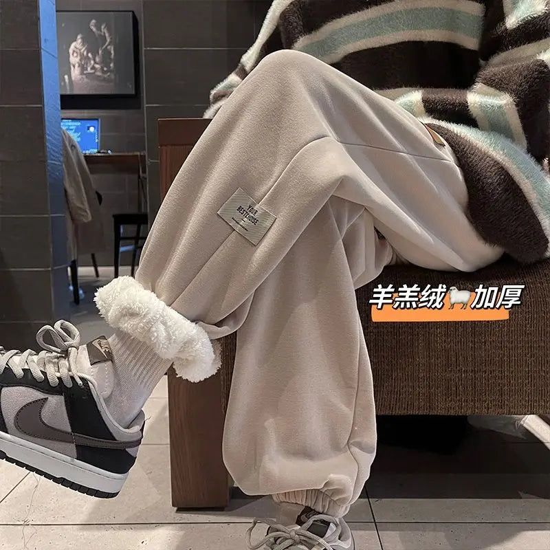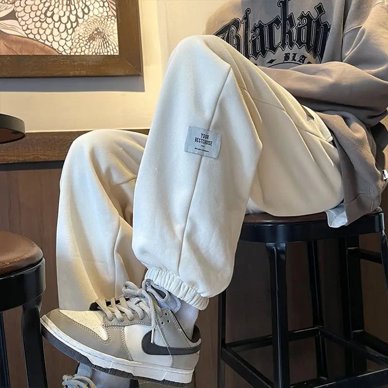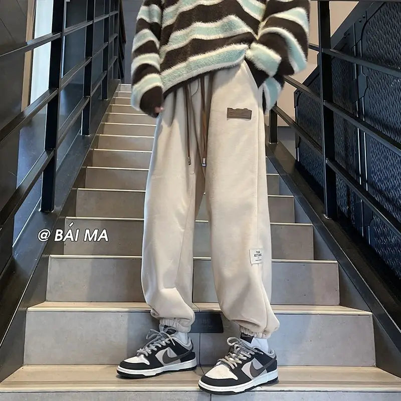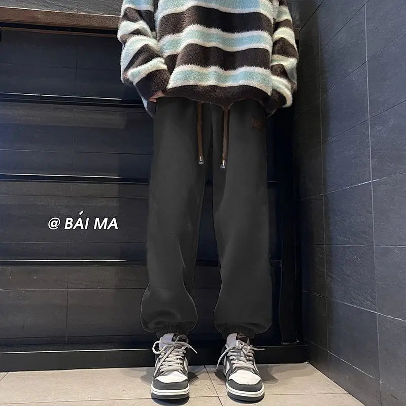 Bonsir Spring and Autumn Men's Fashion High Street Solid Color Harlan Wei Pants Plush Loose Relaxed Comfortable Versatile Pants
