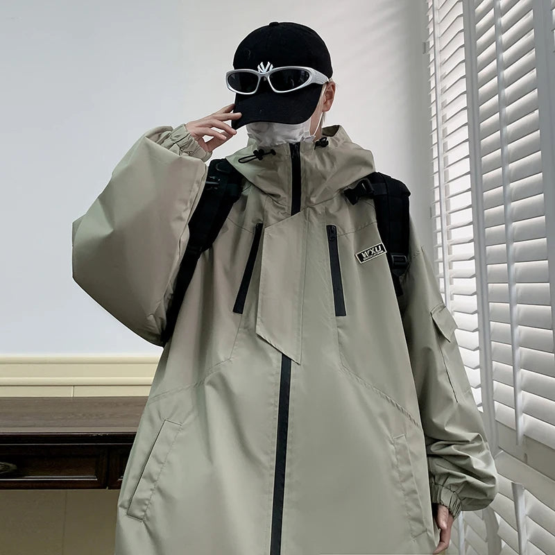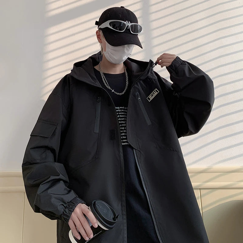 Bonsir Spring Mens Pockets Jackets Hip Hop Harajuku Streetwear Fashion Hooded Loose Coats Outwear Plus Size M-8XL