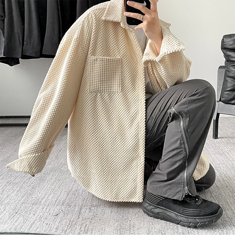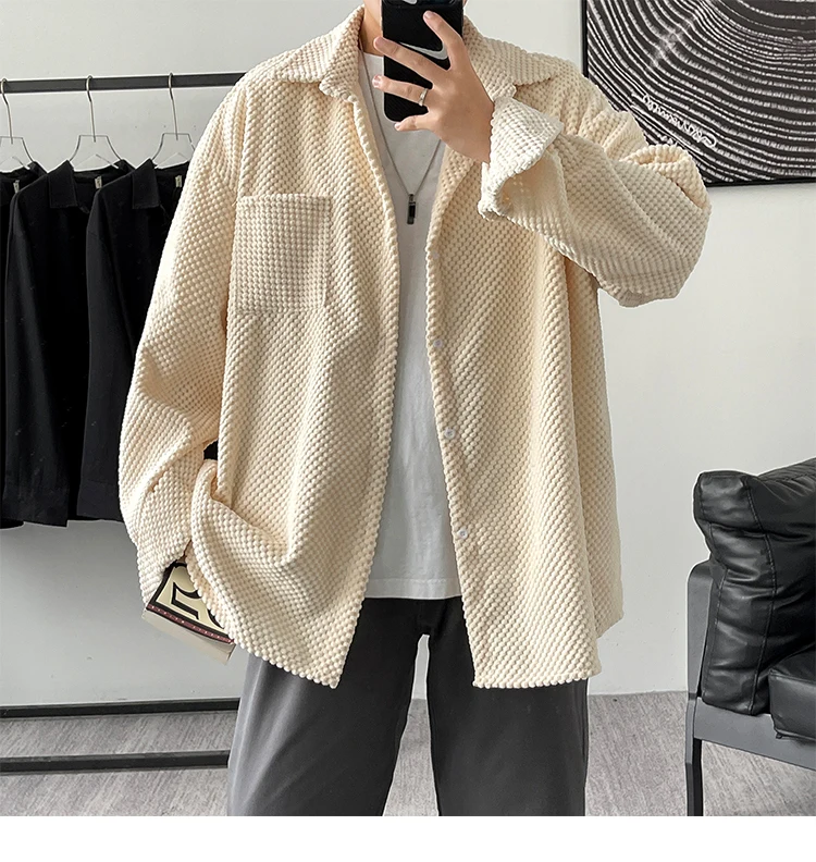 Bonsir Spring Shirts Men shirt for men loose Harajuku Pineapple Cubes Shirt Korean Style Mens Shirt Long Sleeve Streetwear Fashions