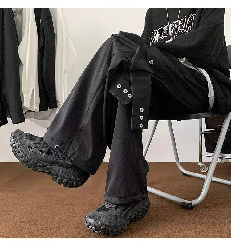 BONSIR - Streetwear Hip Hop Joggers Cargo Pants Men Overalls Multi-Pocket Black Pants Harajuku Fashion Men's Wide Leg Baggy Sweatpants