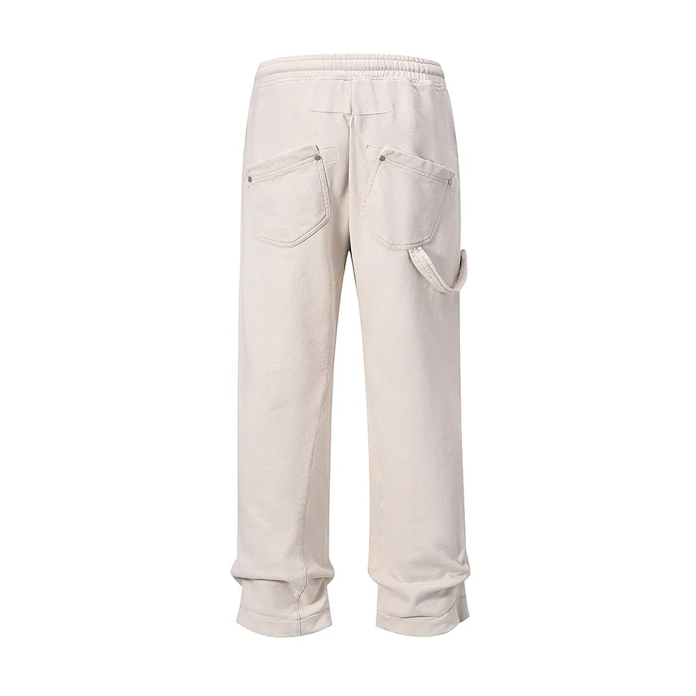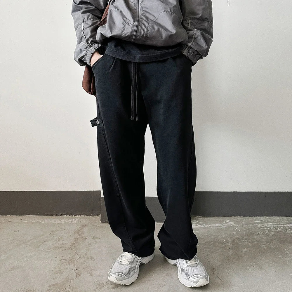 Bonsir Streetwear Washed Vintage Solid Baggy Joggers Sweatpants Mens and Womens Straight Pocket Loose Casual Drawstring Trousers