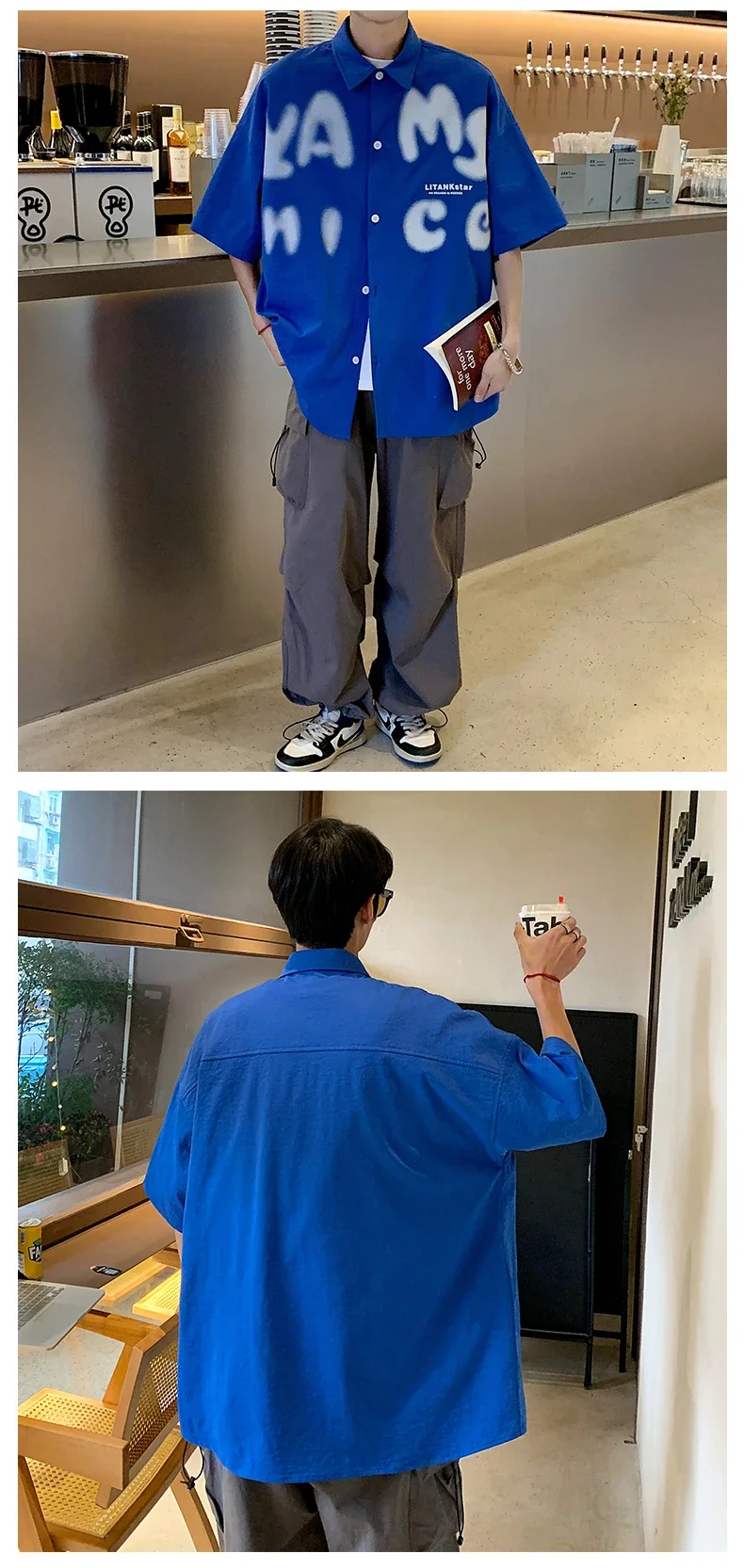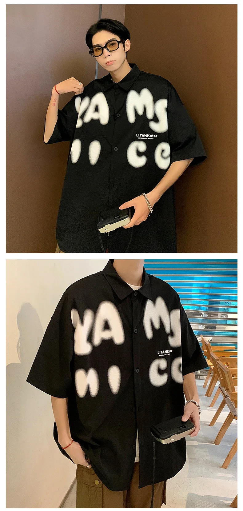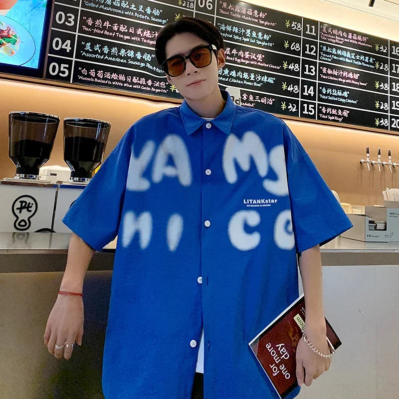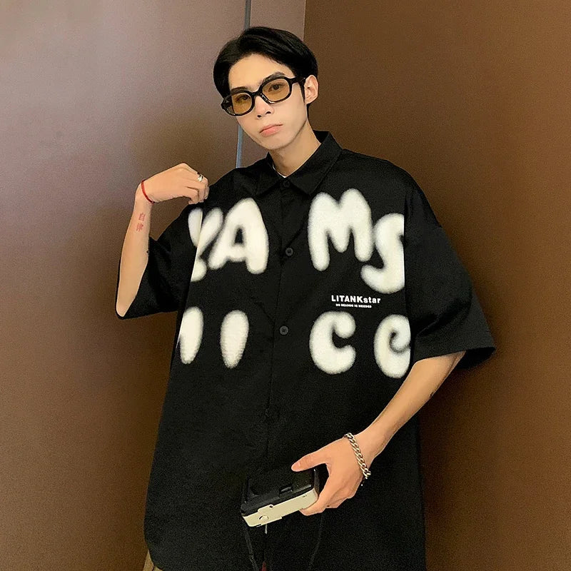 BONSIR - Summer Fashion Letter Print Men Shirts Casual Short Sleeve Trend Oversized Korean Streetwear Shirts Retro Loose Y2k T Shirt