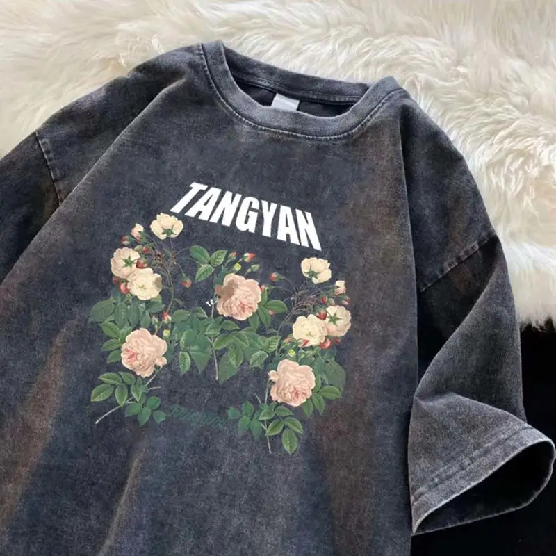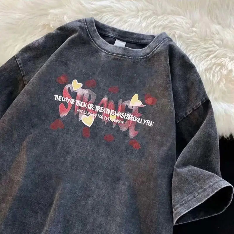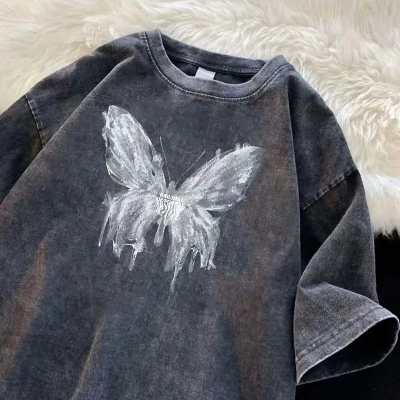 BONSIR - Summer New Harajuku Butterfly Print Grunge T-shirts Loose Fashion Streetwea Crop Tops Women Y2k Aesthetic Casual Drawstring Tees