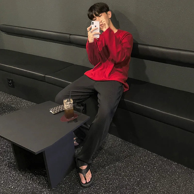 BONSIR - Summer Pleated Pants Men Fashion Gray Black Ice Silk Pants Men Streetwear Korean Loose Straight Casual Pants Mens Trousers M-3XL