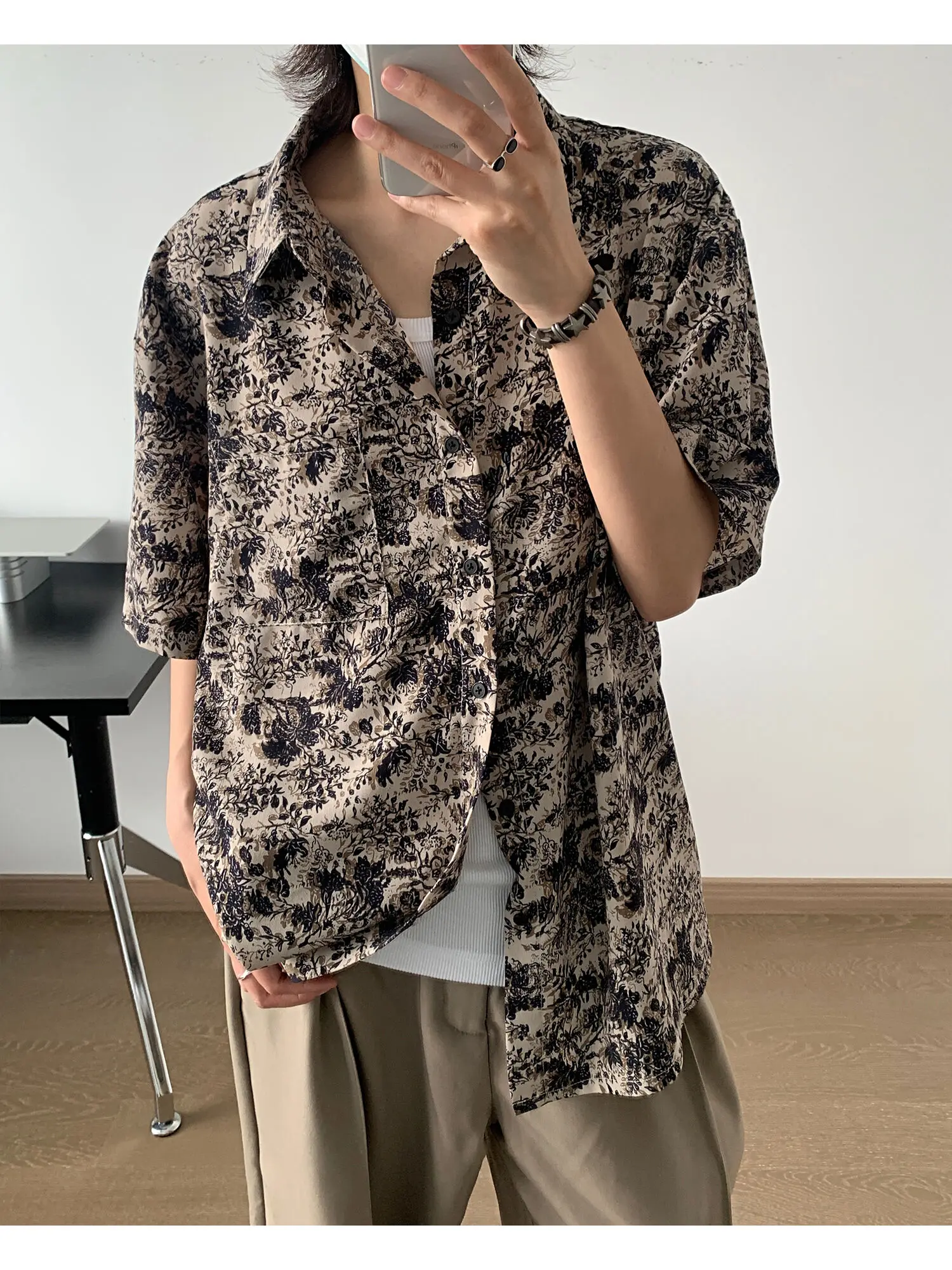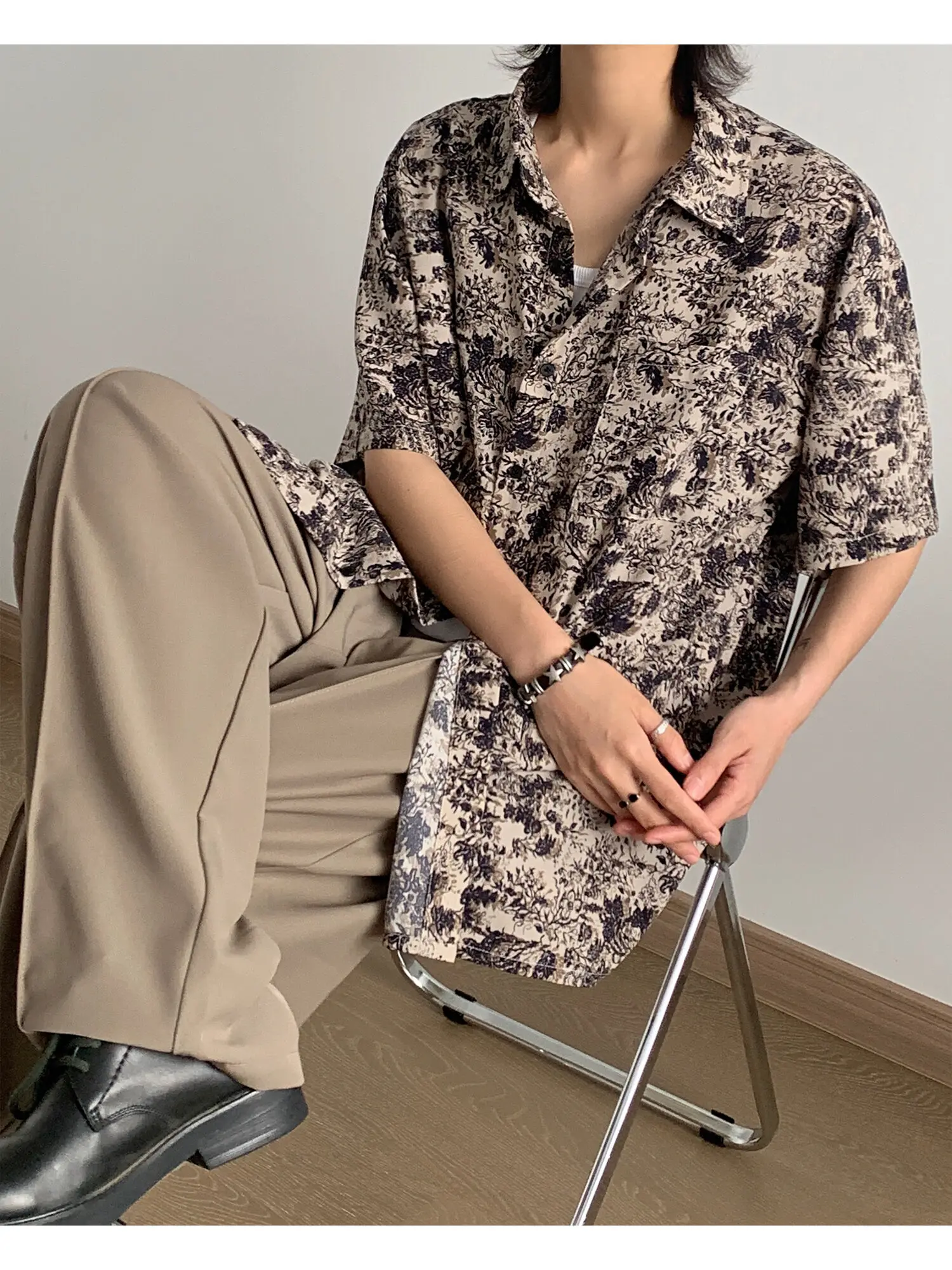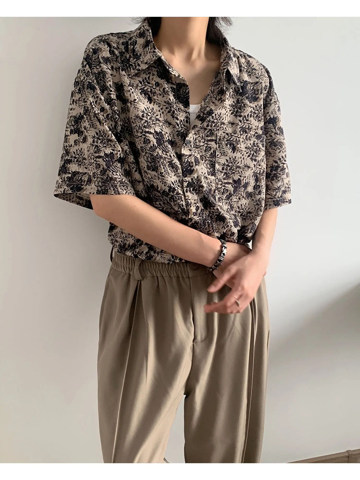 BONSIR - Summer Short Sleeved Shirt Men Oversized Retro Printed Shirt Men Streetwear Korean Loose Casual Shirt Mens Hawaiian Shirts