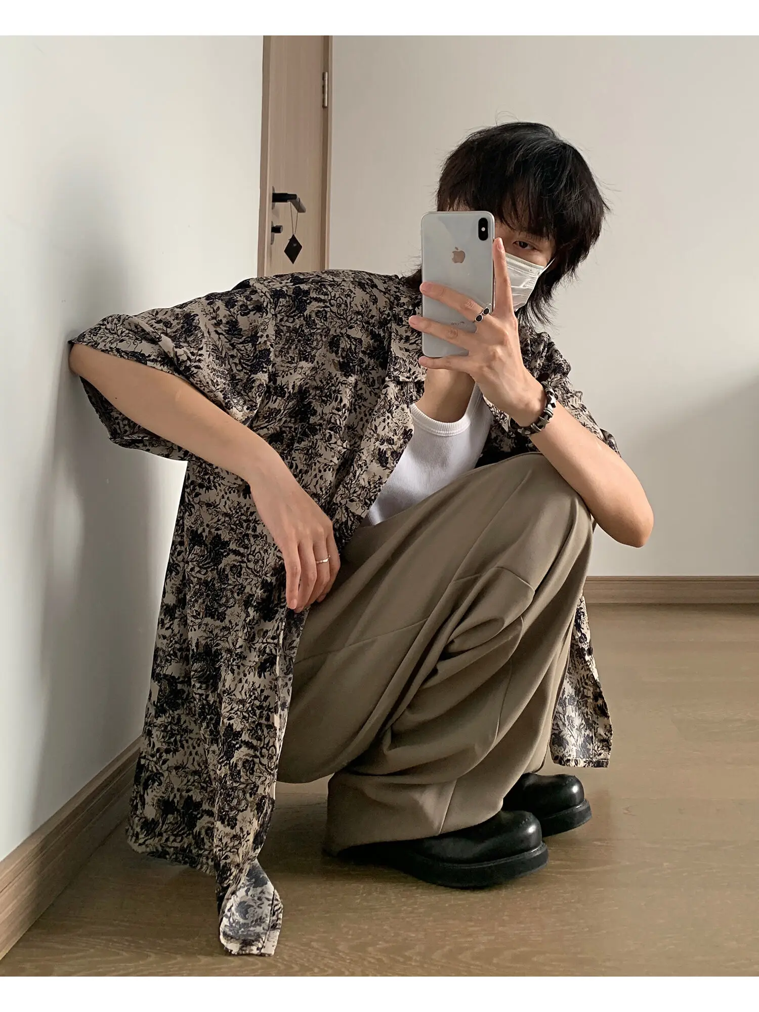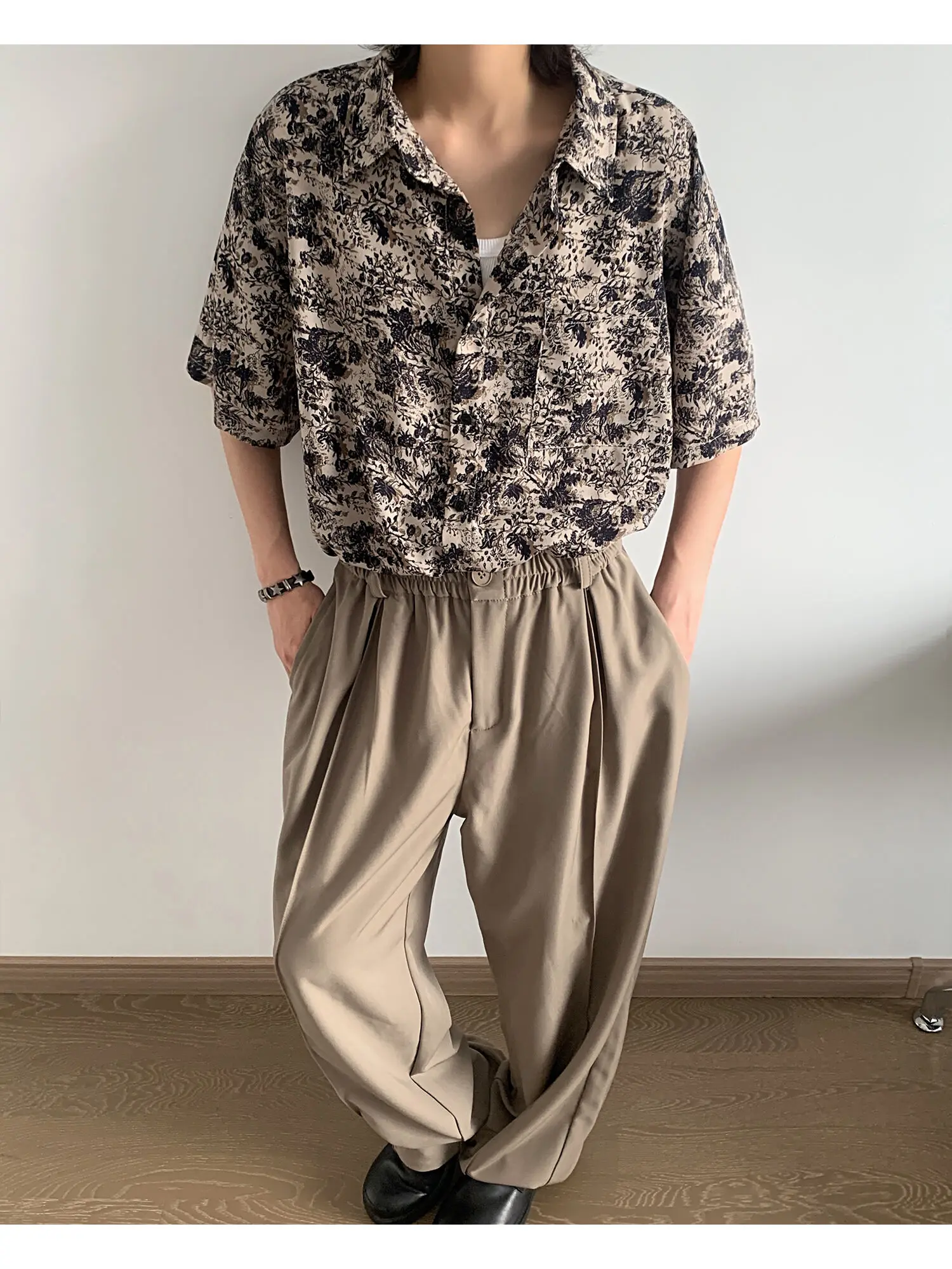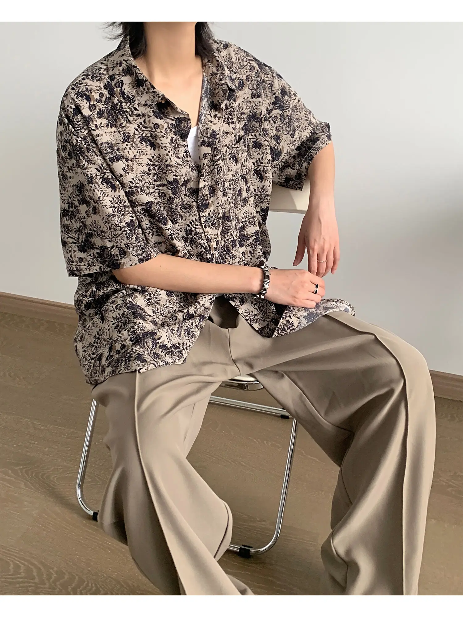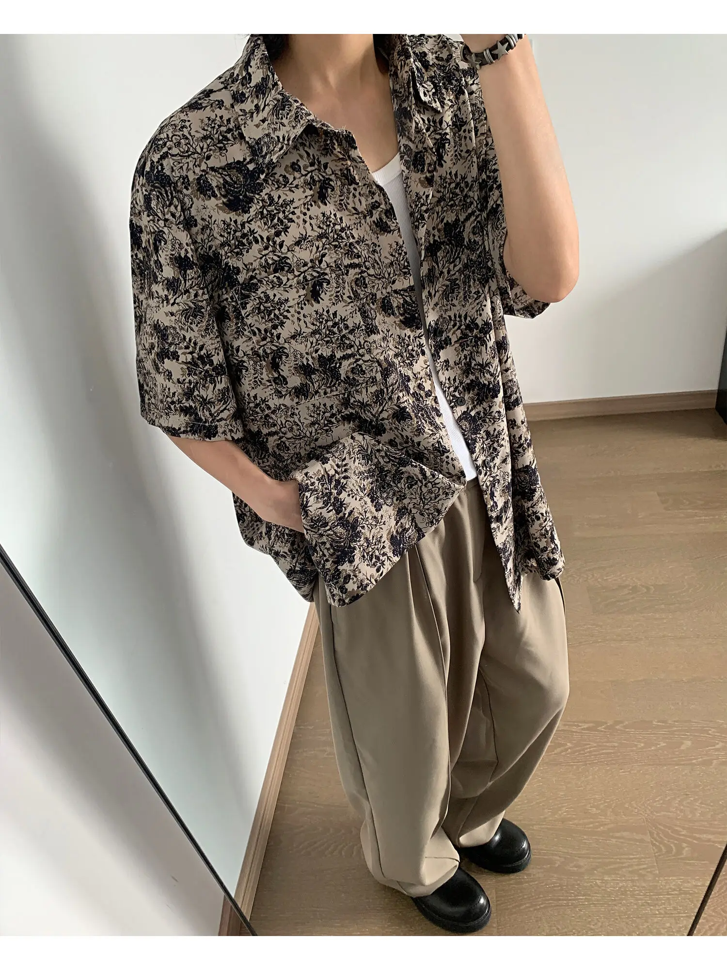 BONSIR - Summer Short Sleeved Shirt Men Oversized Retro Printed Shirt Men Streetwear Korean Loose Casual Shirt Mens Hawaiian Shirts
