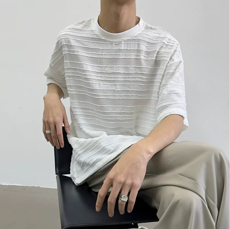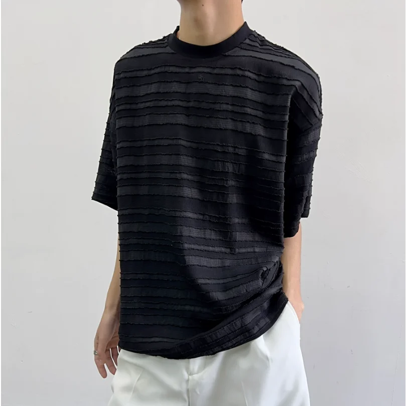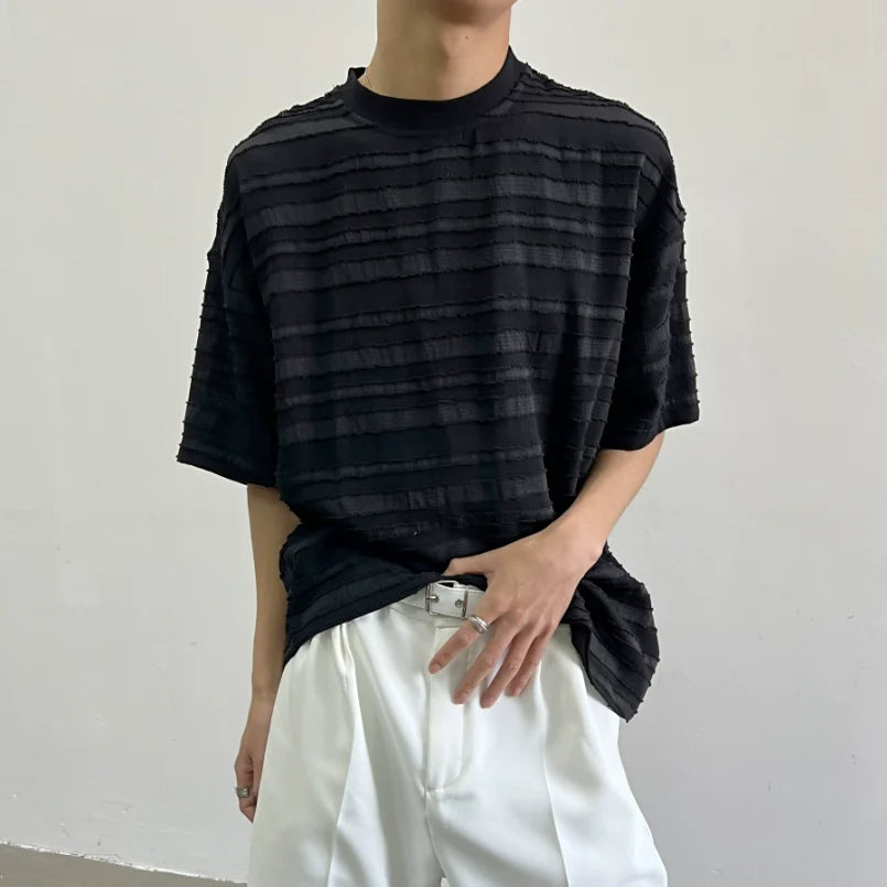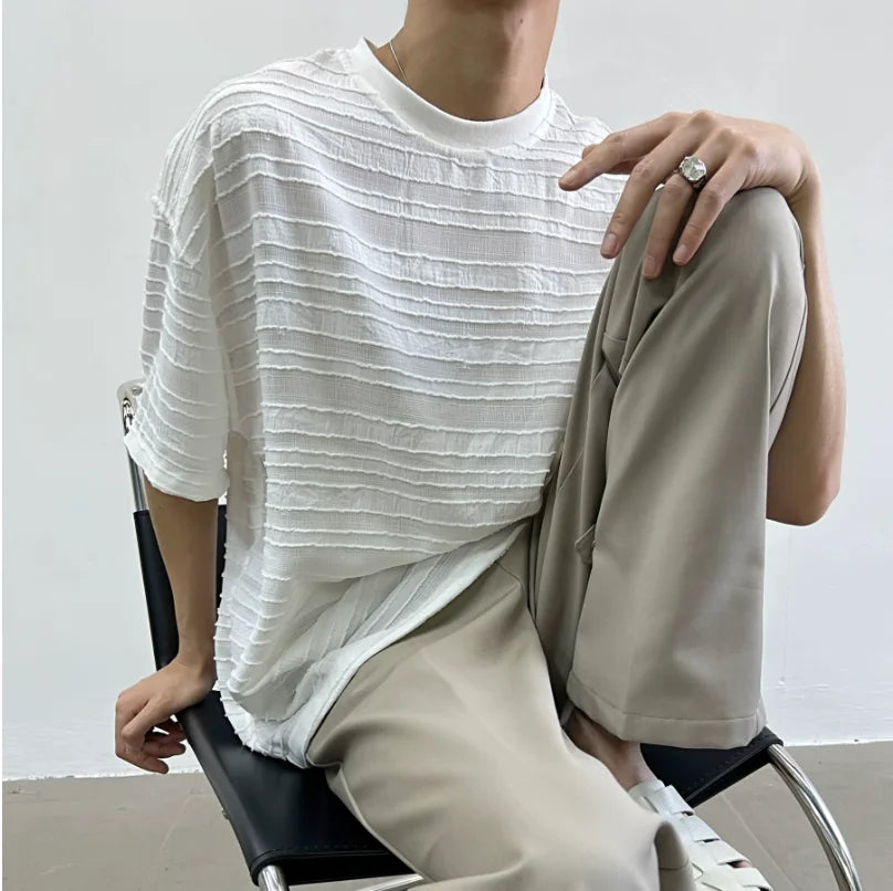 Bonsir Summer Street Trendy Personalized Stripe Round Neck Short Sleeve Couple Breathable Loose Hip Hop Casual T-shirt Top harajuku