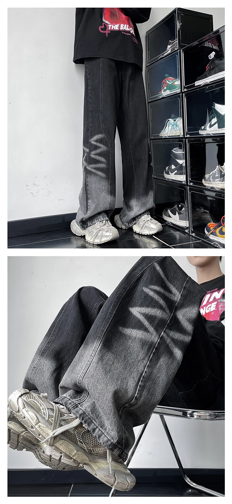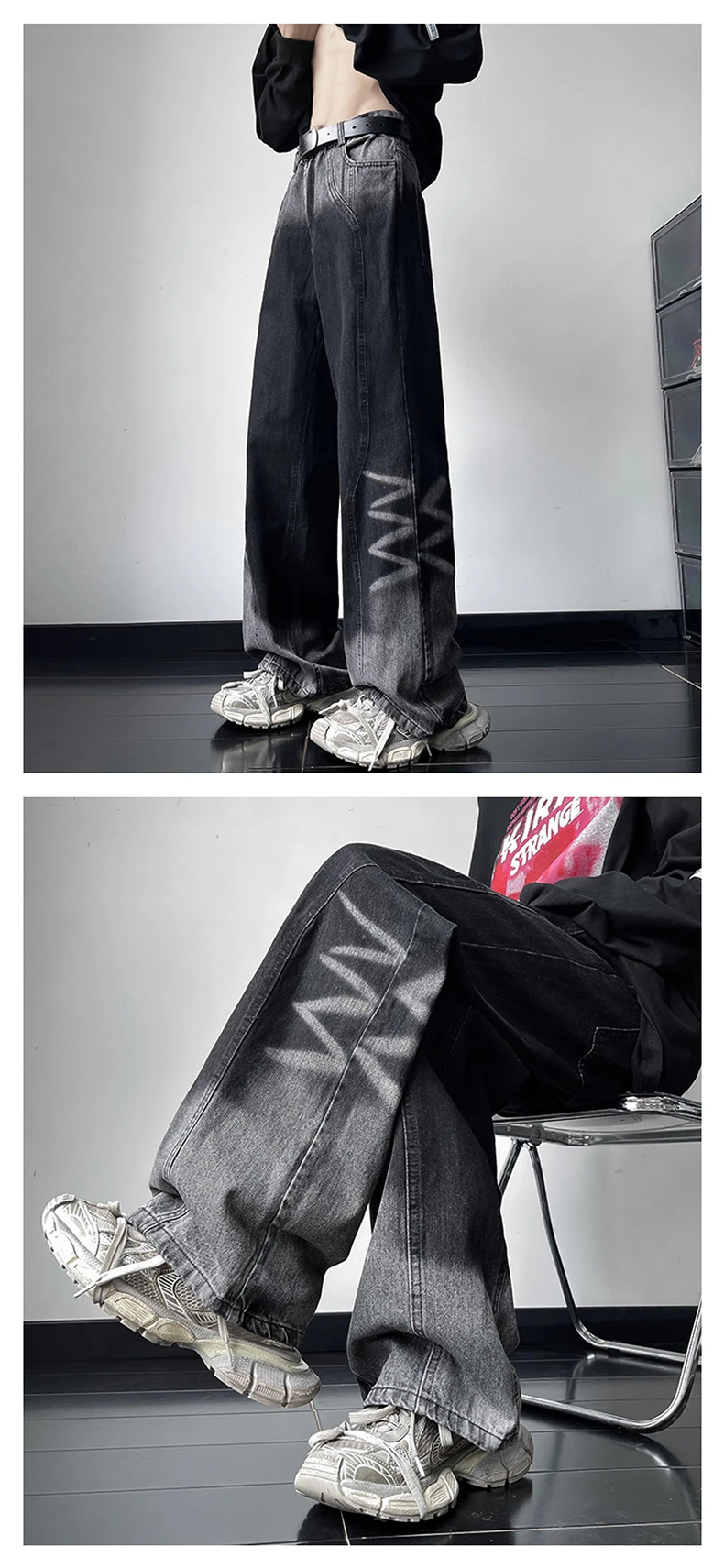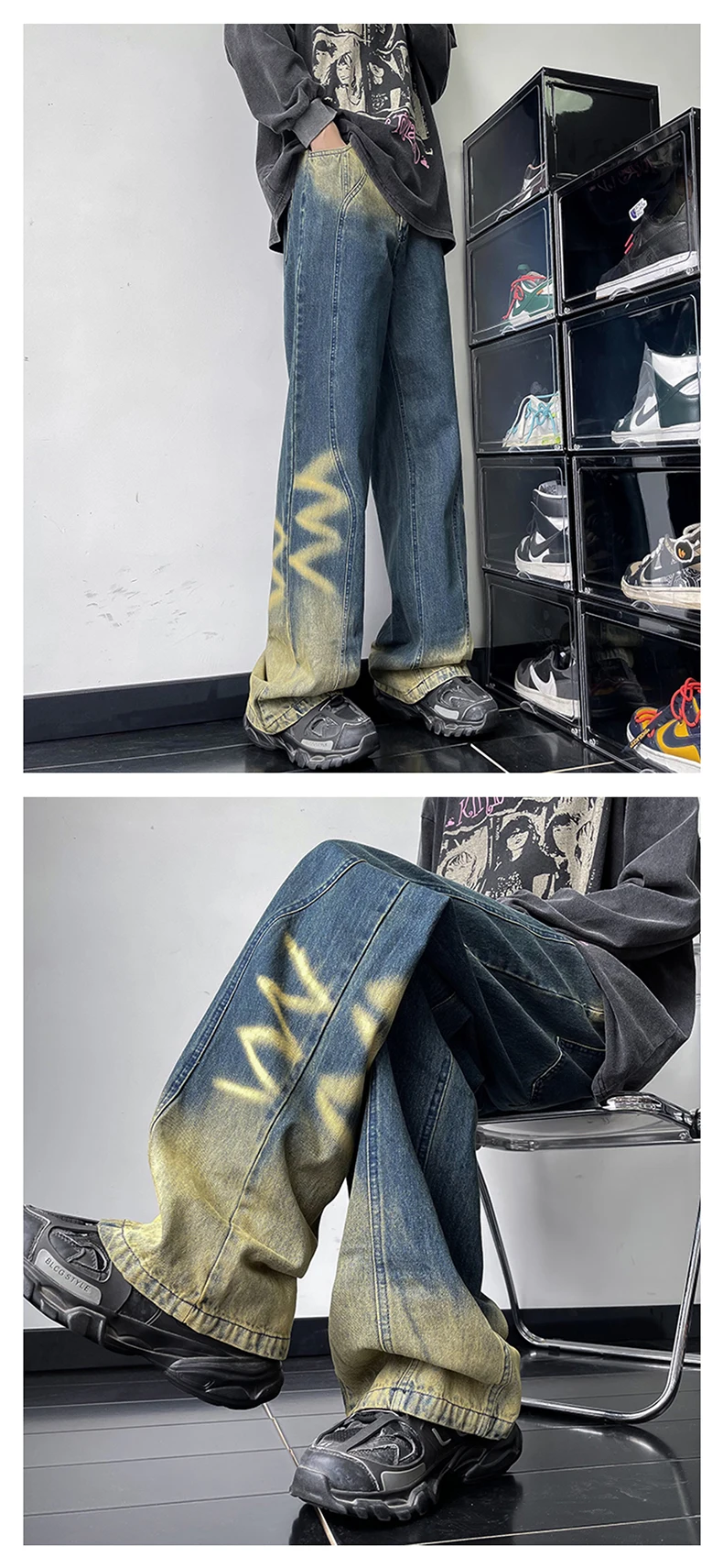 Bonsir Tie dyed jeans for men, autumn washed and made old American vibe style high street ruffian handsome loose straight casual long
