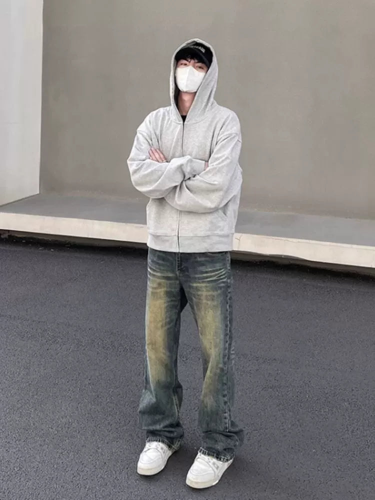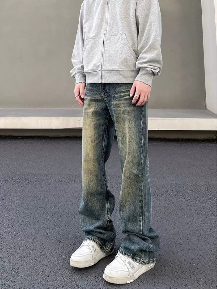 Bonsir Trendy Wide Leg Retro Streetwear Casual Jeans
