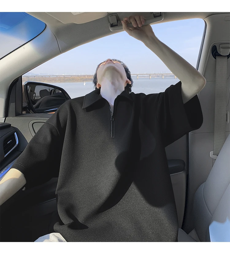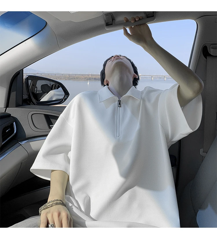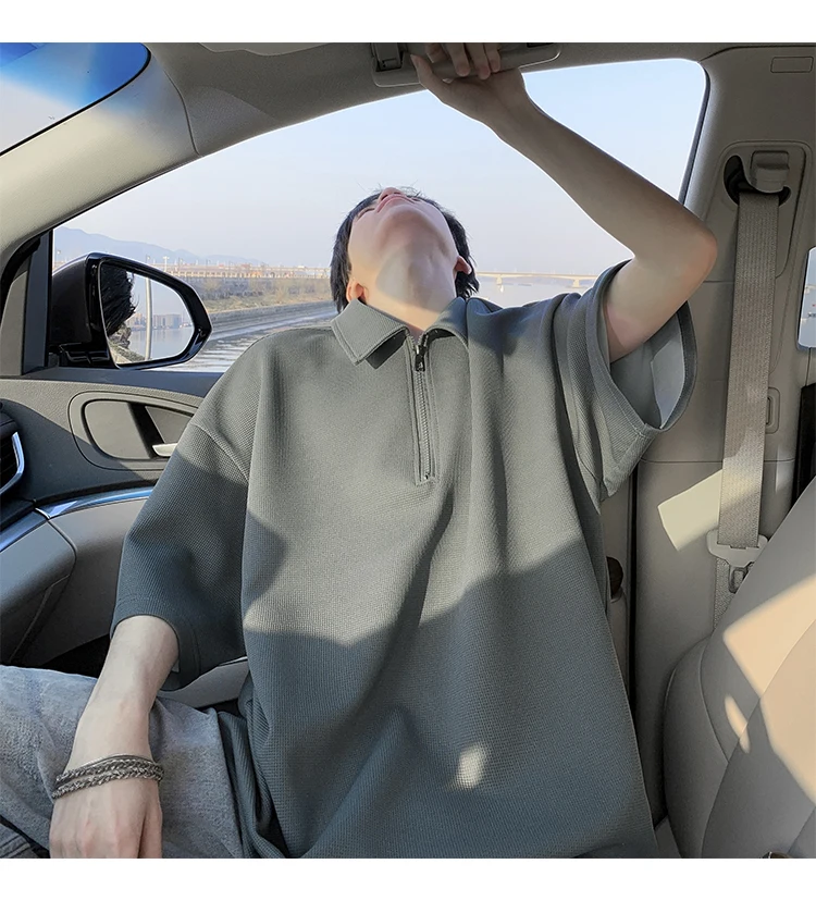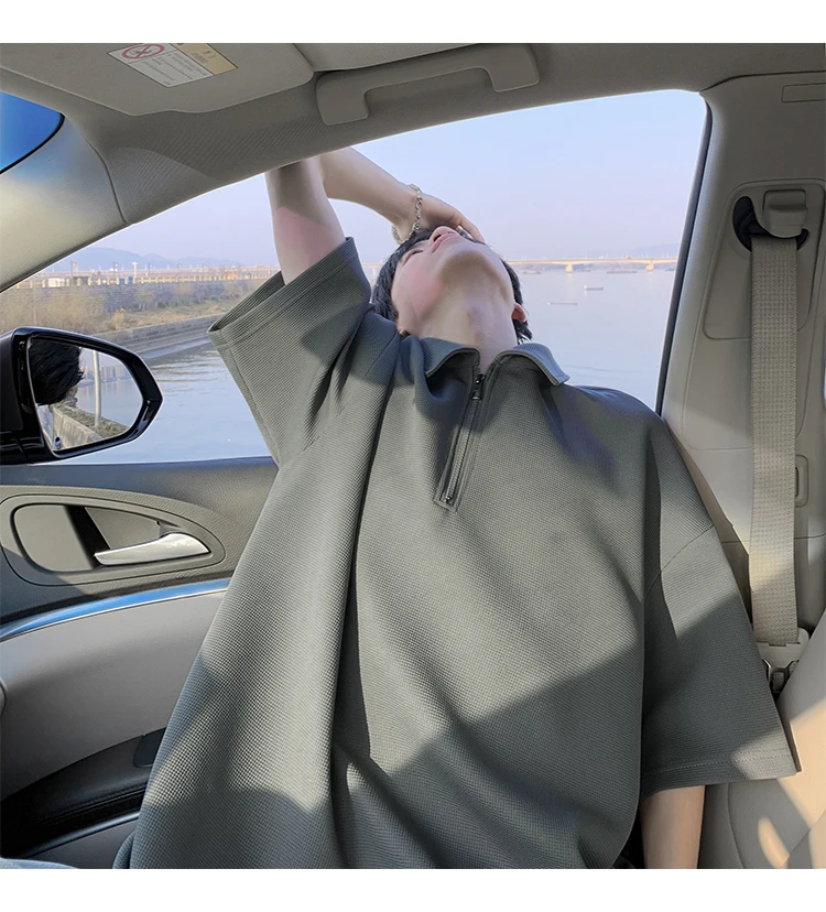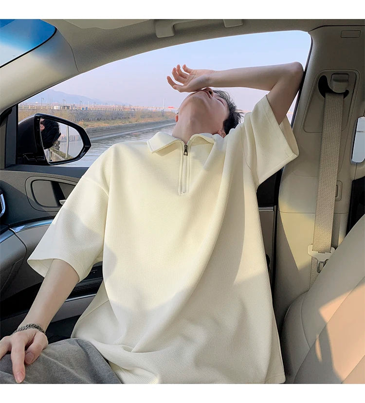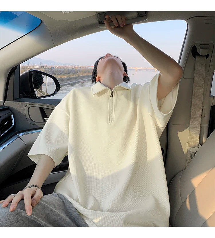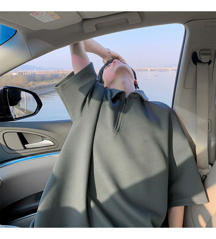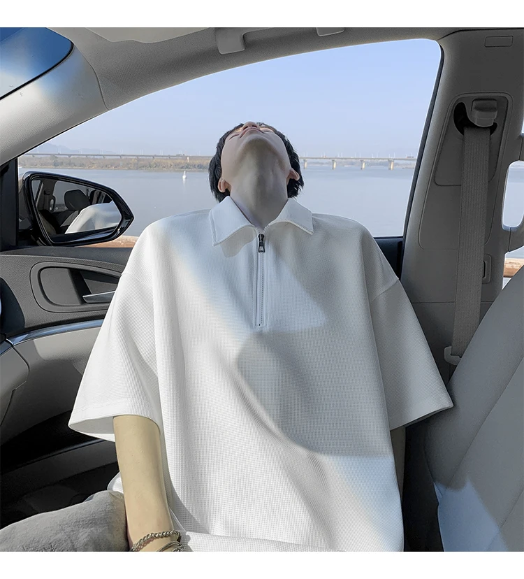 BONSIR - Unisex Oversized Half-Zip T-Shirt - Comfortable Stylish Couple Tee for Everyday Wear Waffle Oversized Comfort & Modern Street