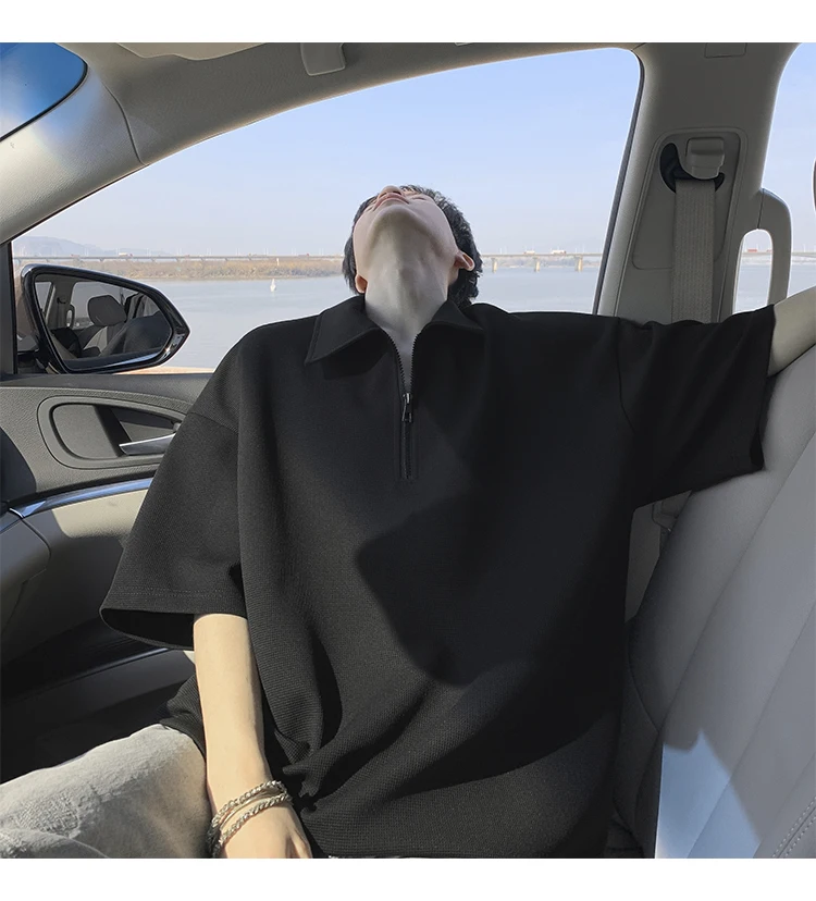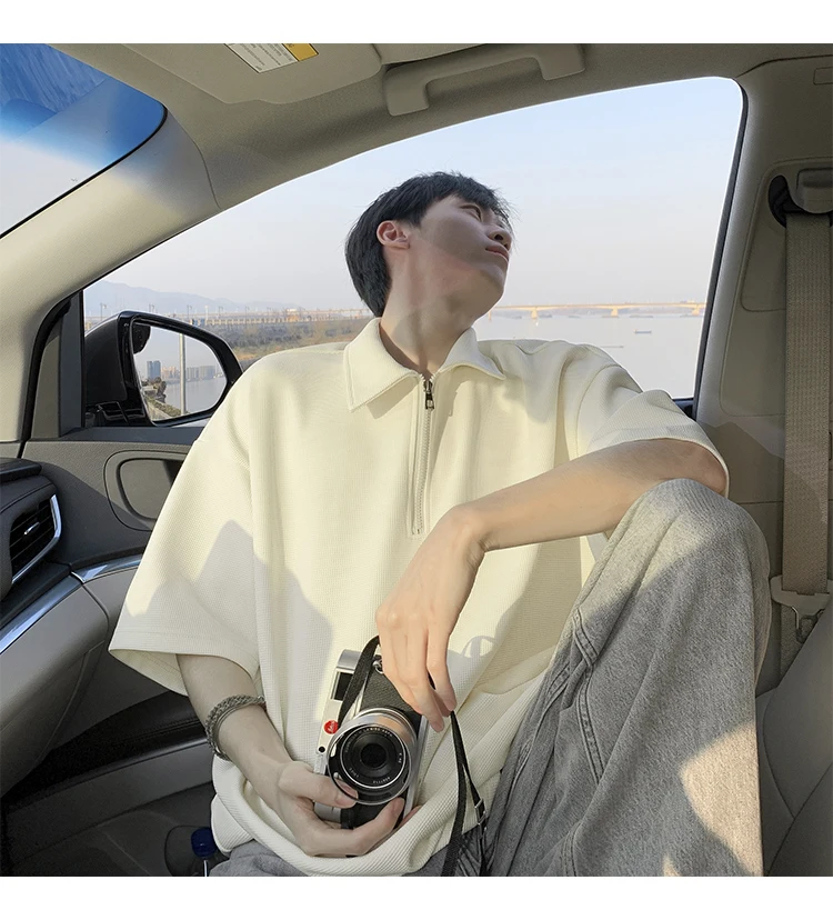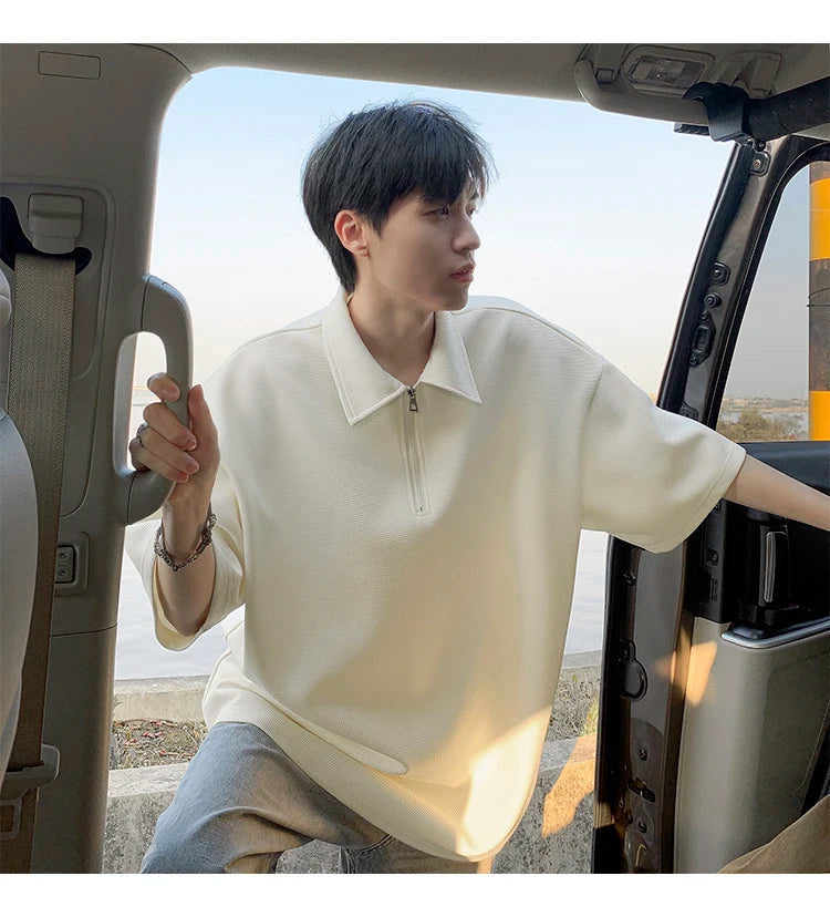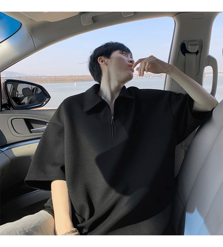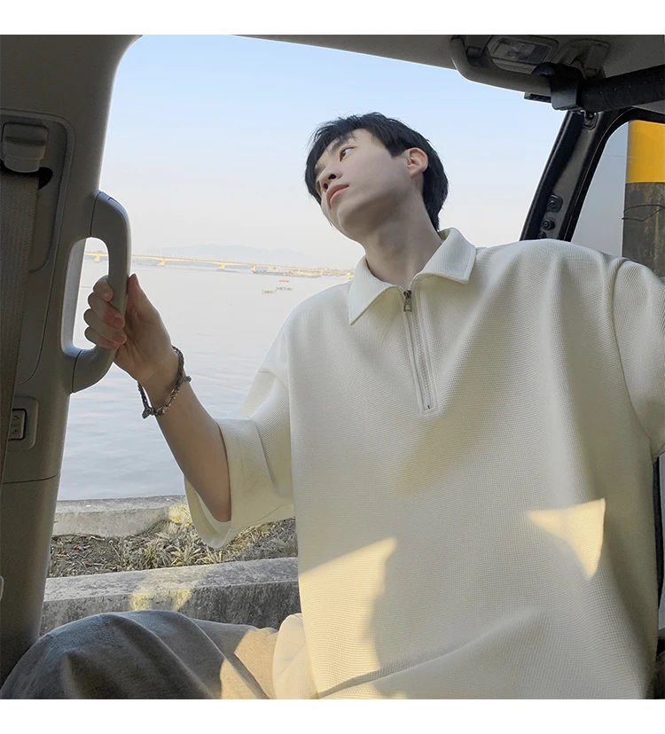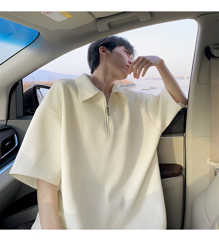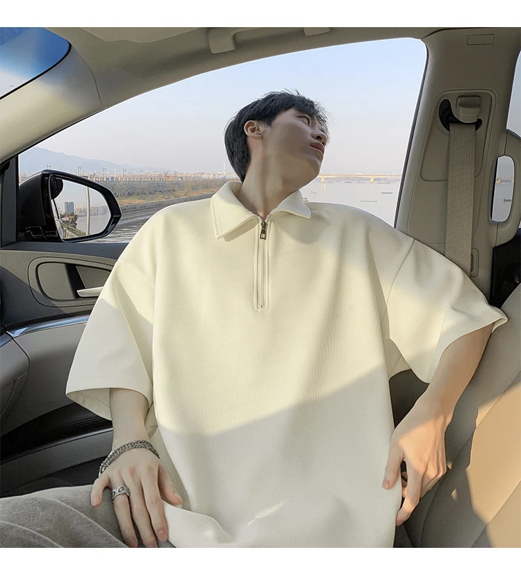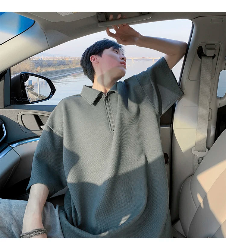 BONSIR - Unisex Oversized Half-Zip T-Shirt - Comfortable Stylish Couple Tee for Everyday Wear Waffle Oversized Comfort & Modern Street
