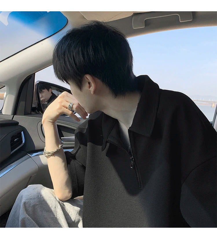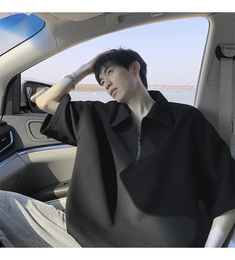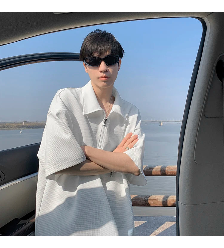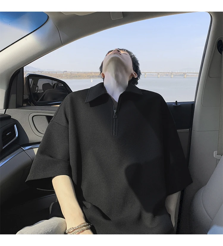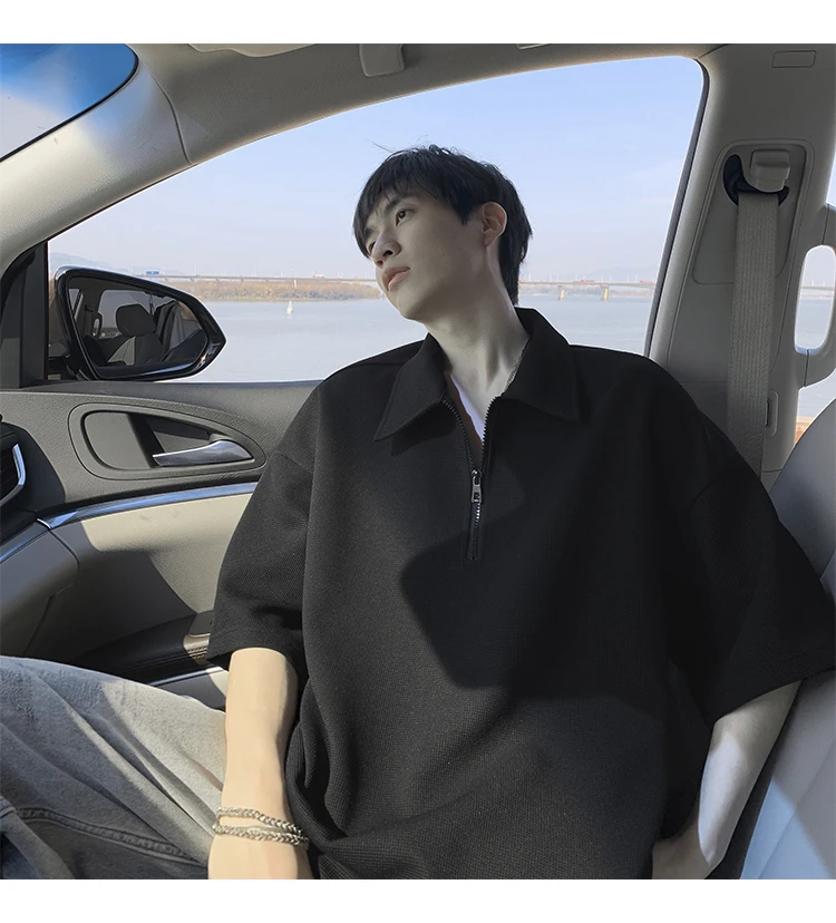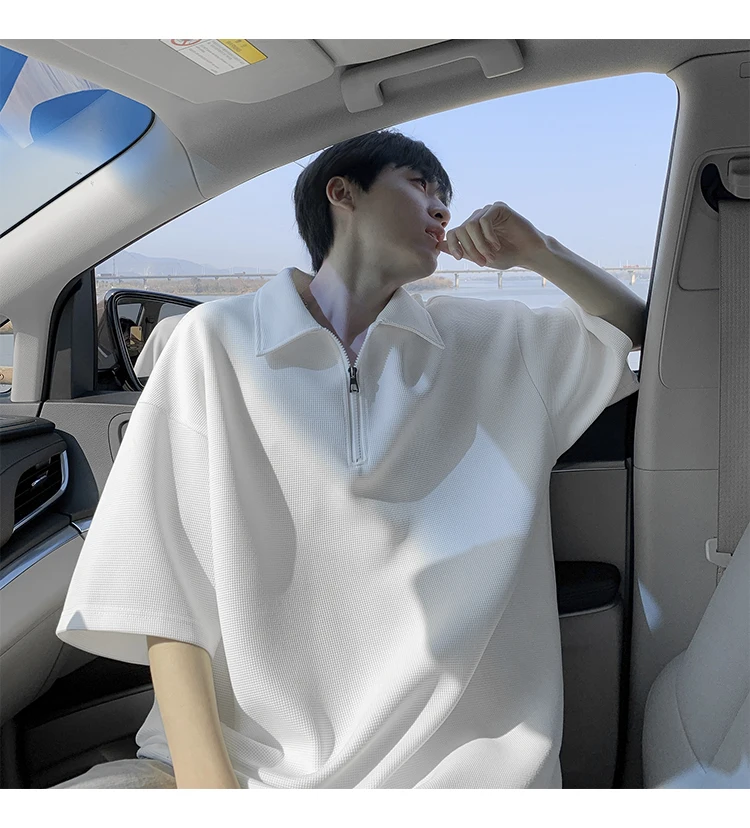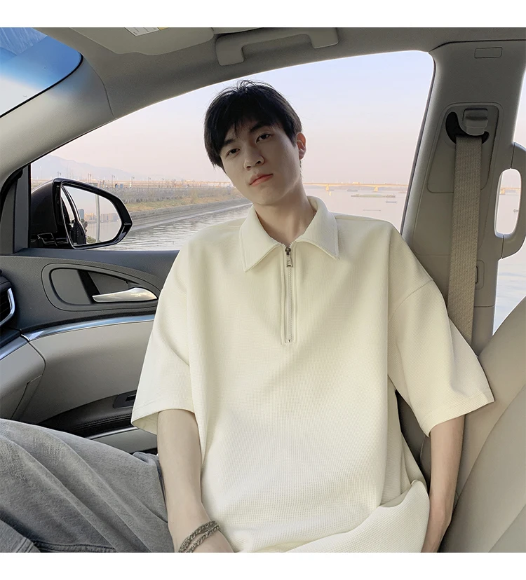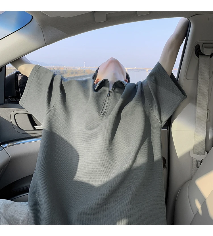 BONSIR - Unisex Oversized Half-Zip T-Shirt - Comfortable Stylish Couple Tee for Everyday Wear Waffle Oversized Comfort & Modern Street