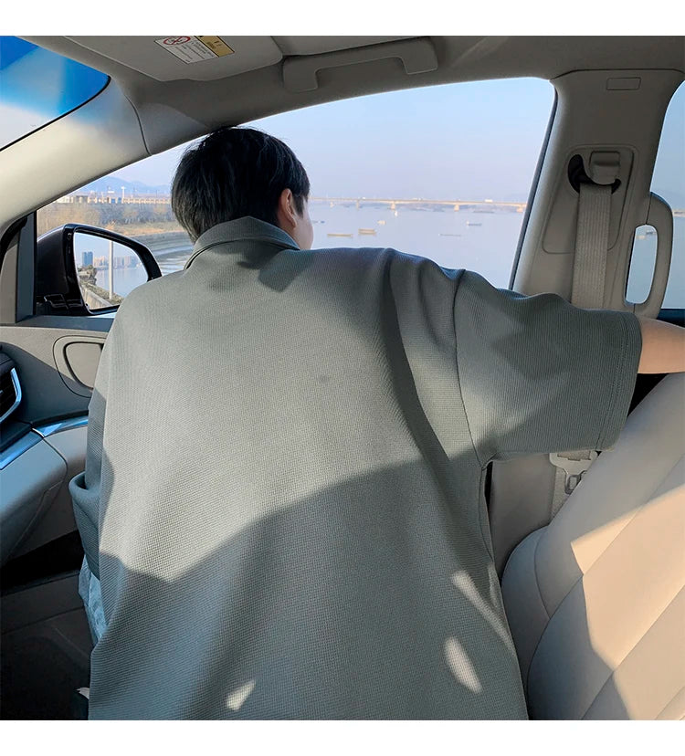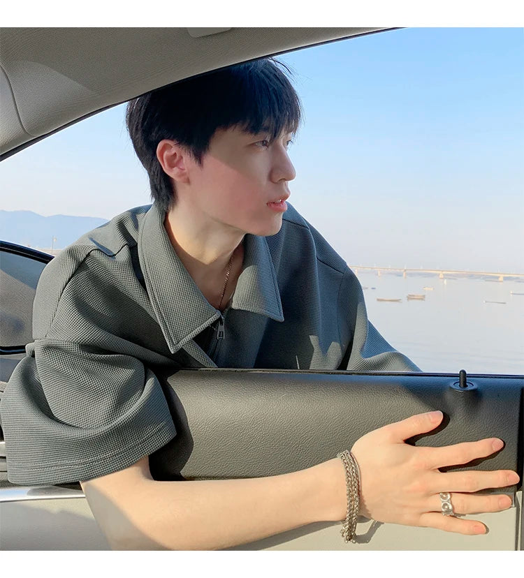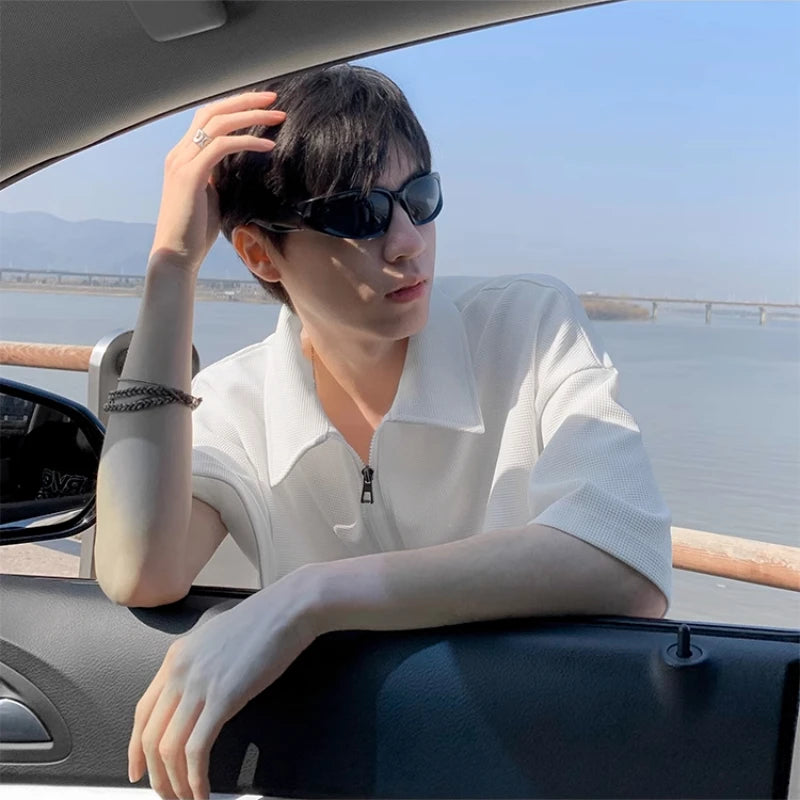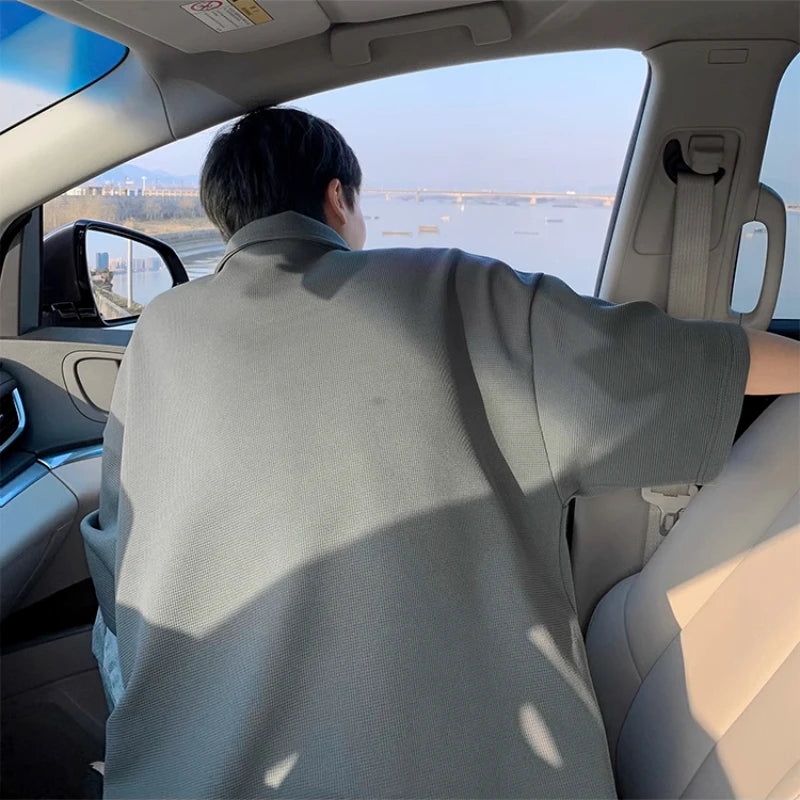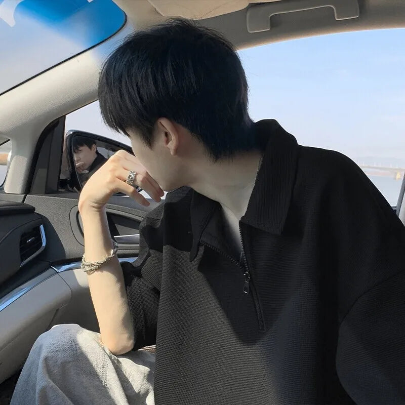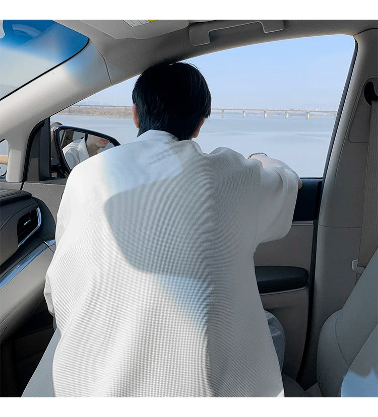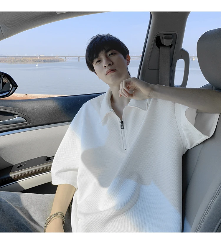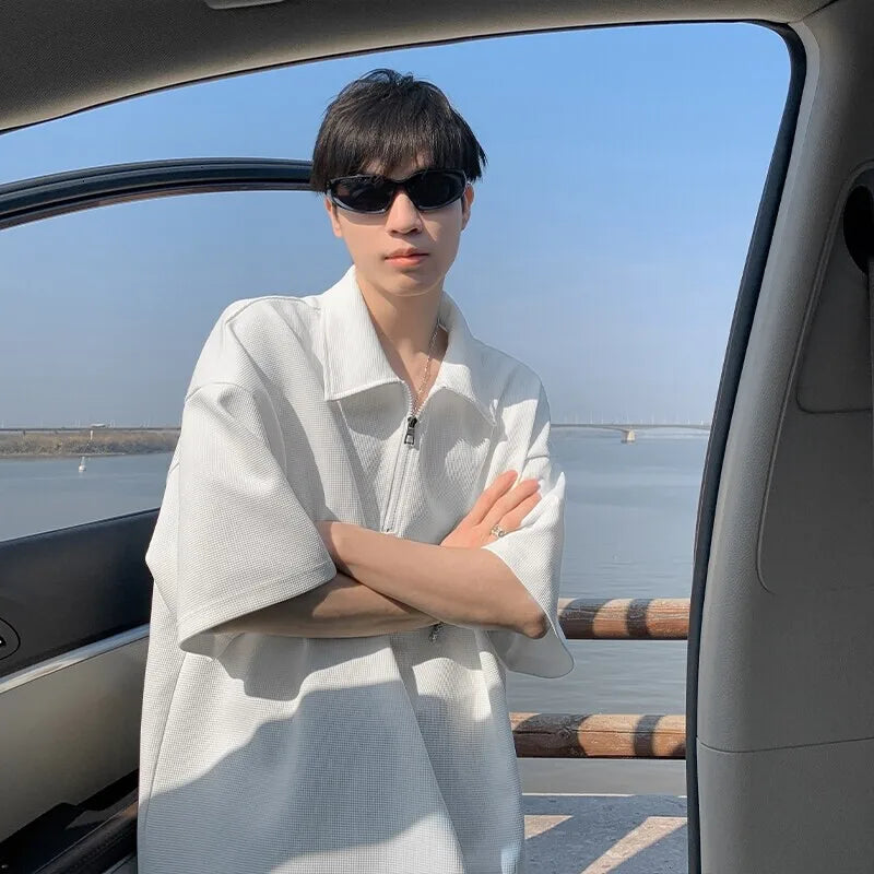 BONSIR - Unisex Oversized Half-Zip T-Shirt - Comfortable Stylish Couple Tee for Everyday Wear Waffle Oversized Comfort & Modern Street