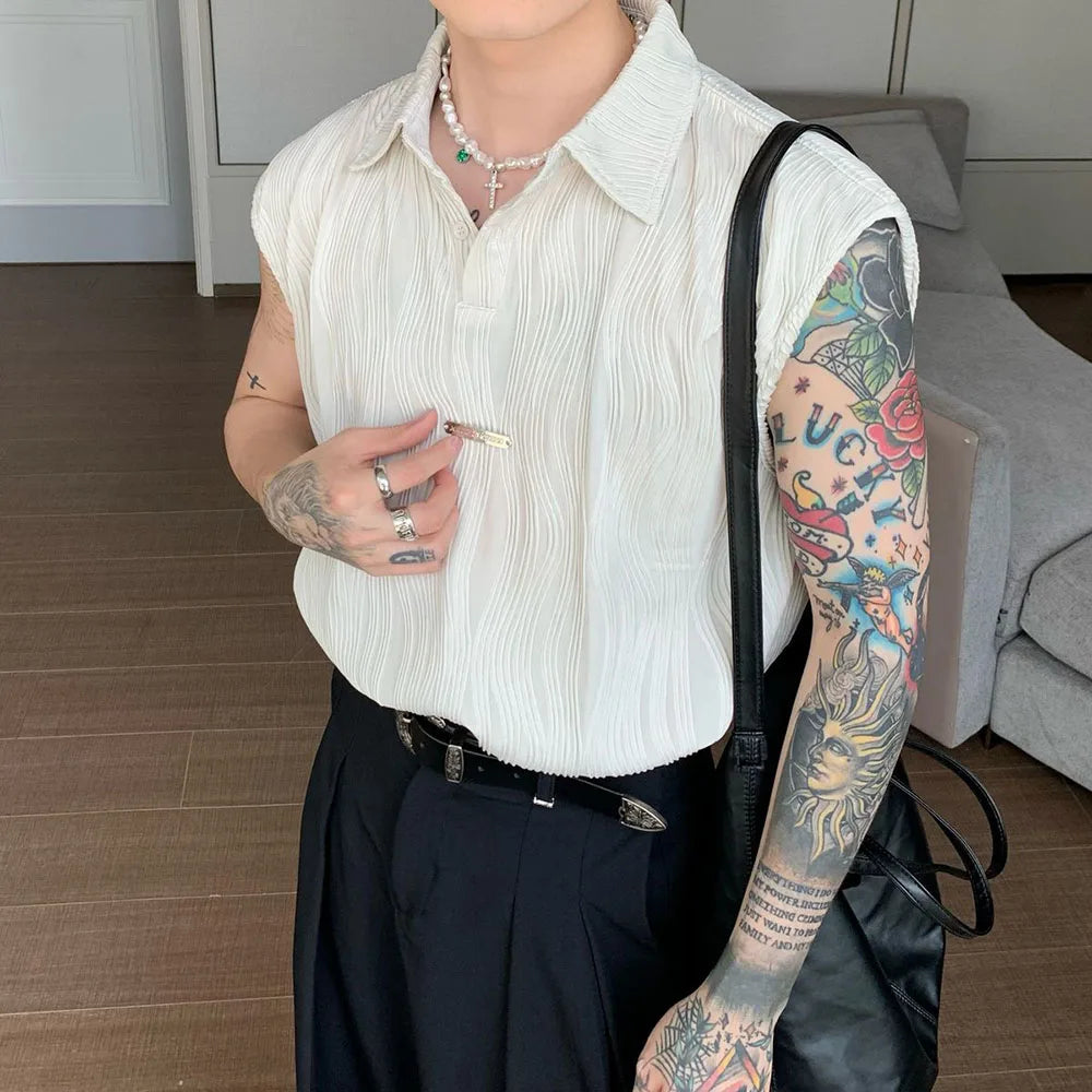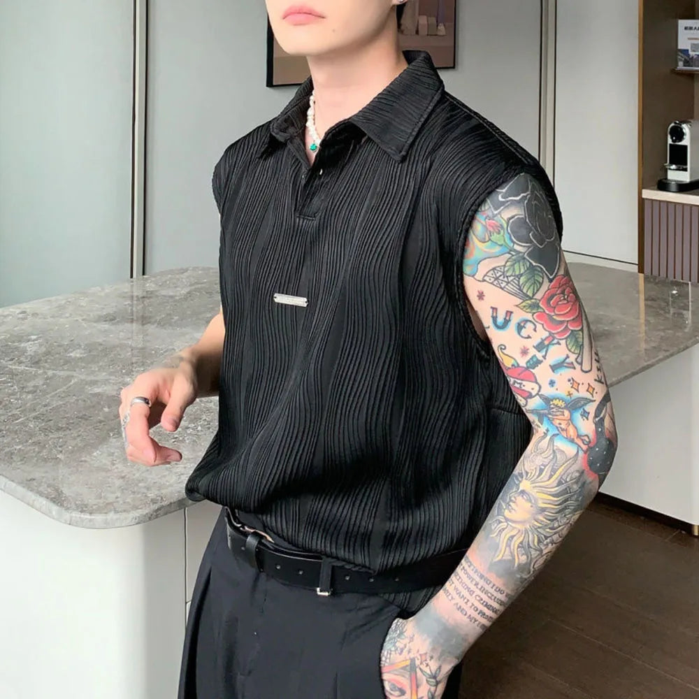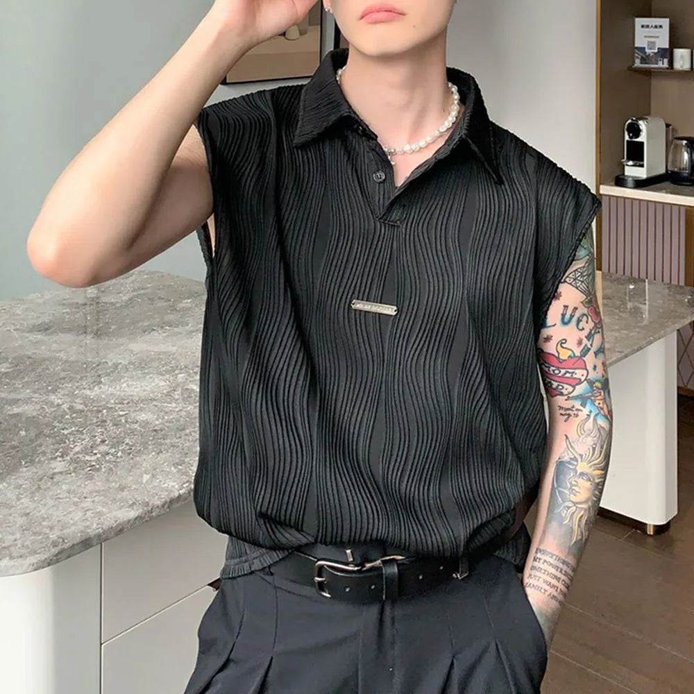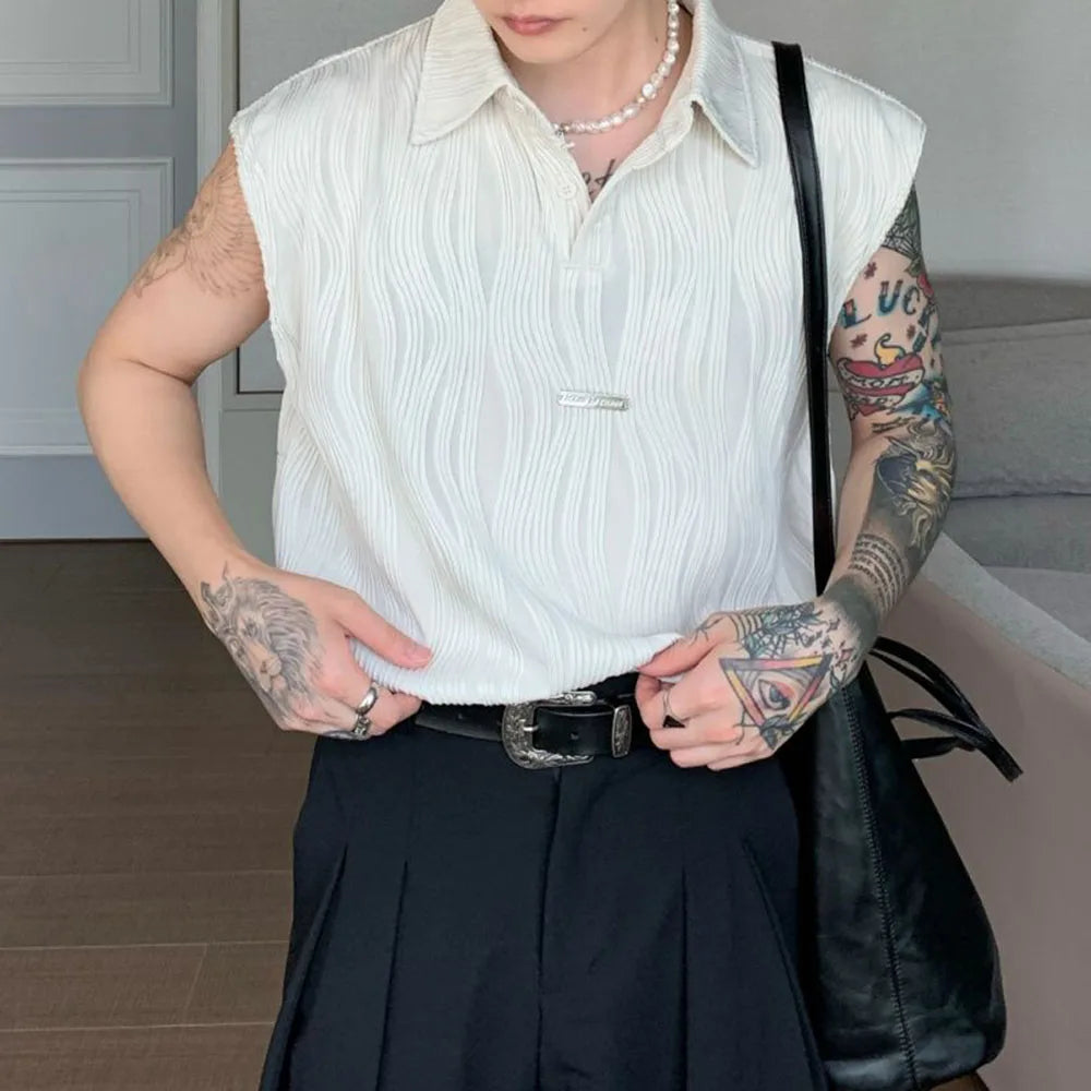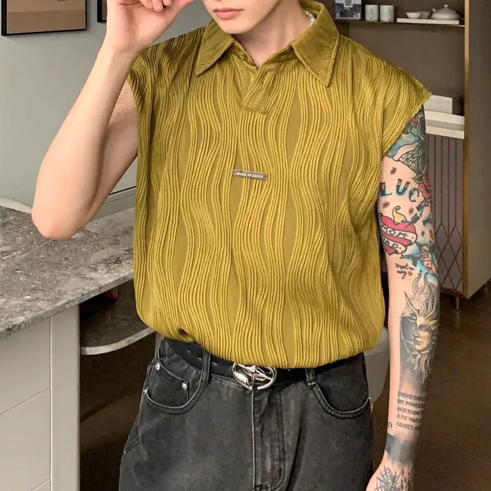 Bonsir Wavy Striped Casual Mens Vest Genderless Summer New Personalized Street Hip-Hop Comfortable Solid Color Tank Top Unisex