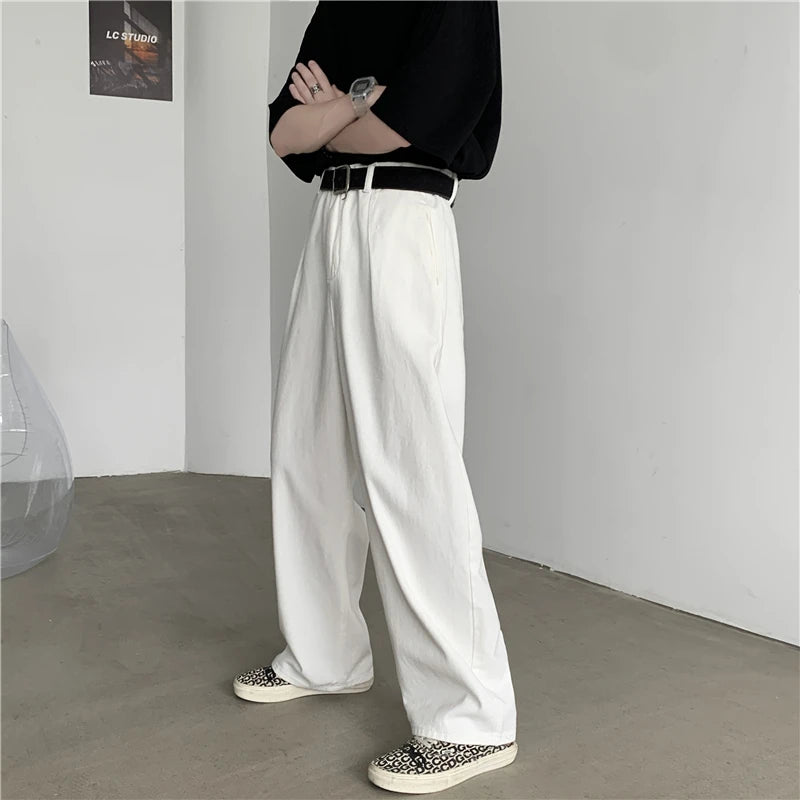 BONSIR - White Baggy Jeans Men Oversized Casual Wide Leg Jeans Men Streetwear Korean Loose Straight Jeans Mens Denim Trousers S-3XL