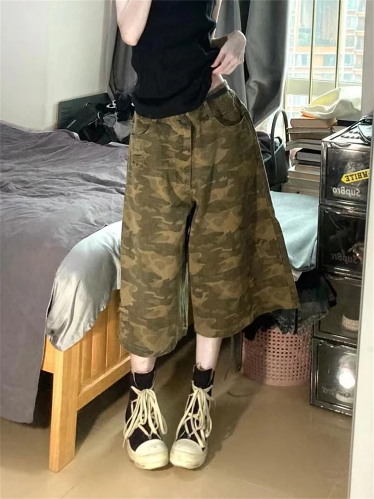 BONSIR - Women's Regular Unisex Camouflage Loose Capris Summer Street Cargo Shorts Young Girl Casual Bottom Female Calf-length Pants