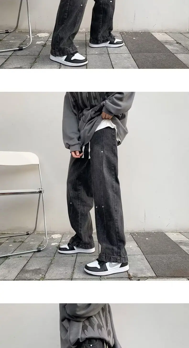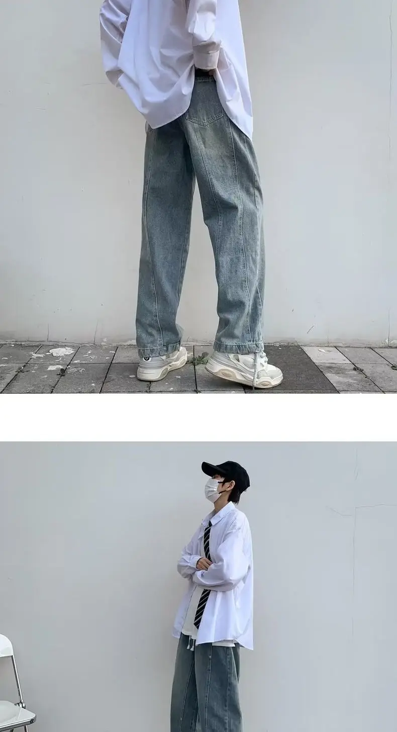 Bonsir Workwear Jeans Men's Loose Straight Leg Pants Men's Casual Pants High Street Fashion Brand