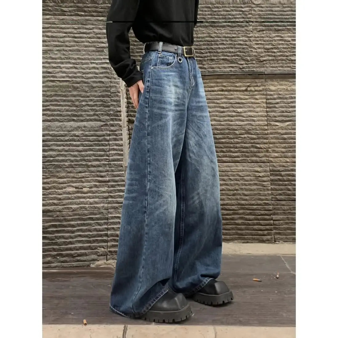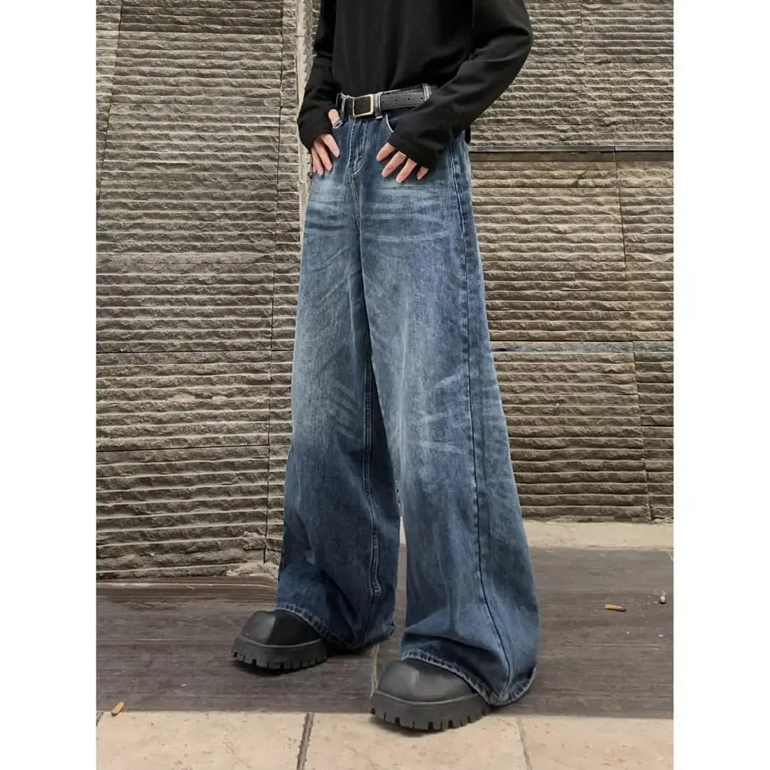Bonsir Y2k Autumn street trend personalized straight leg wide leg washed jeans American men and women hip-hop loose casual pants