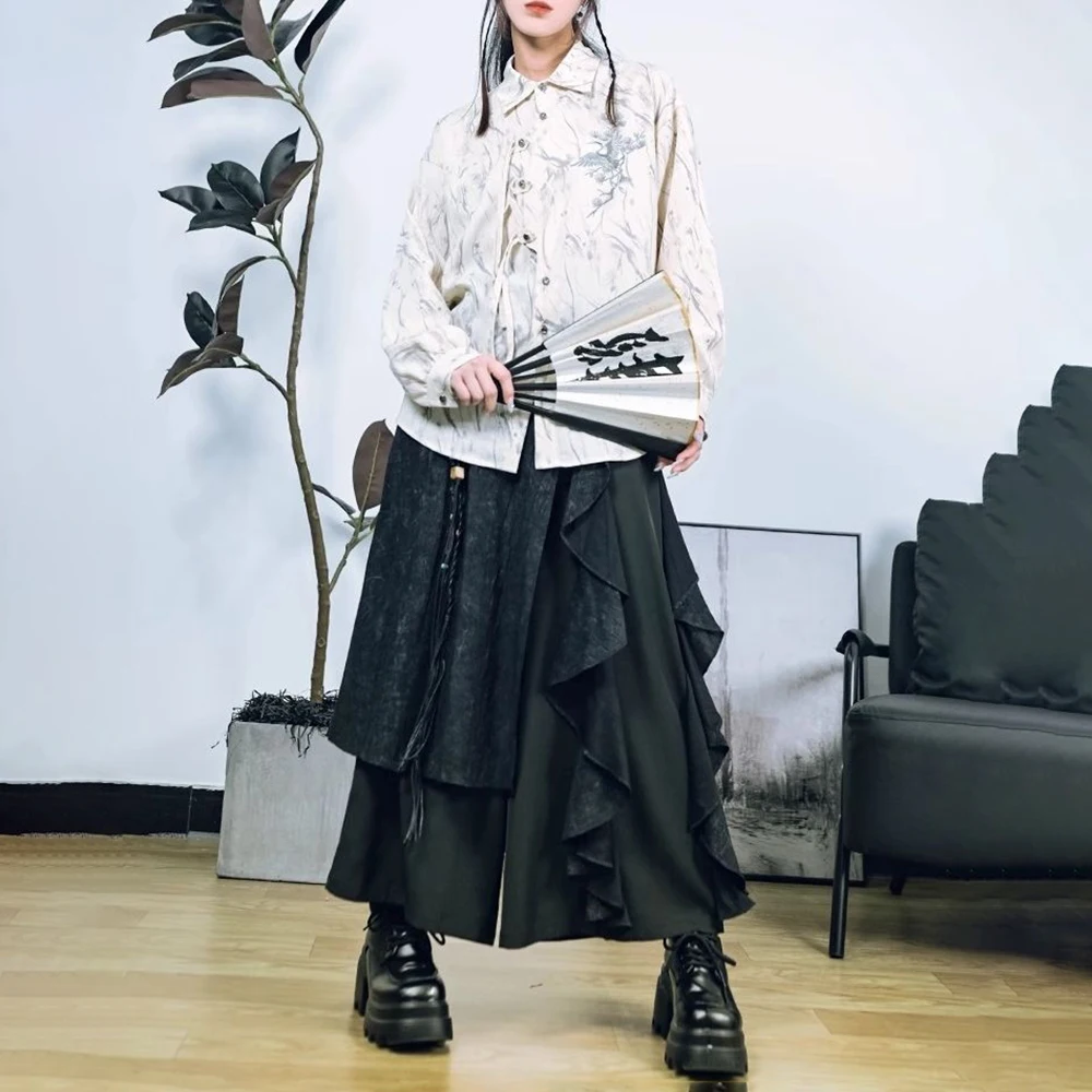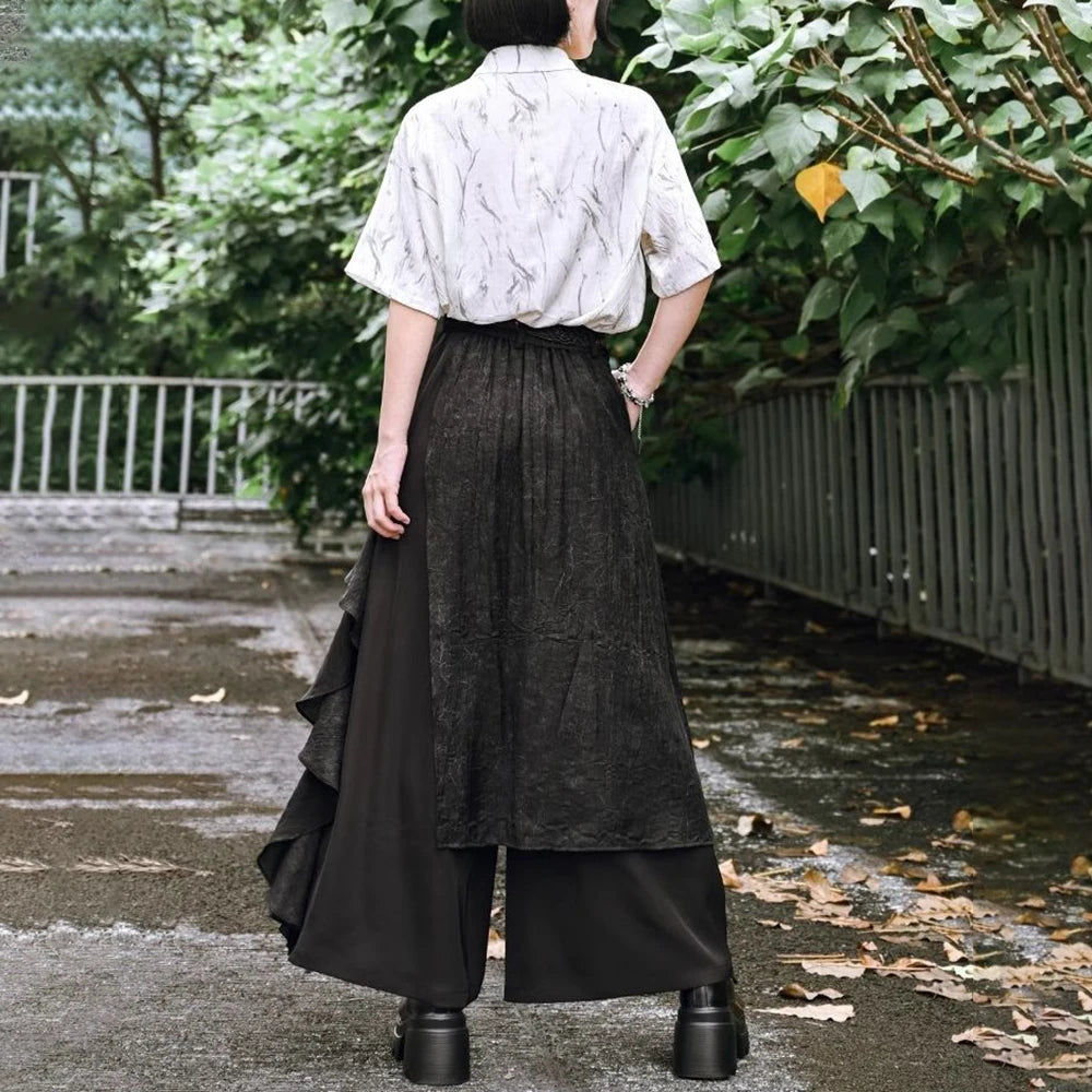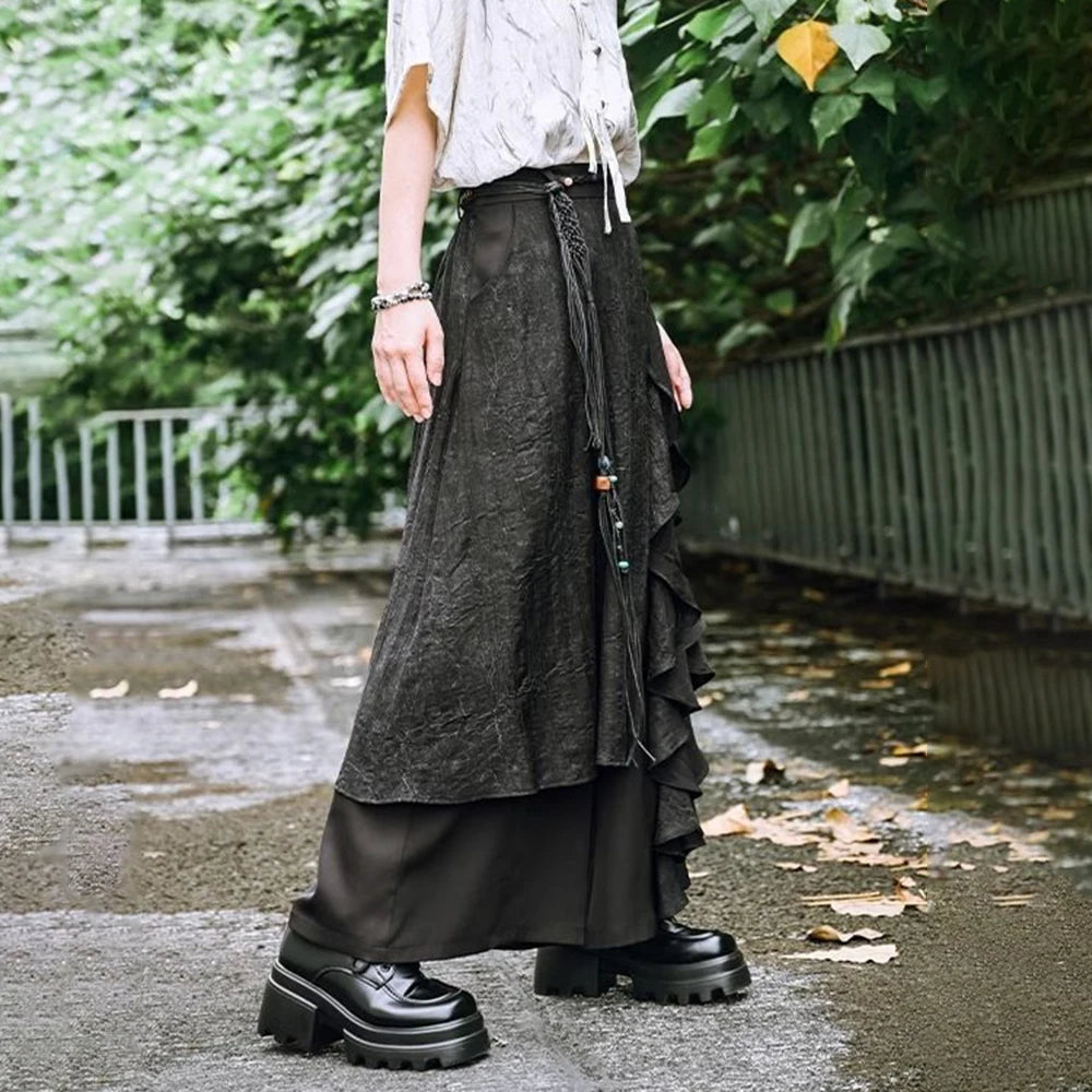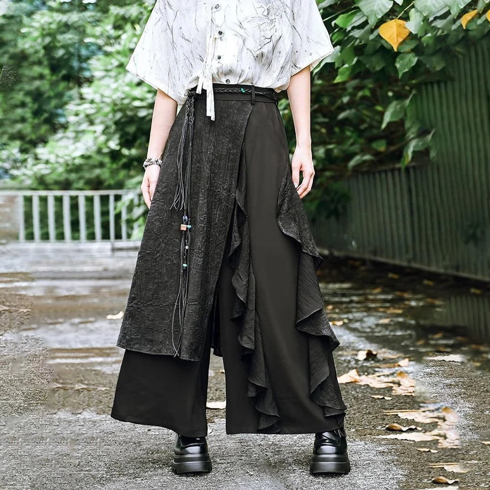 Bonsir Y2k Culottes Layered Dark Gothic Style Hakama Genderless Streetwear Fashion Japanese School Casual Wide Leg Samurai Pants Unisex