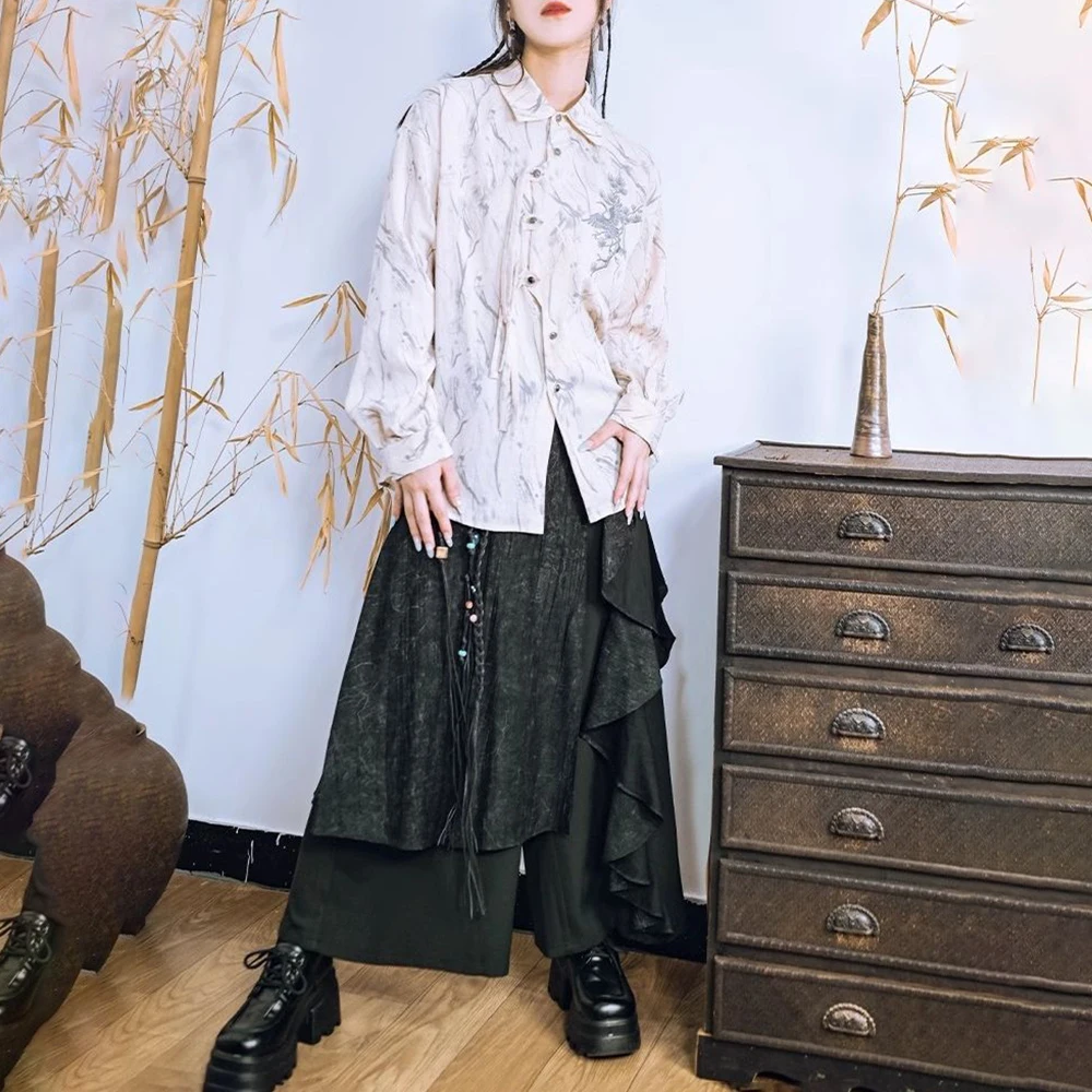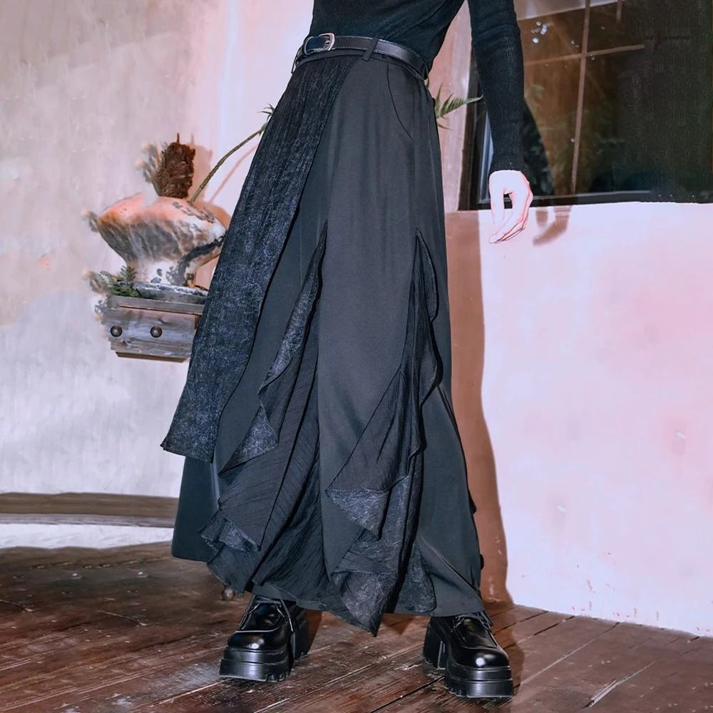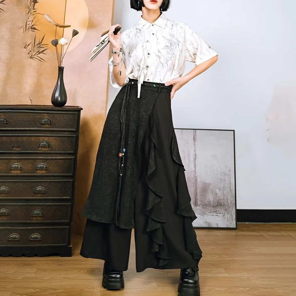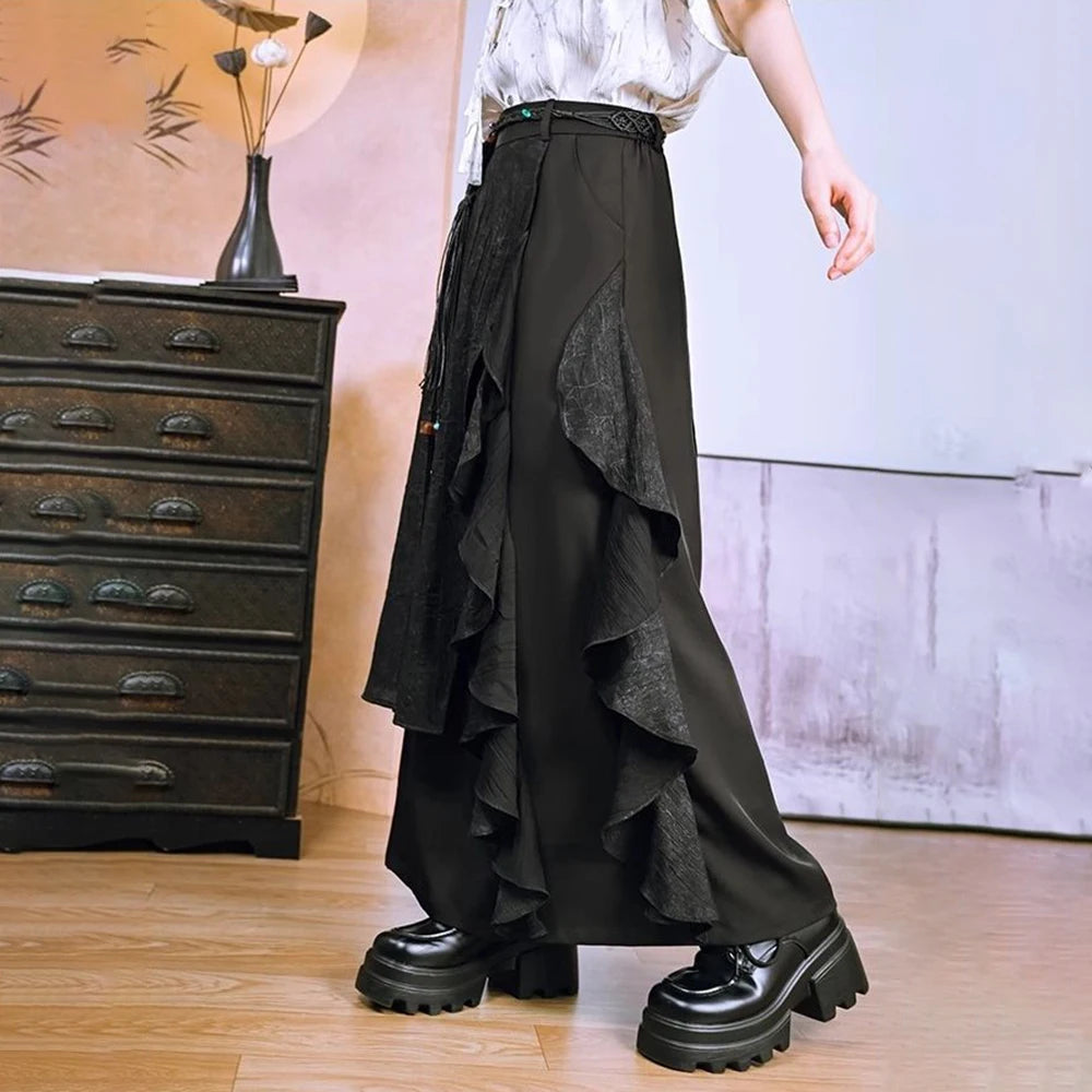 Bonsir Y2k Culottes Layered Dark Gothic Style Hakama Genderless Streetwear Fashion Japanese School Casual Wide Leg Samurai Pants Unisex