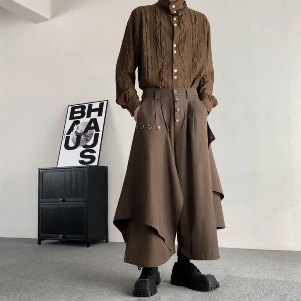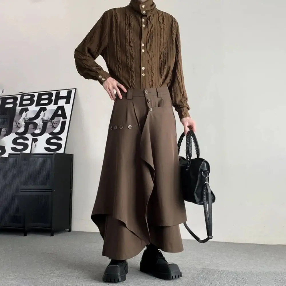 Bonsir Y2k Double-Layer Irregular Casual Skirt Pants Genderless Japanese Streetwear Side Hem Design Versatile Samurai Skirt Unisex