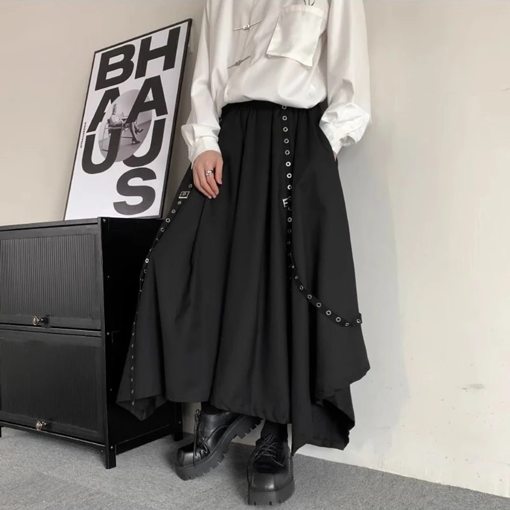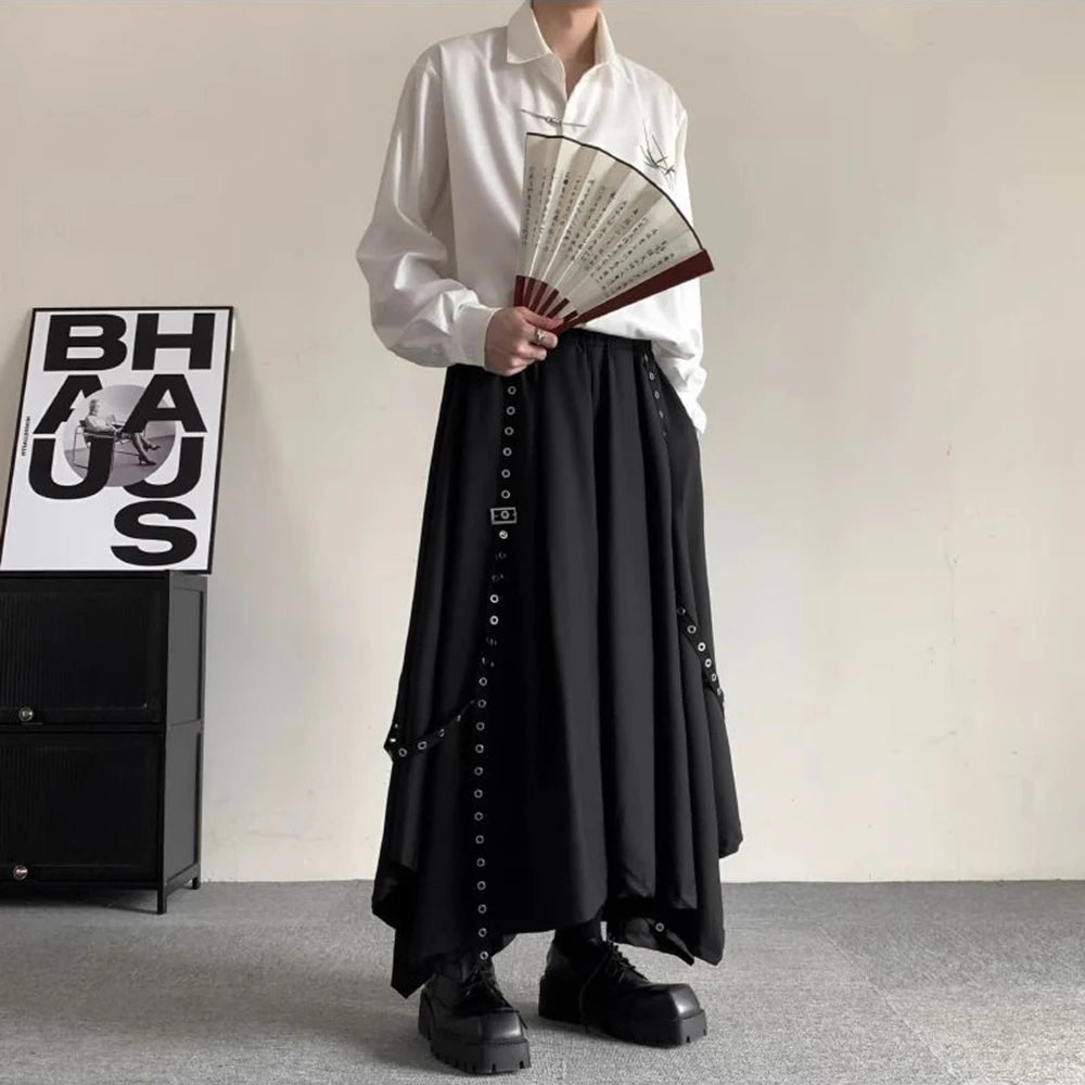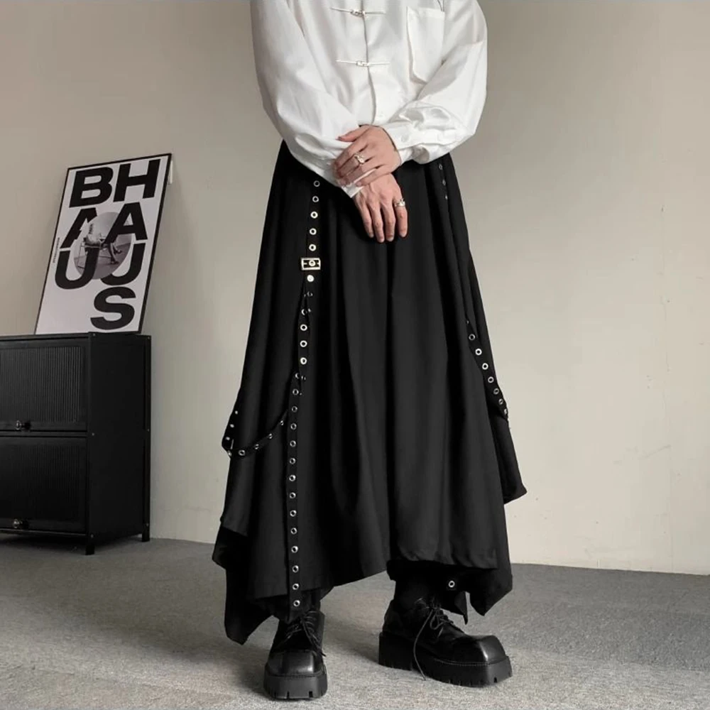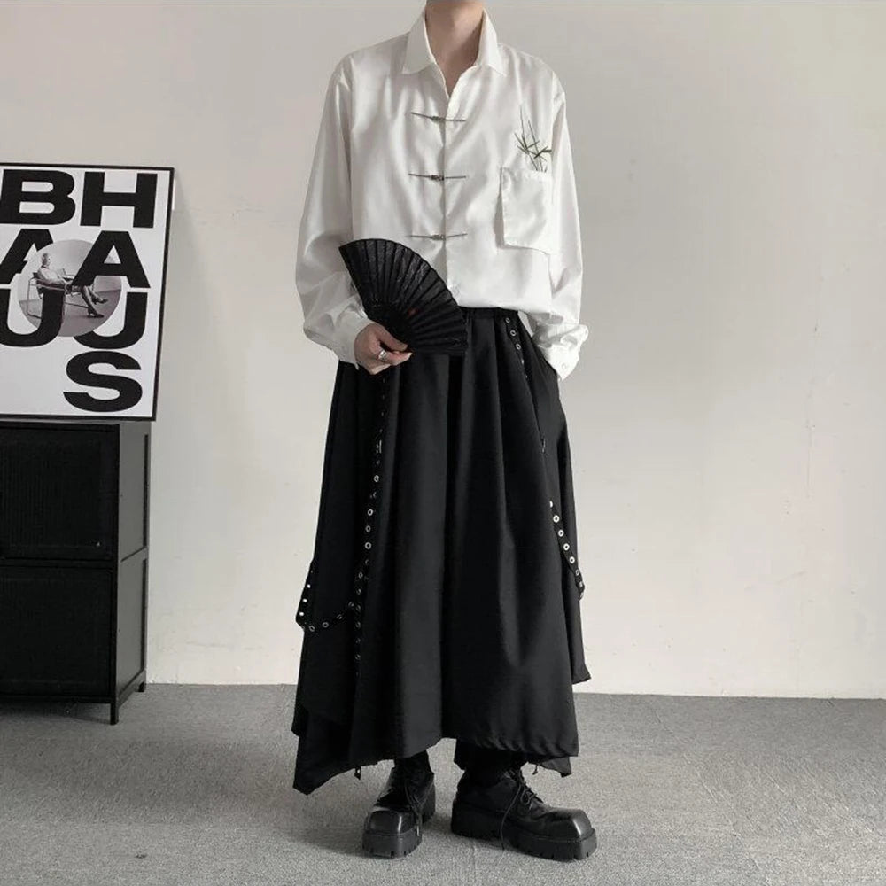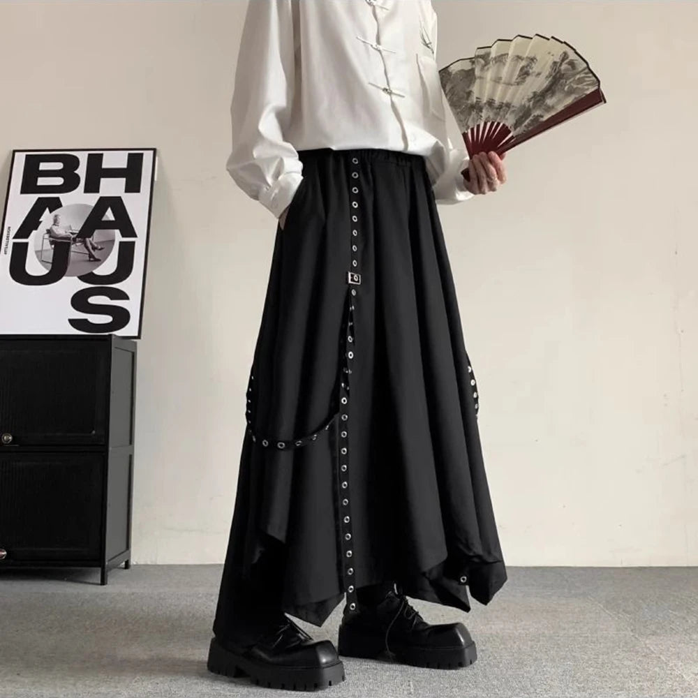 Bonsir Y2k Irregular Ribbon Skirt Pants Dark Gothic Style Hakama Genderless Japanese Streetwear Casual Wide-Leg Samurai Pants Unisex