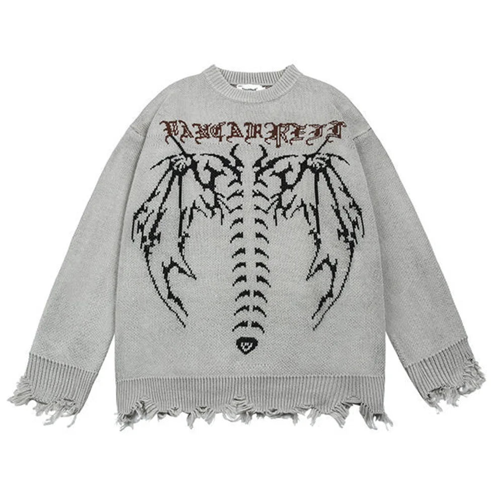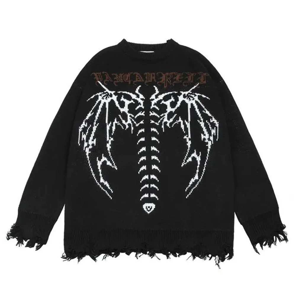 Bonsir Y2k Letter Wings Knitted Pattern Sweater Streetwear All-Match Personality Couple Long-Sleeve Knitted Top Unisex 2024 Spring New