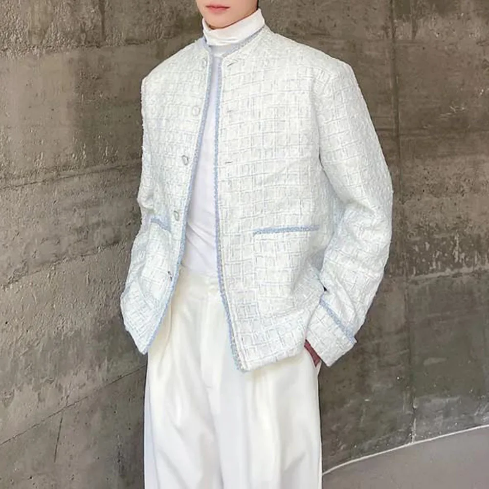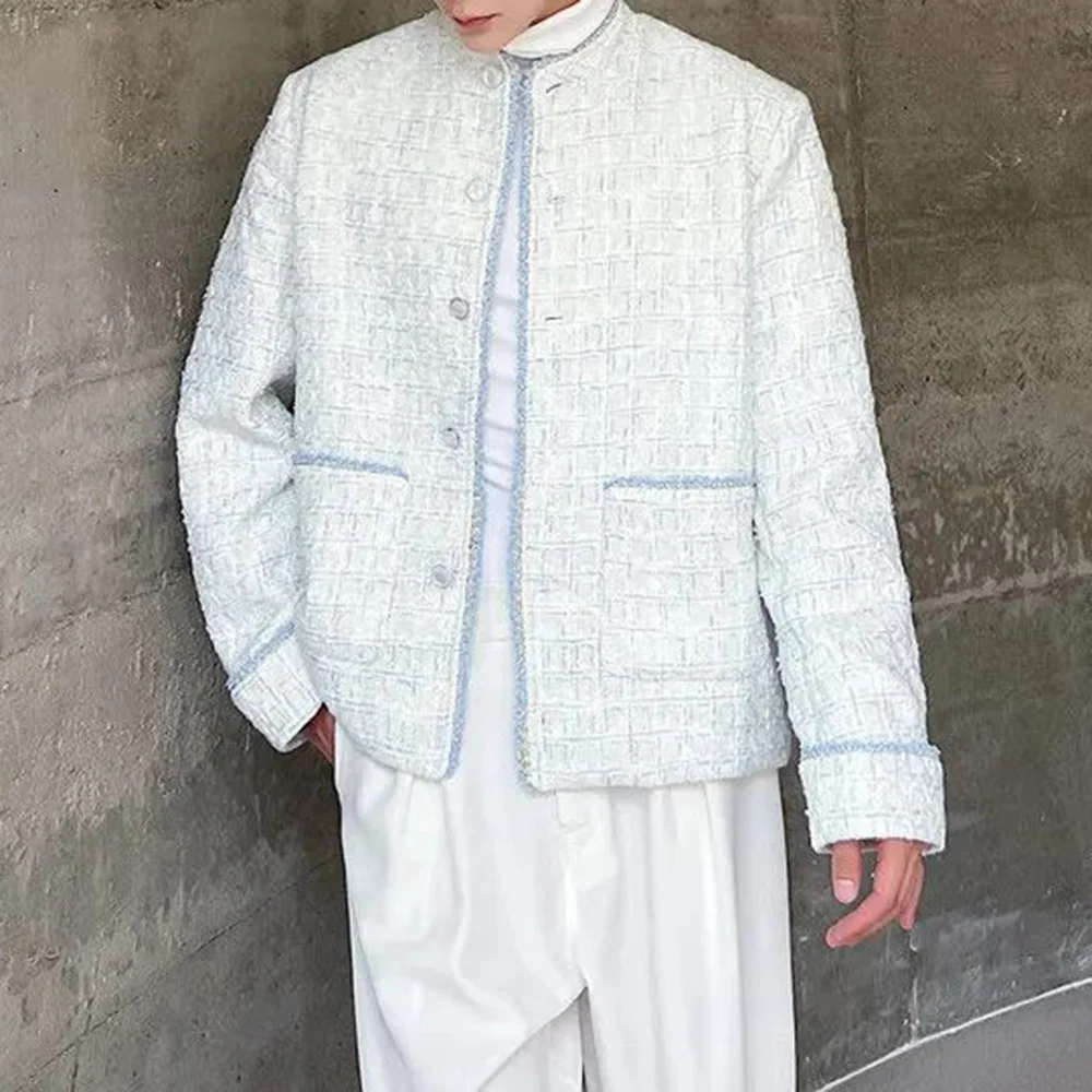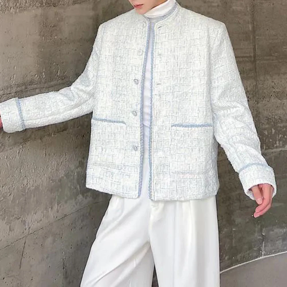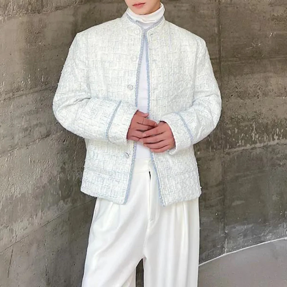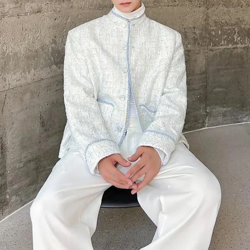 BONSIR - Y2K Mens Jacket Checkered Silhouette Autumn Casual Versatile Fashionable Korean Style High Street Top Men's Clothing Unisex