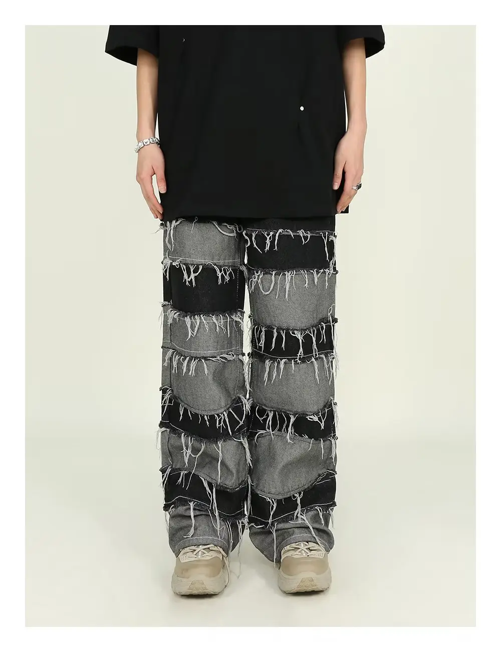 Bonsir Y2K Streetwear Baggy Stacked Jeans Pants Men Clothing Patchwork Straight Loose Long Trousers Pantalones Hombre